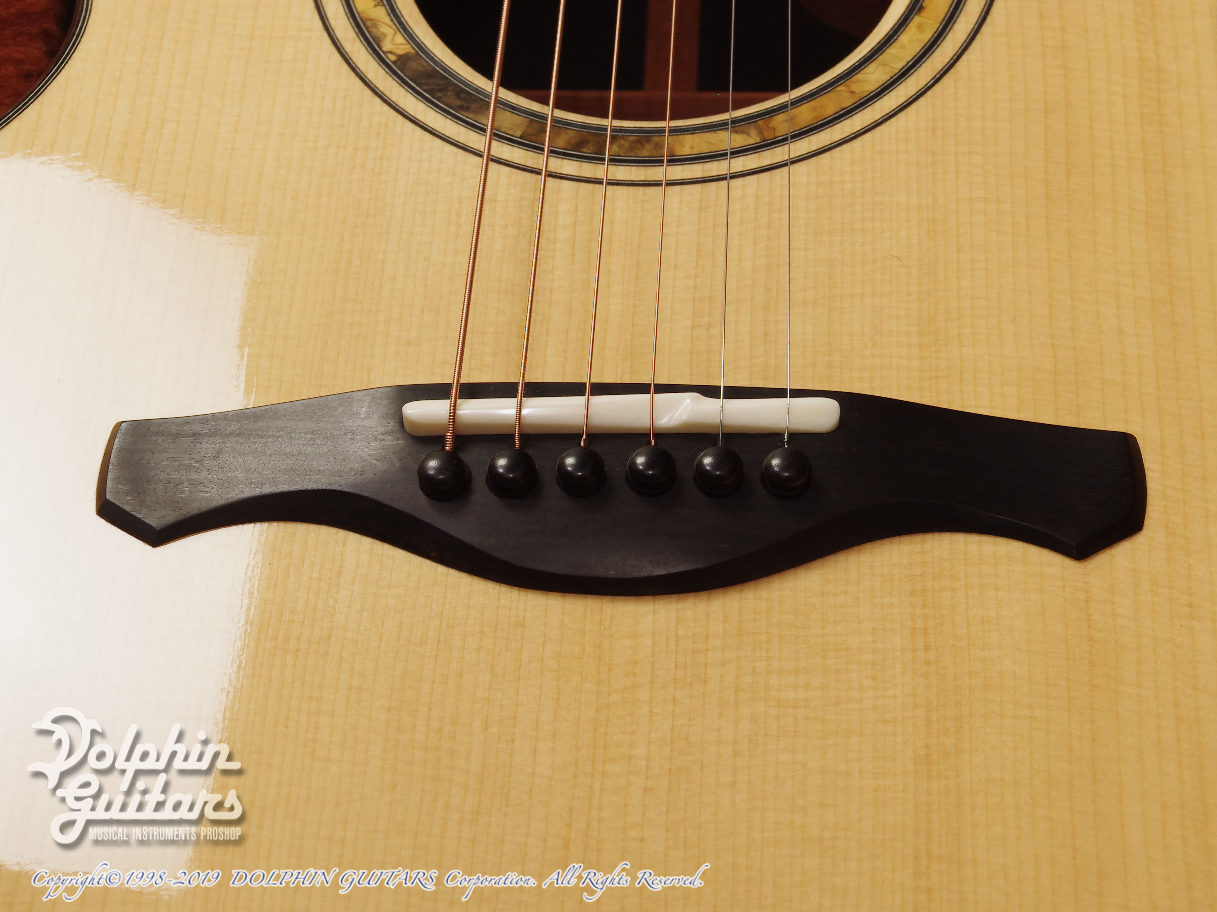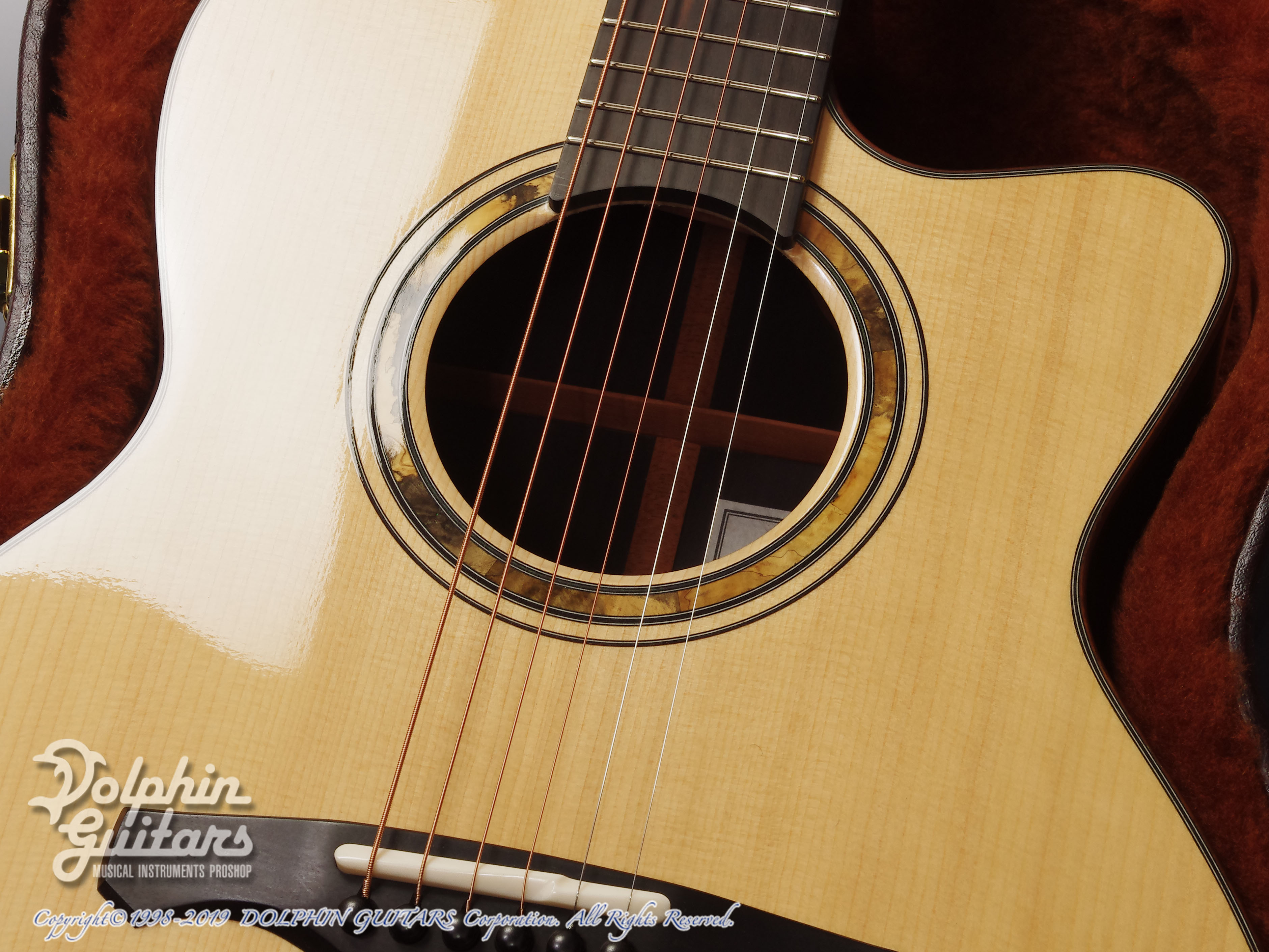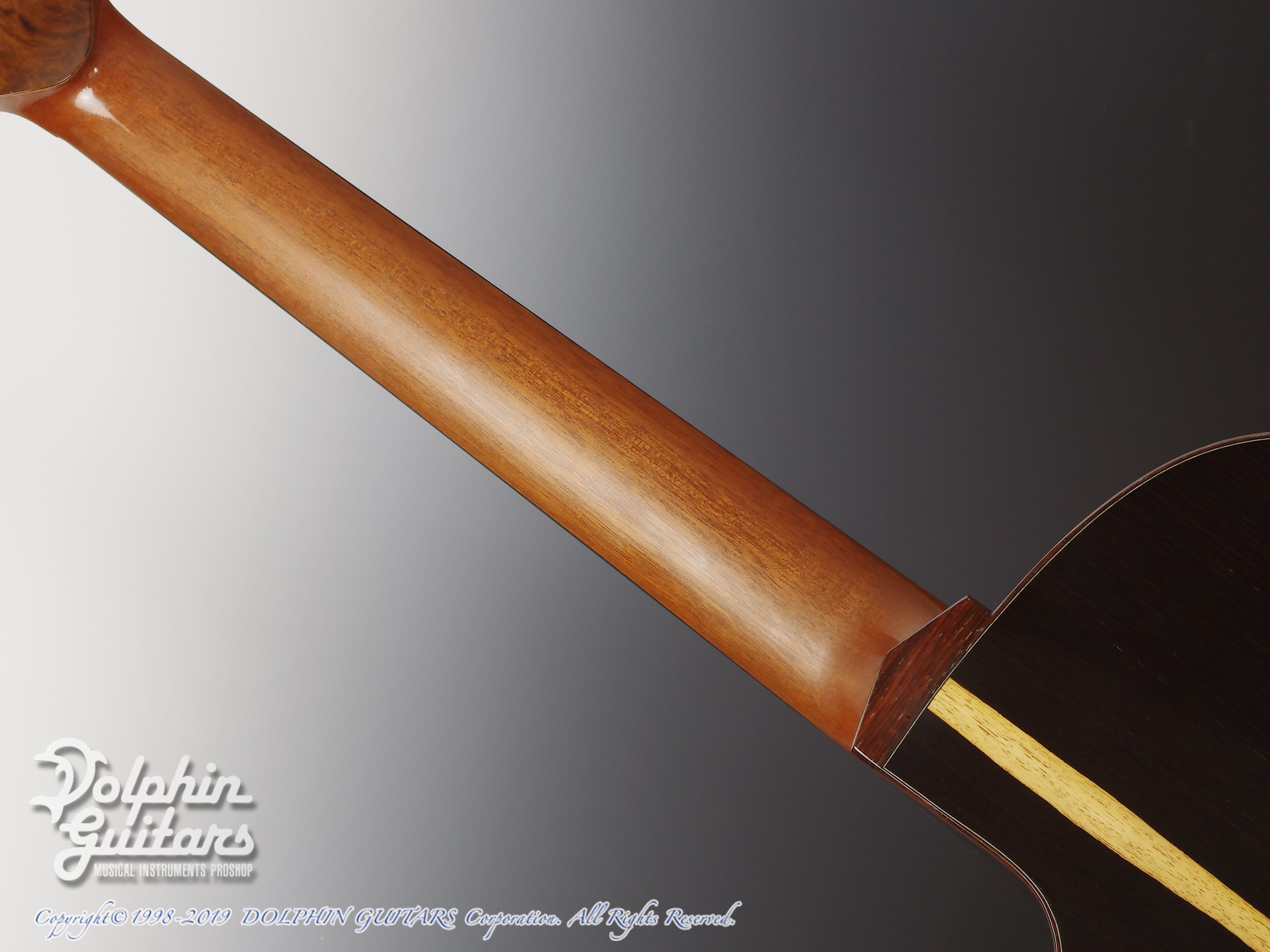 アディロンダック・スプルーストップ、アフリカン・ブラックウッドS&B、マホガニーネック(アジャスタブルロッド)、エボニー指板&ブリッジ、ウッドロゼッタ、ヴェネチアンカッタウェイ、44mmナット、630mmスケール、Gotoh510Zペグ。