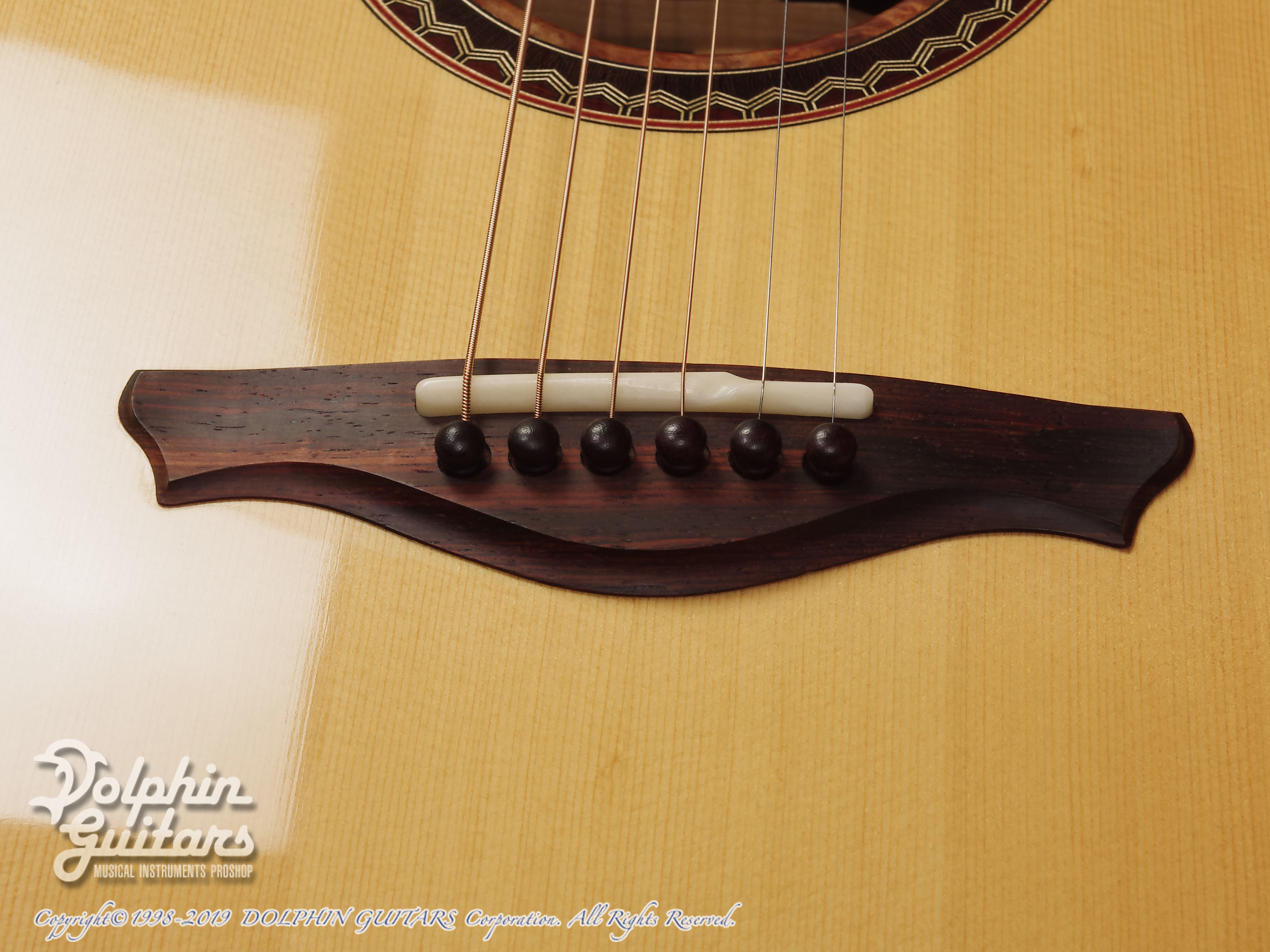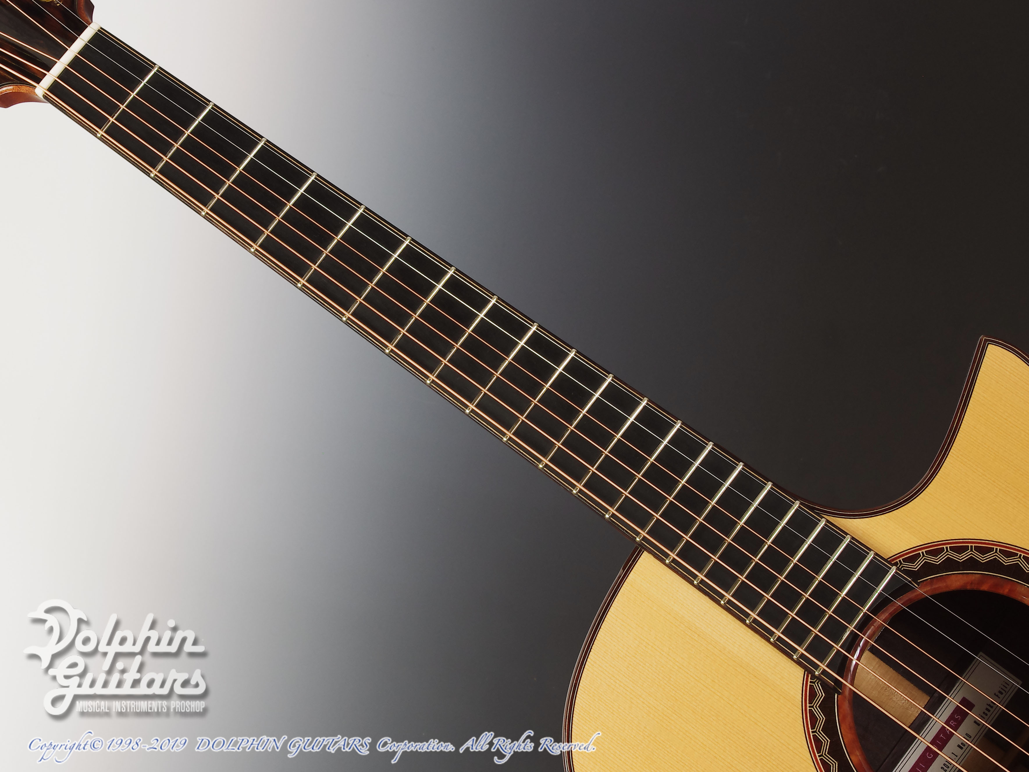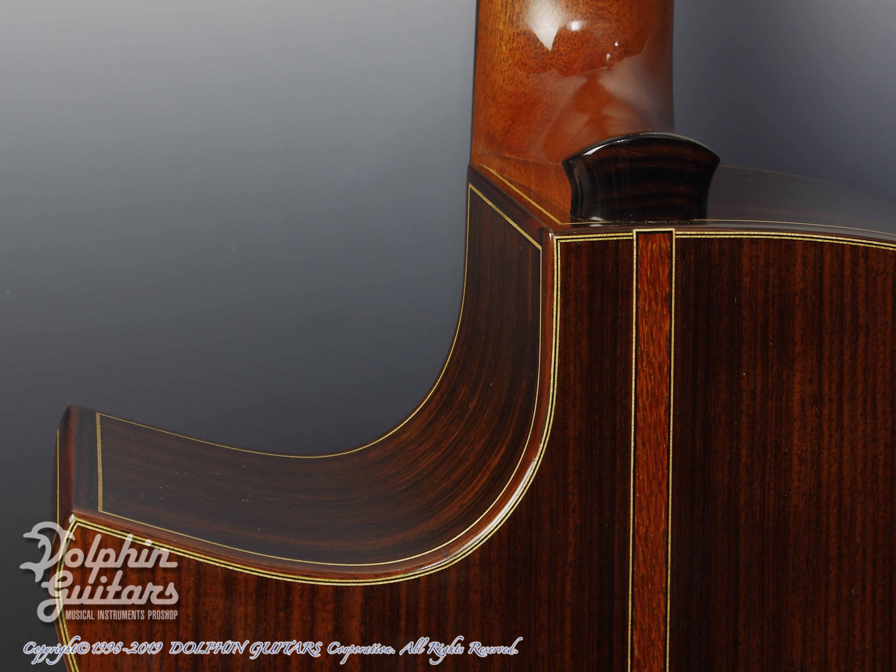 イングルマン・スプルーストップ、インディアン・ローズウッドS&B、マホガニーネック、アジャスタブルロッド、44,5mmナット幅、645mmスケール、エボニー指板、ブラジリアン・ローズブリッジ、ウッドロゼッタ(オリジナルロゼッタ)、リブレスト、Gotoh510ペグ。