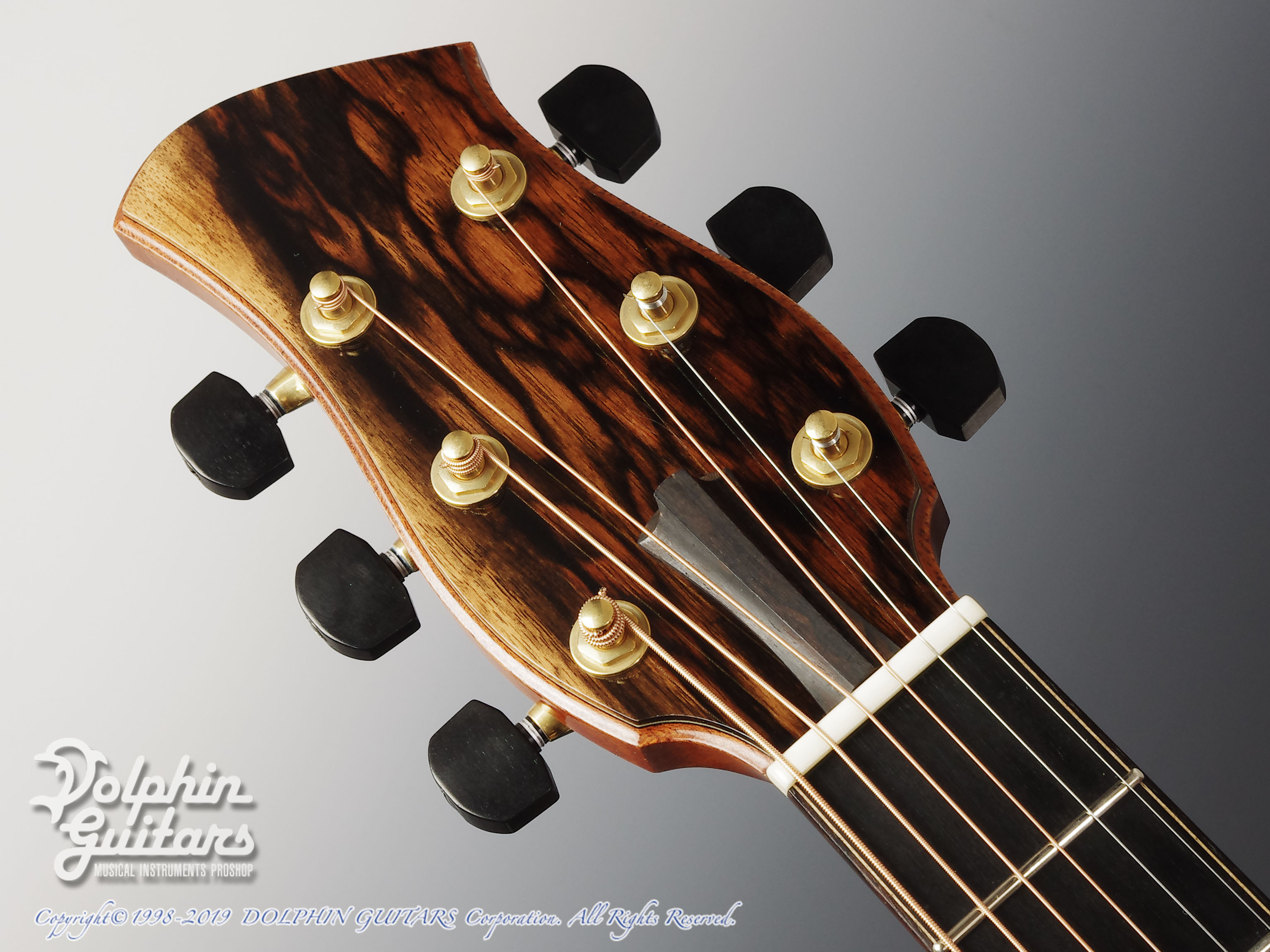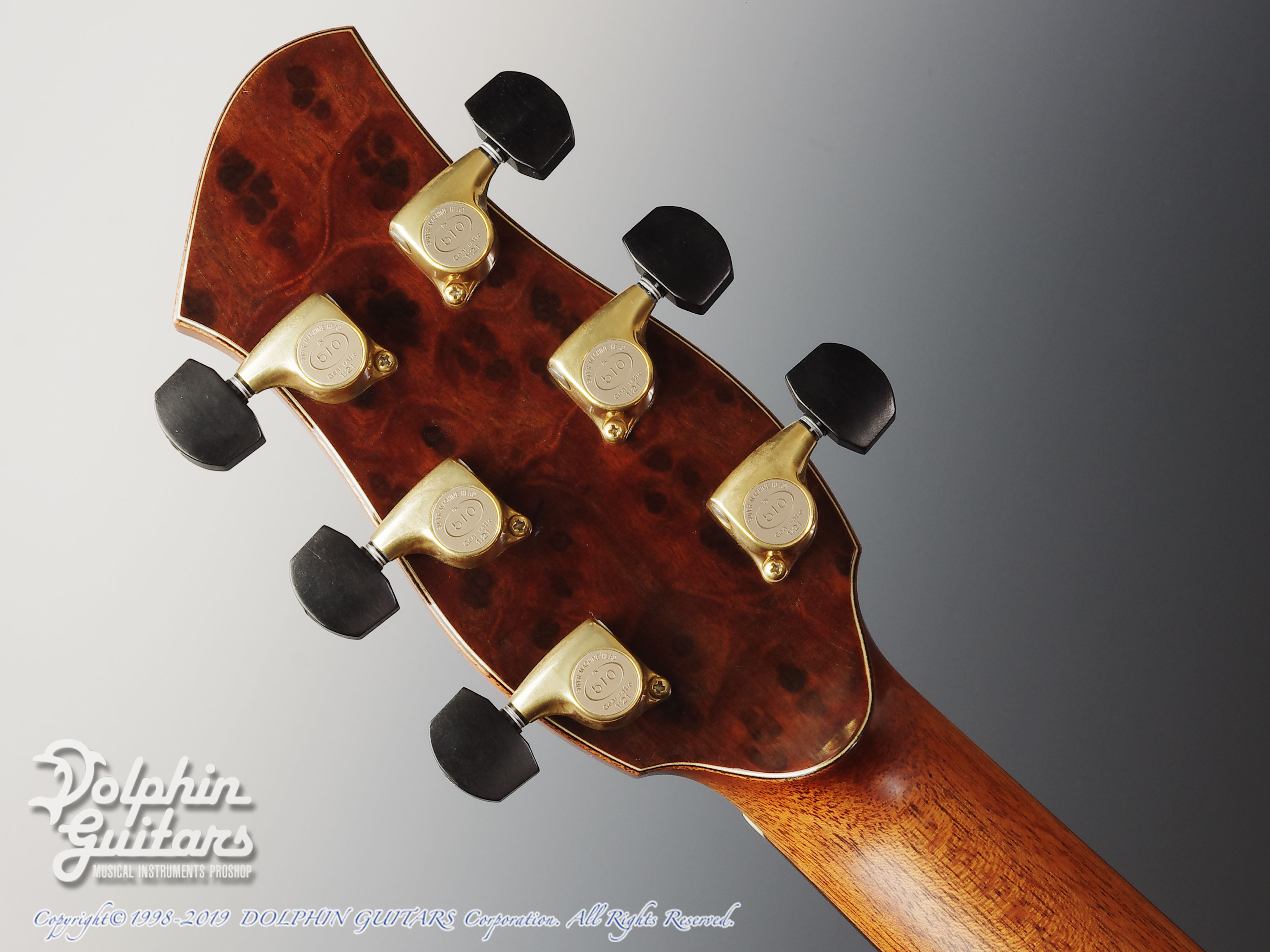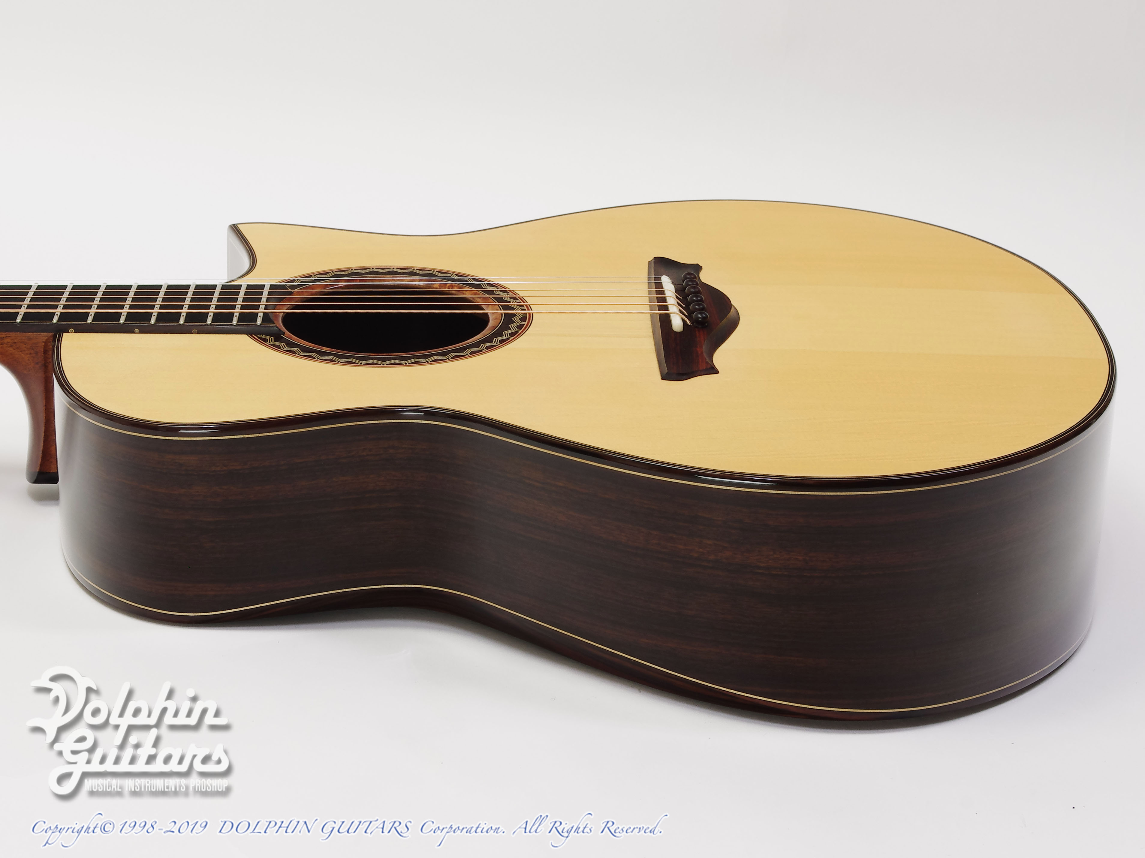 イングルマン・スプルーストップ、インディアン・ローズウッドS&B、マホガニーネック、アジャスタブルロッド、44,5mmナット幅、645mmスケール、エボニー指板、ブラジリアン・ローズブリッジ、ウッドロゼッタ(オリジナルロゼッタ)、リブレスト、Gotoh510ペグ。