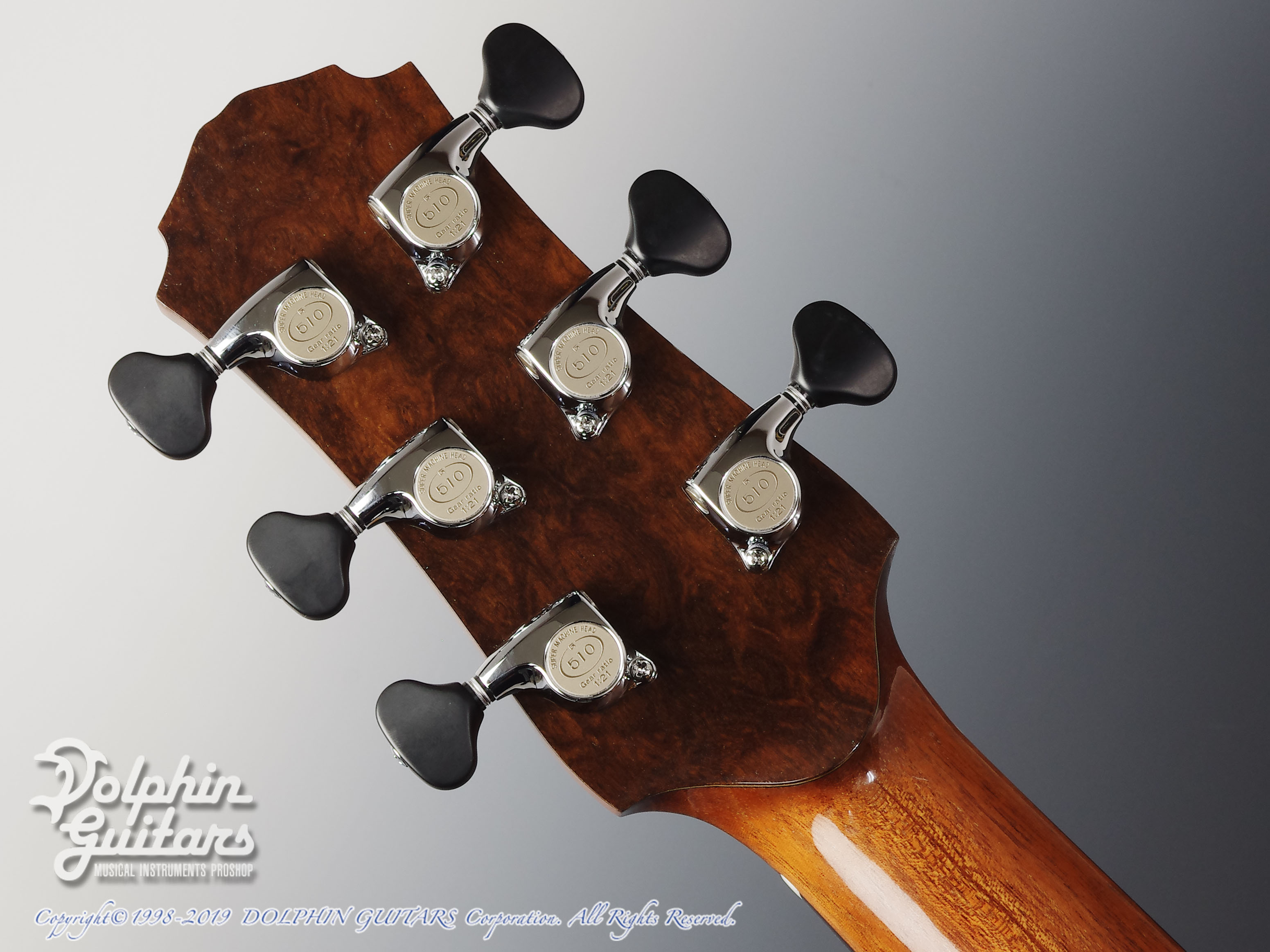 キューバンマホガニーTOP、キューバンマホガニーS&B、ホンデュラス・マホガニーネック(アジャスタブルロッド)、エボニー指板&ブリッジ、43,5mmナット、630mmスケール、アバロンロゼッタ、Gotoh510ペグ仕様。