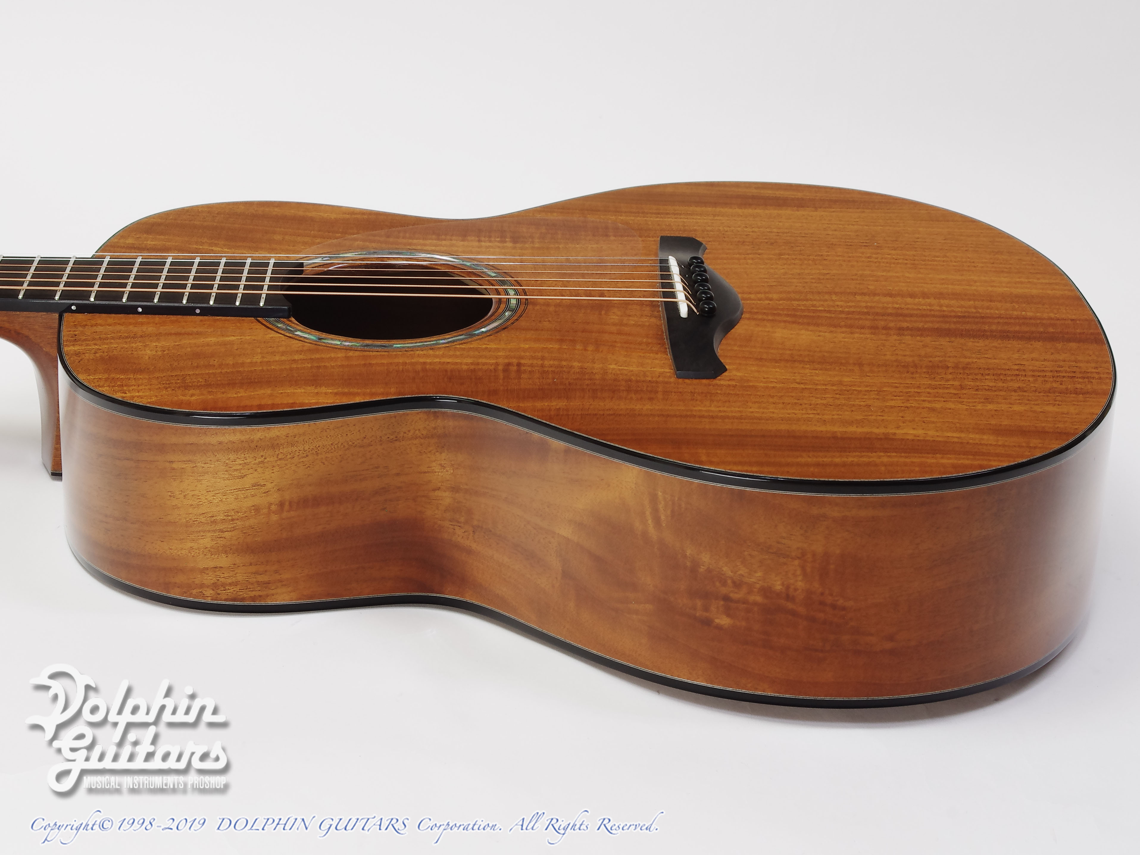 ホンジュラスマホガニーやアフリカンマホガニーとは明らかに異なる特徴を持つキューバンマホガニー。ローミッドの厚み、すっきりとした高音域が魅力的な個体です。ダブルオーサイズのコンパクトボディですが、ボリュームや一音一音の力強さを感じさせ、サイズ以上のサウンドを聴かせてくれます。これほど上質なサウンドのオールマホもなかなかお目にかかれないでしょう。
