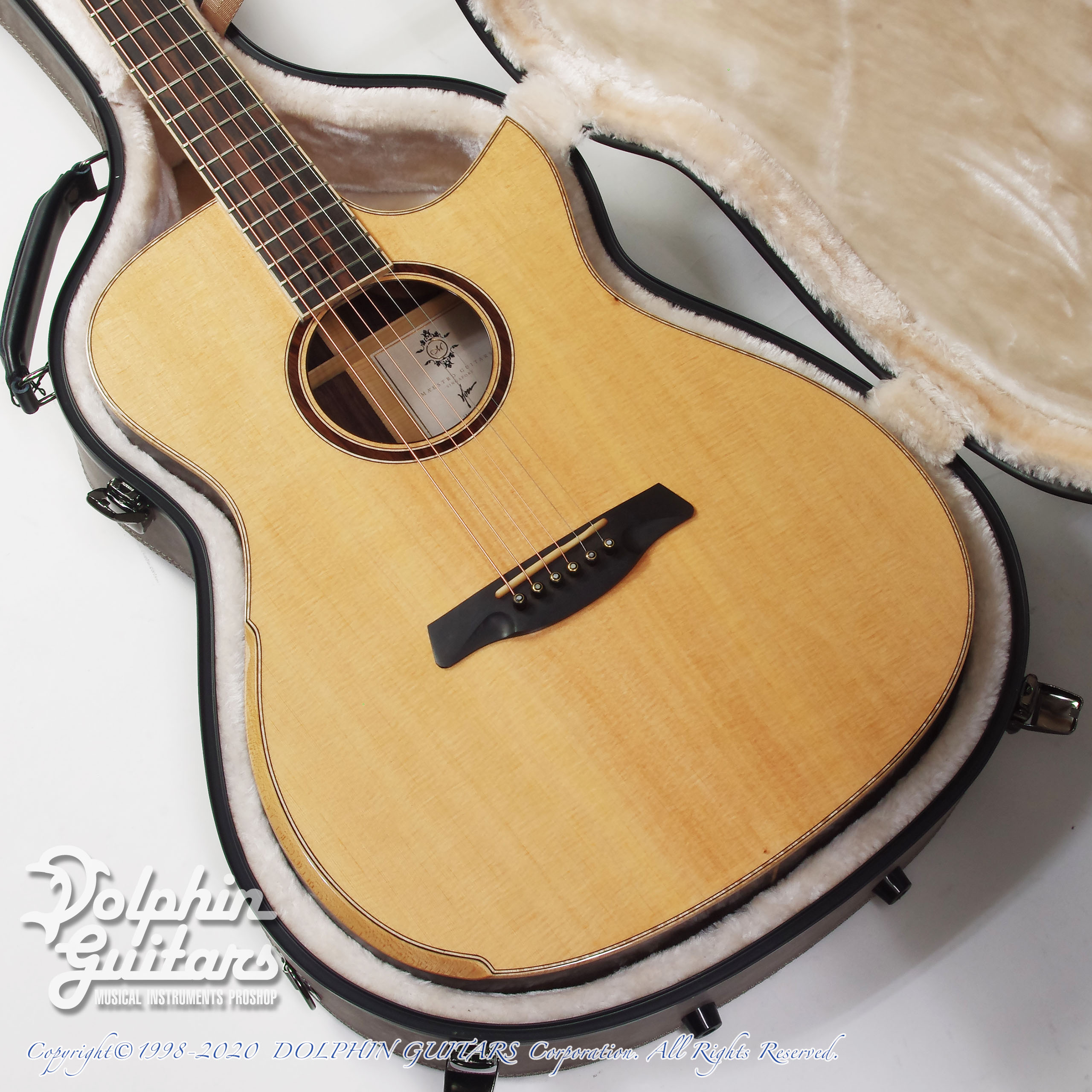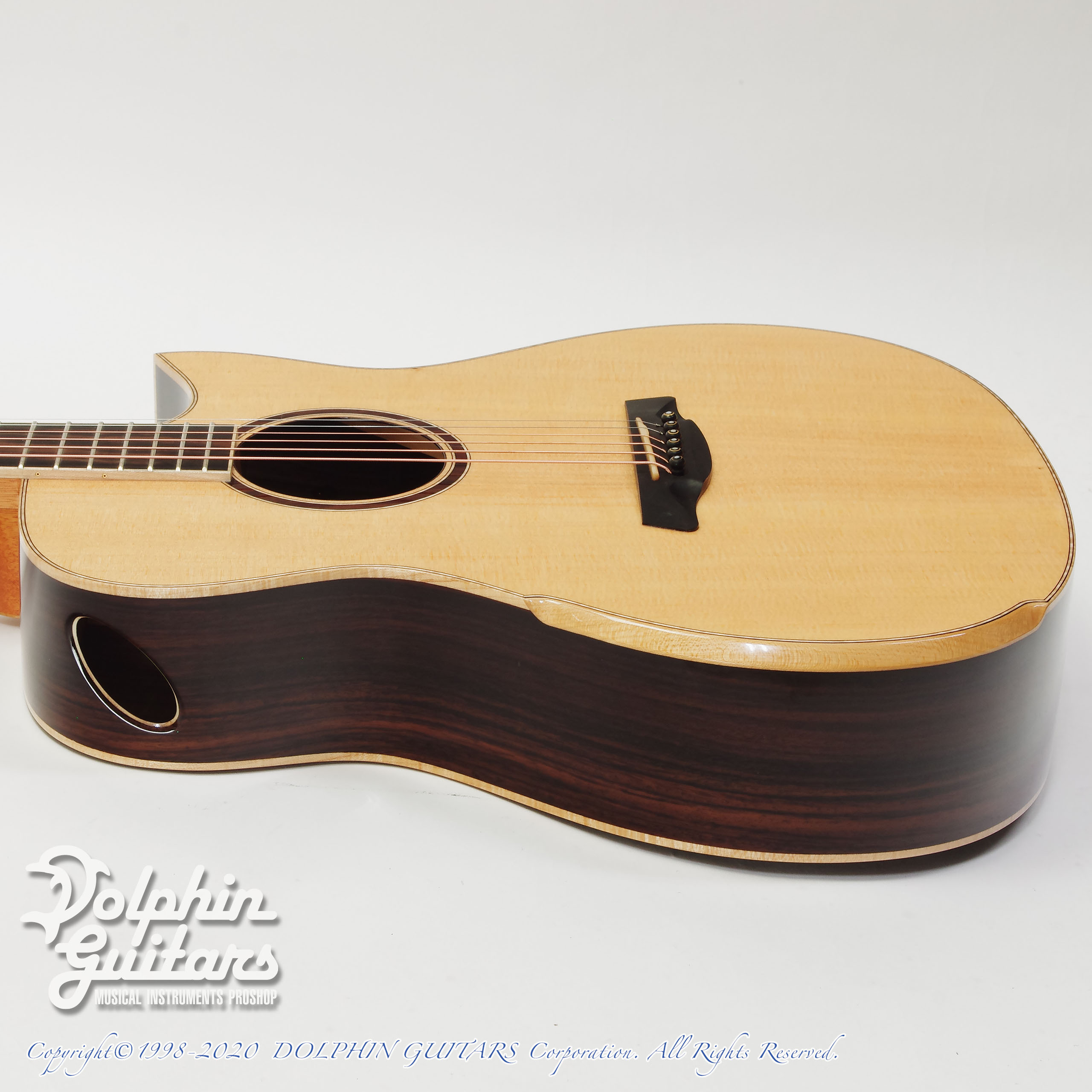 シトカ・スプルースTOP、インディアン・ローズウッドS&B、カーヤ・マホガニーネック(カーボン補強)、ベベルド・アームレスト、サイド・サウンドポート、フローレンタイン・カッタウェイ、エボニー指板&ブリッジ、グローバーペグ。