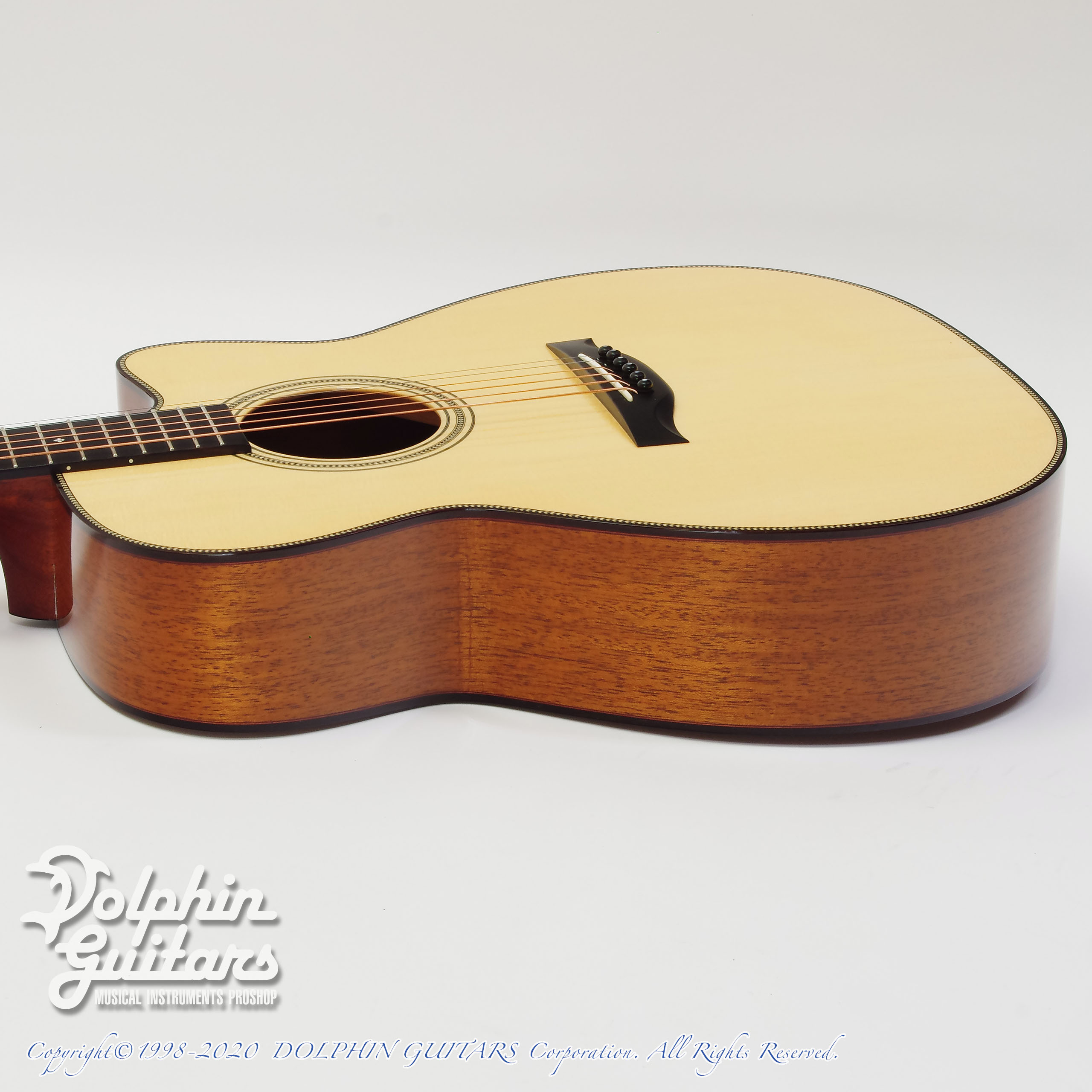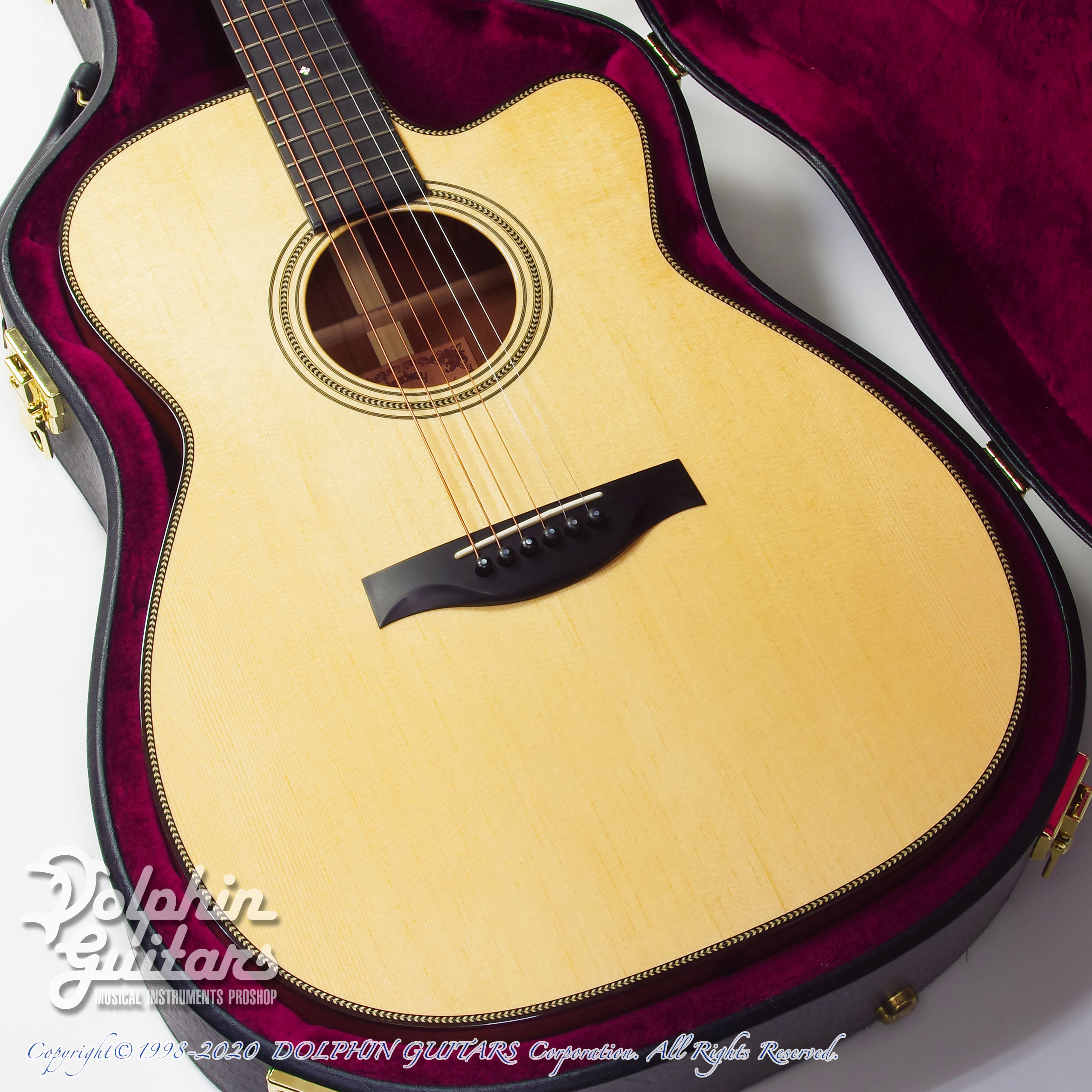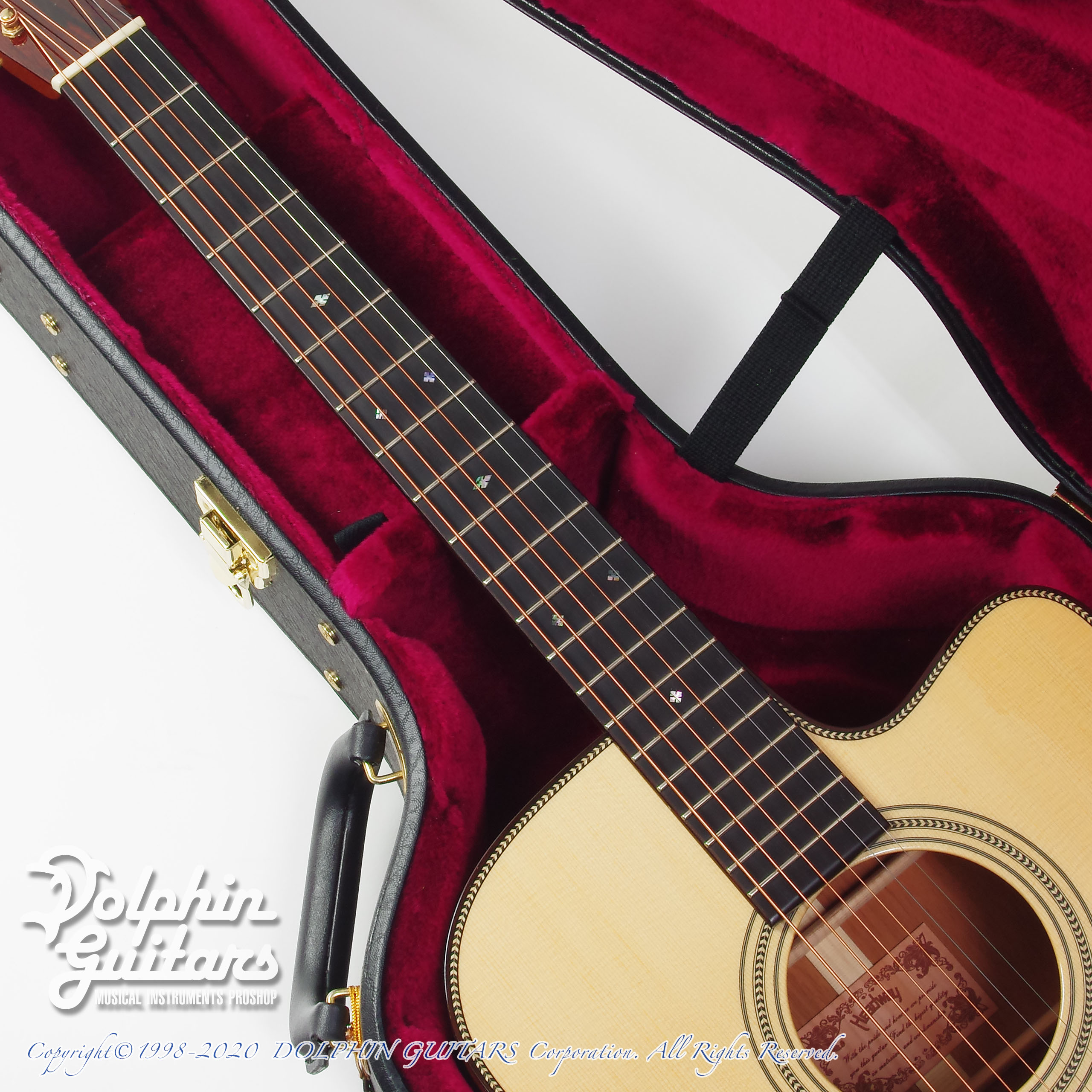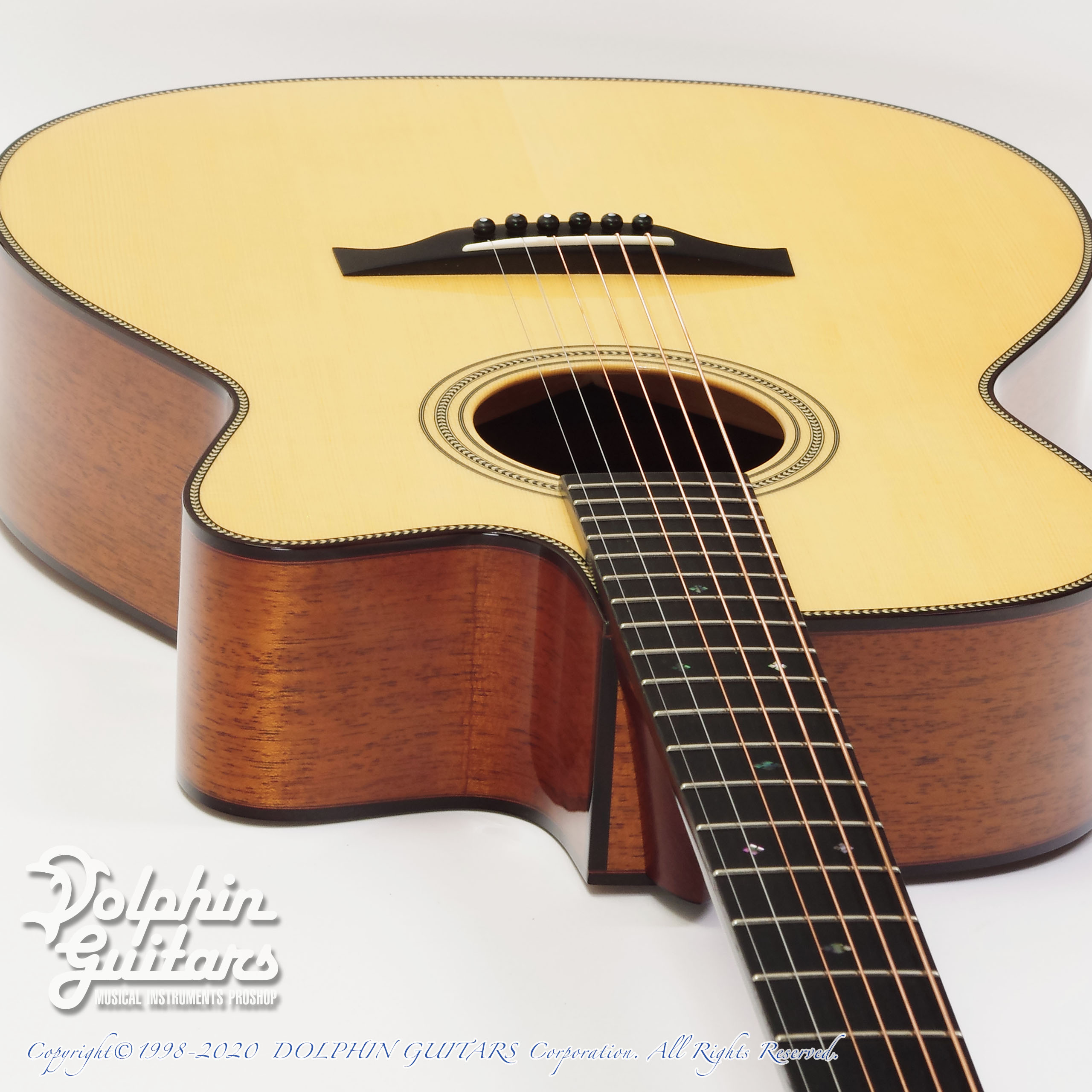 ヨーロピアン・スプルースTOP、ホンジュラス・マホガニーS&B、ホンジュラス・マホガニー1pネック、エボニー指板&ブリッジ、ヘリンボーン・ロゼッタ、フォワード・シフテッド・スキャロップドXブレーシング、ベネチアンカッタウェイ、イーグルヘッドインレイ、Gotohオープンバックペグ、グロスフィニッシュボディ、サテンフィニッシュネック。