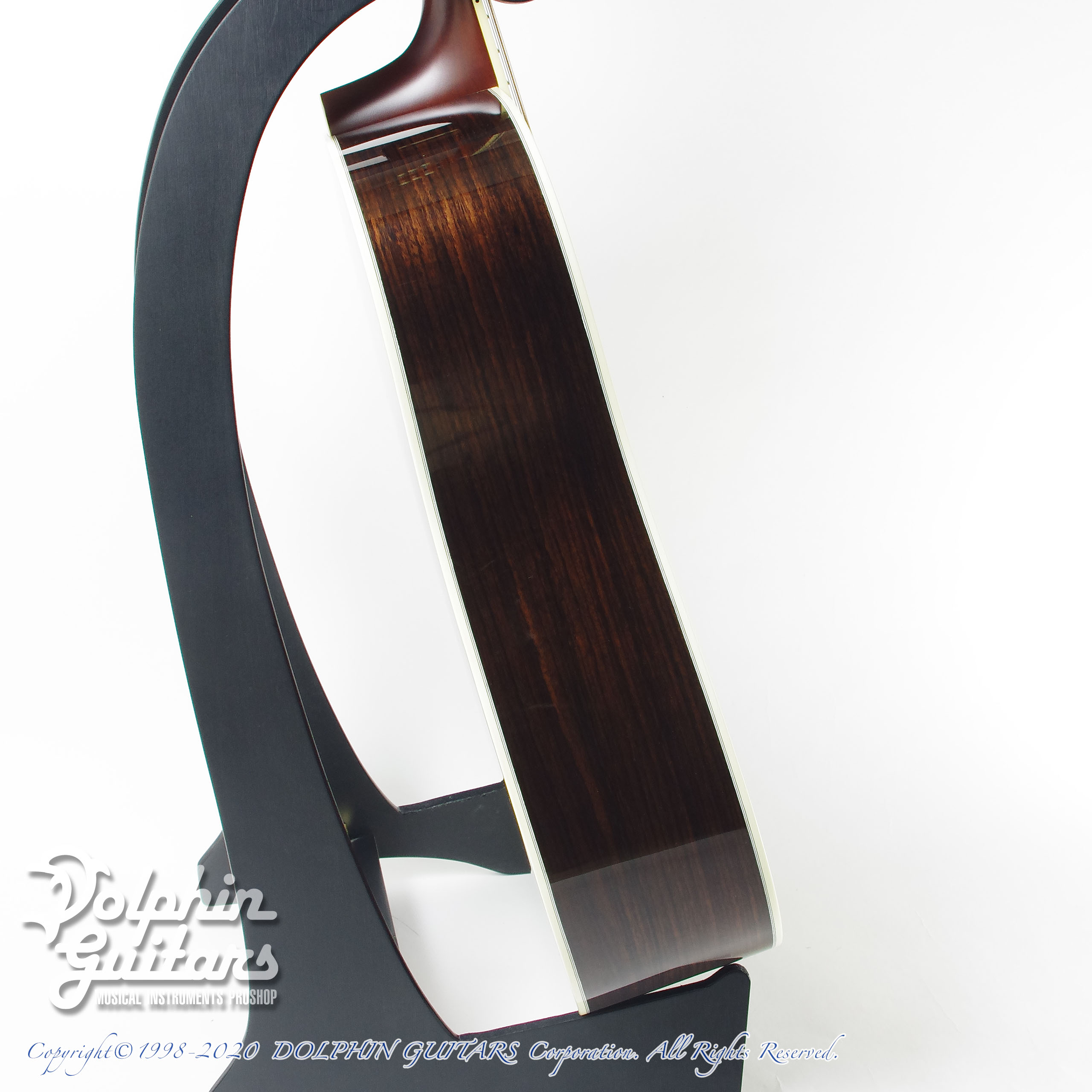 シトカ スプルースTOP、インディアンローズウッドS&B (*バックセンター材:マダガスカルローズウッド)、ホンジュラスマホガニー1pネック、エボニー指板&ブリッジ、ヘリンボーントリム、スキャロップドXブレーシング、GOTOHオープンバックペグ、グロスフィニッシュボディ、サテンフィニッシュネック。