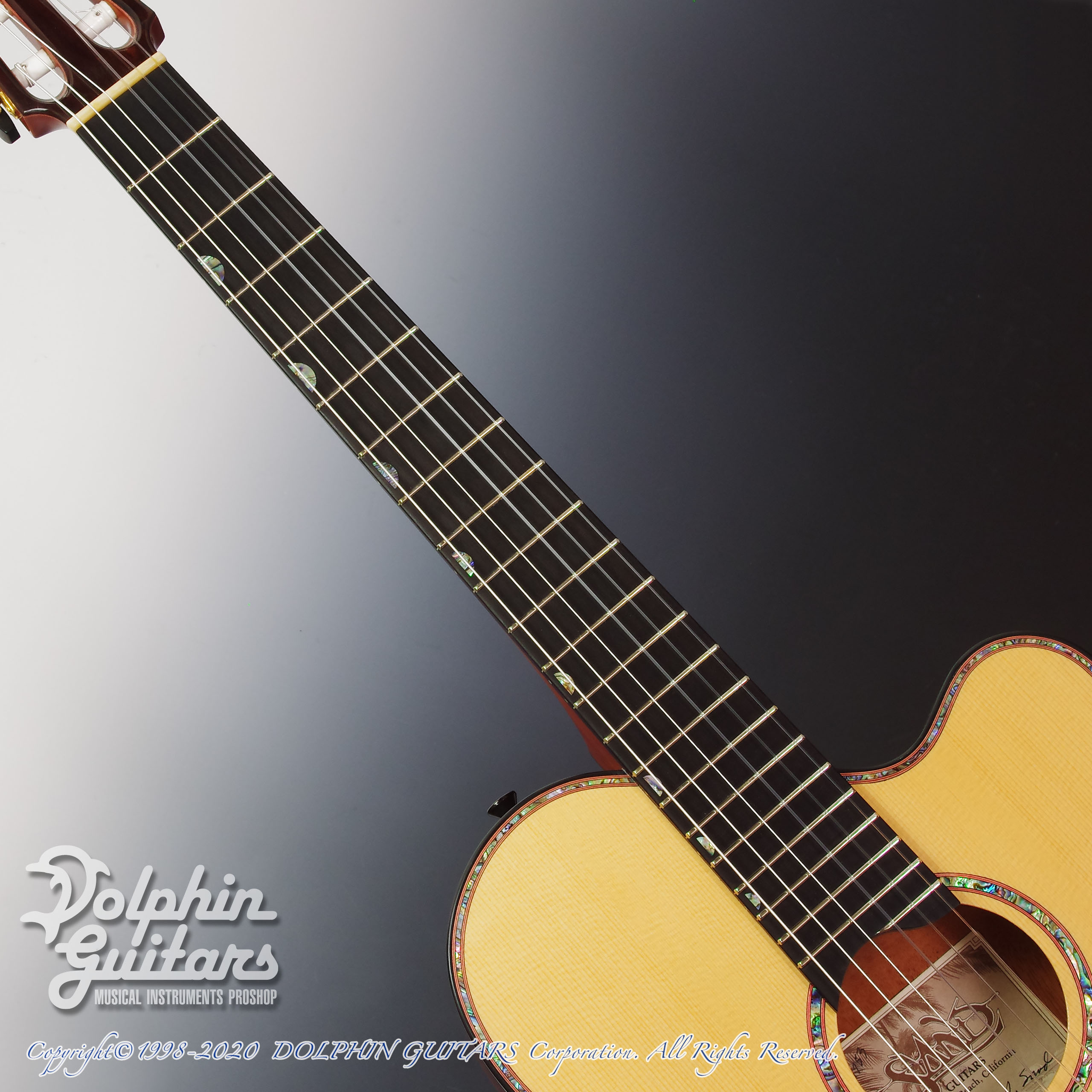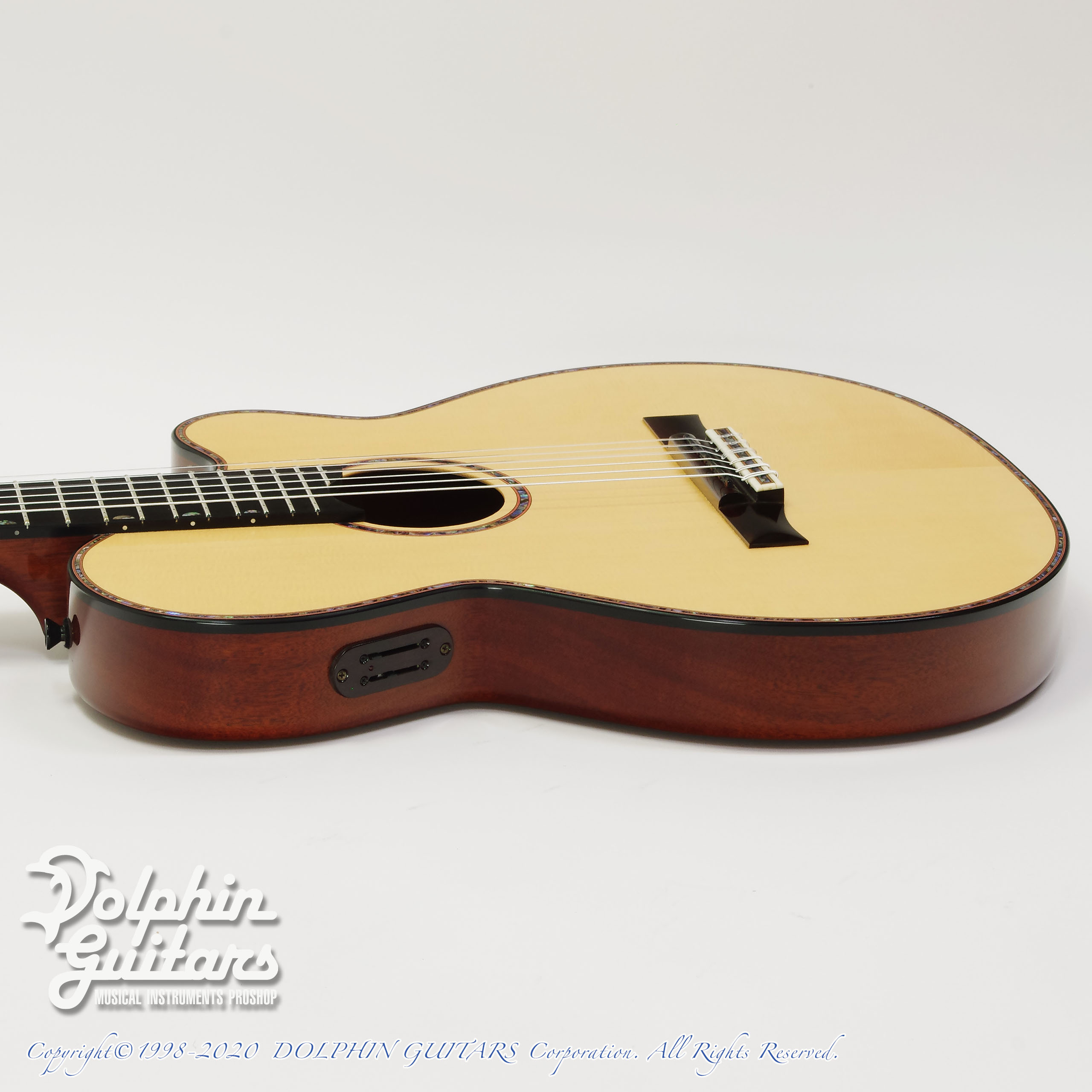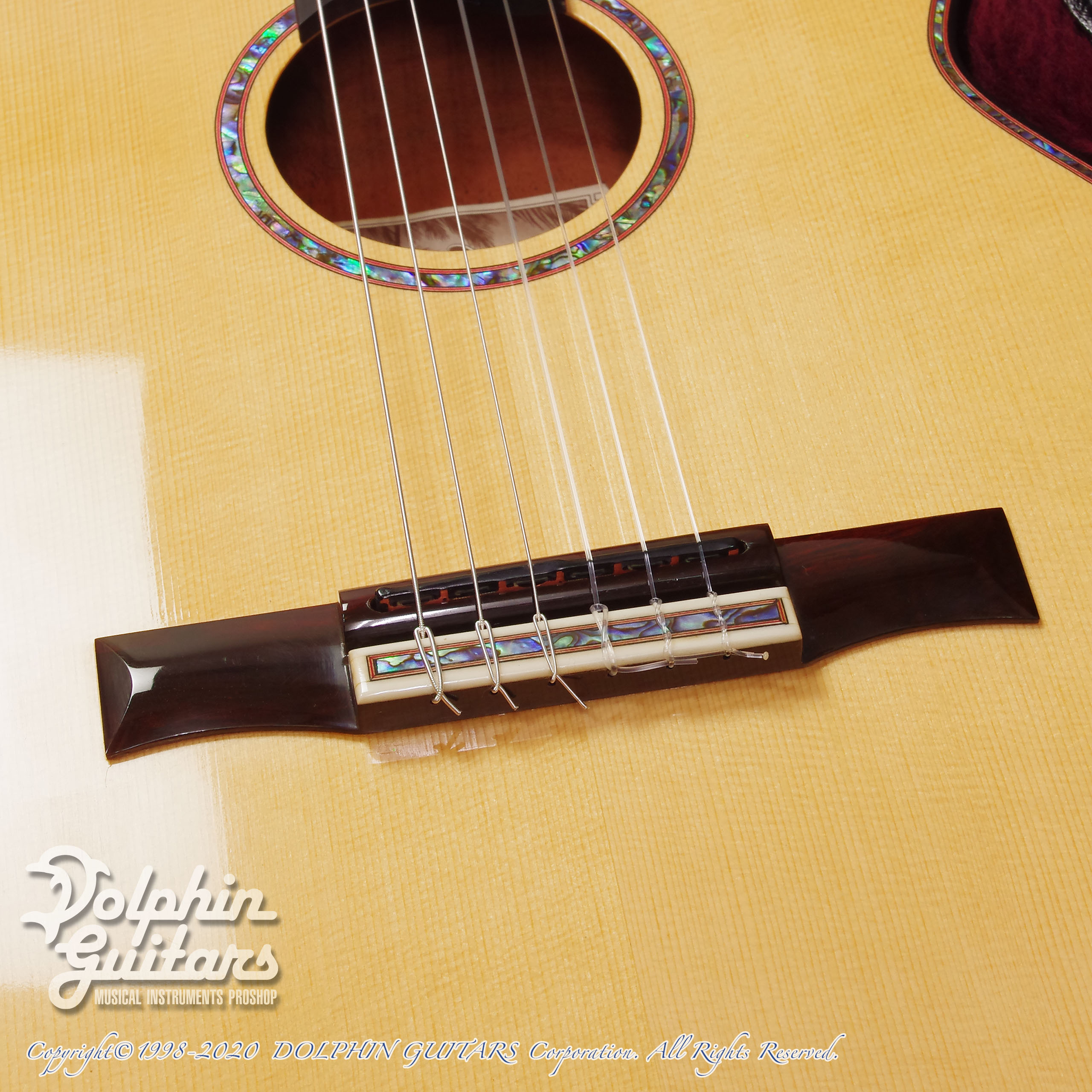 イングルマン・スプルースTOP、ホンジュラス・マホガニー1pボディ、ホンジュラス・マホガニーネック(エボニー補強)、エボニー指板&ローズウッド駒、シャーラーペグ、RMCピックアップ搭載。