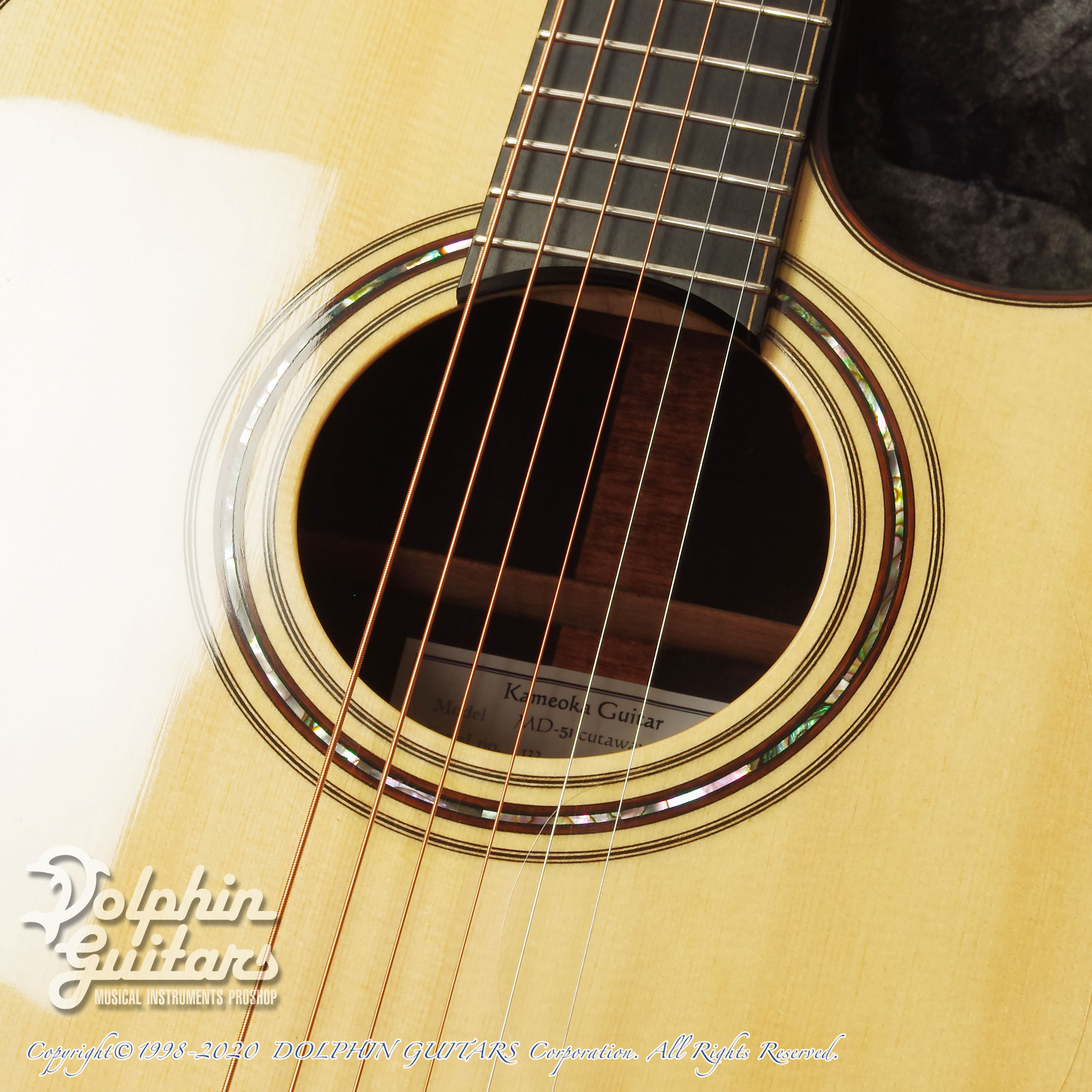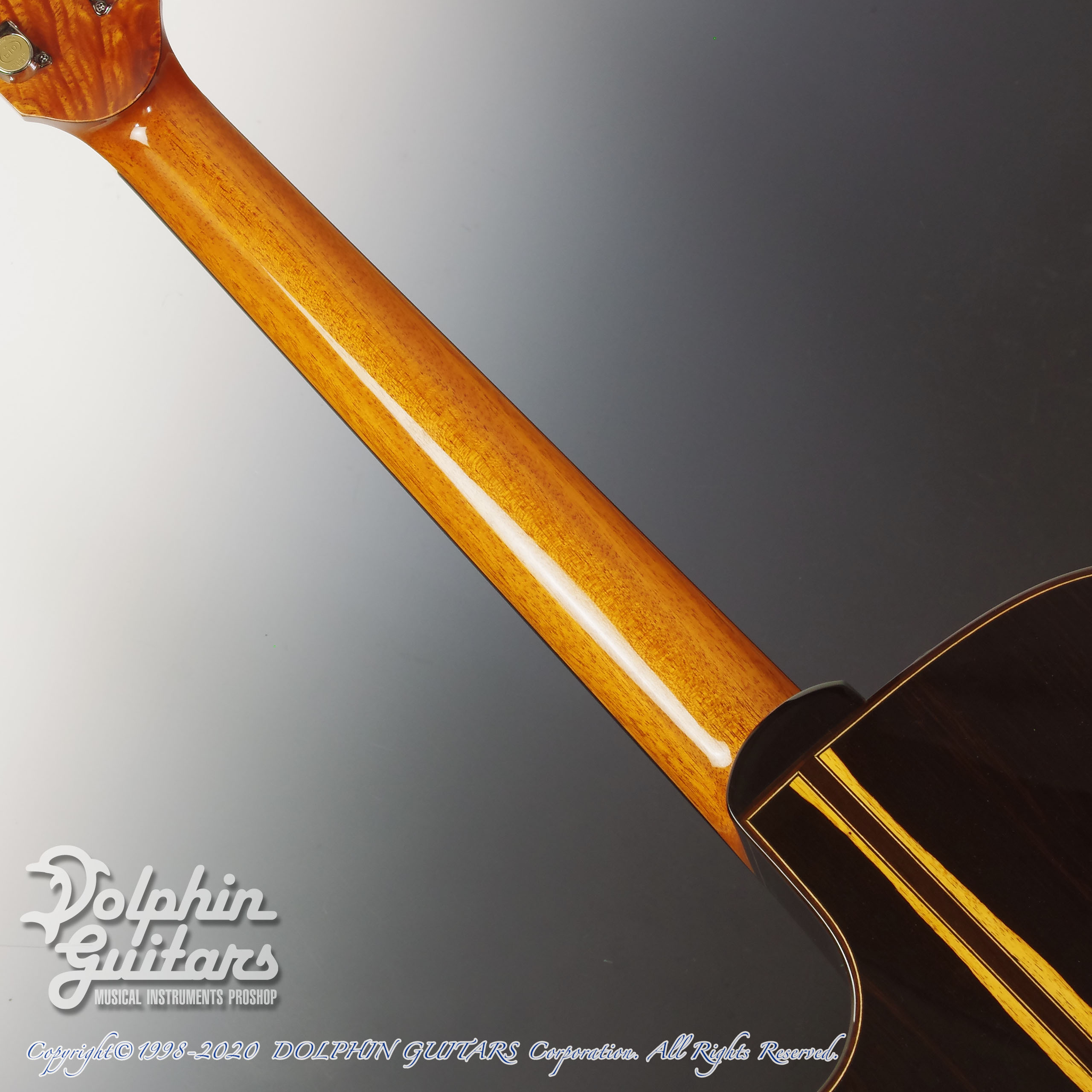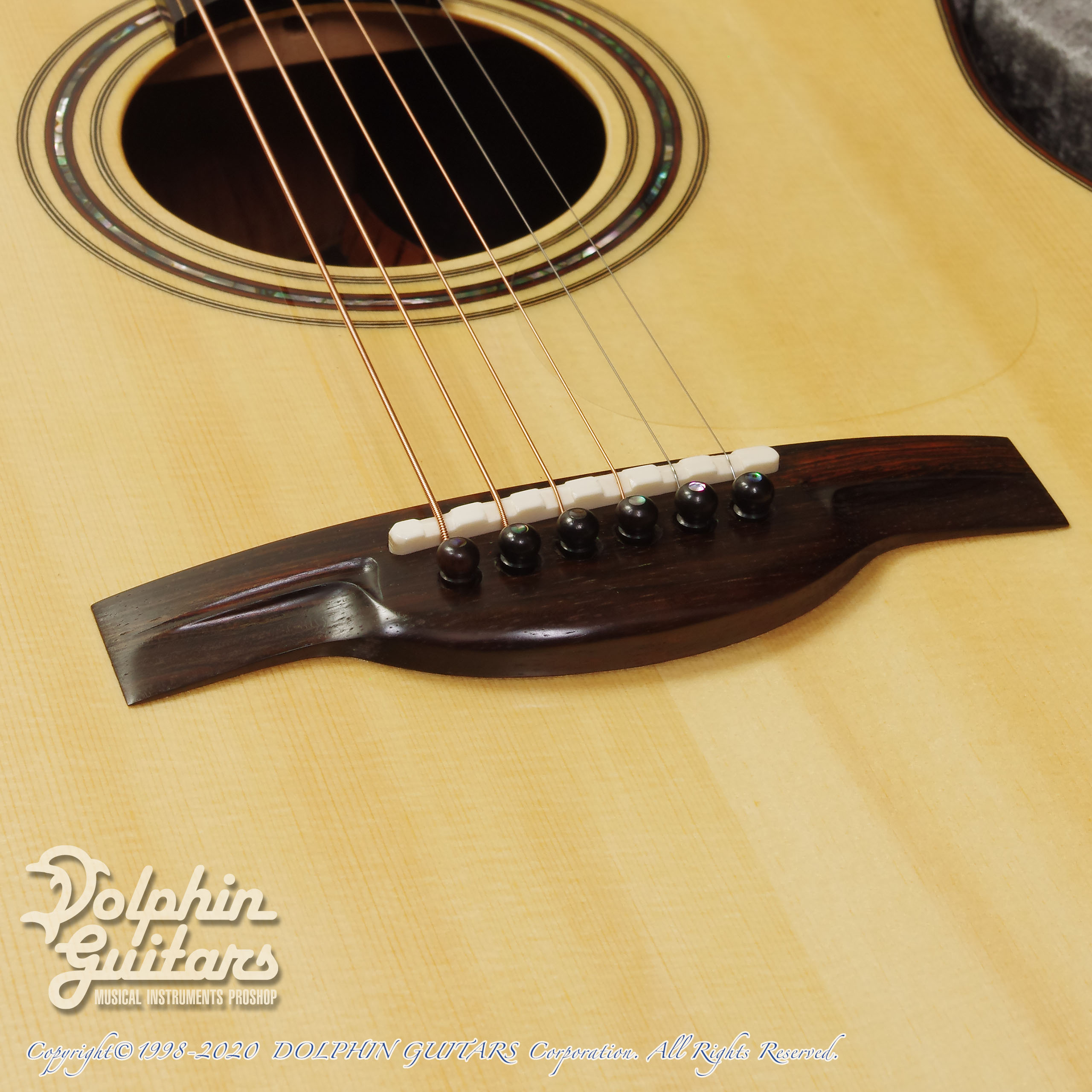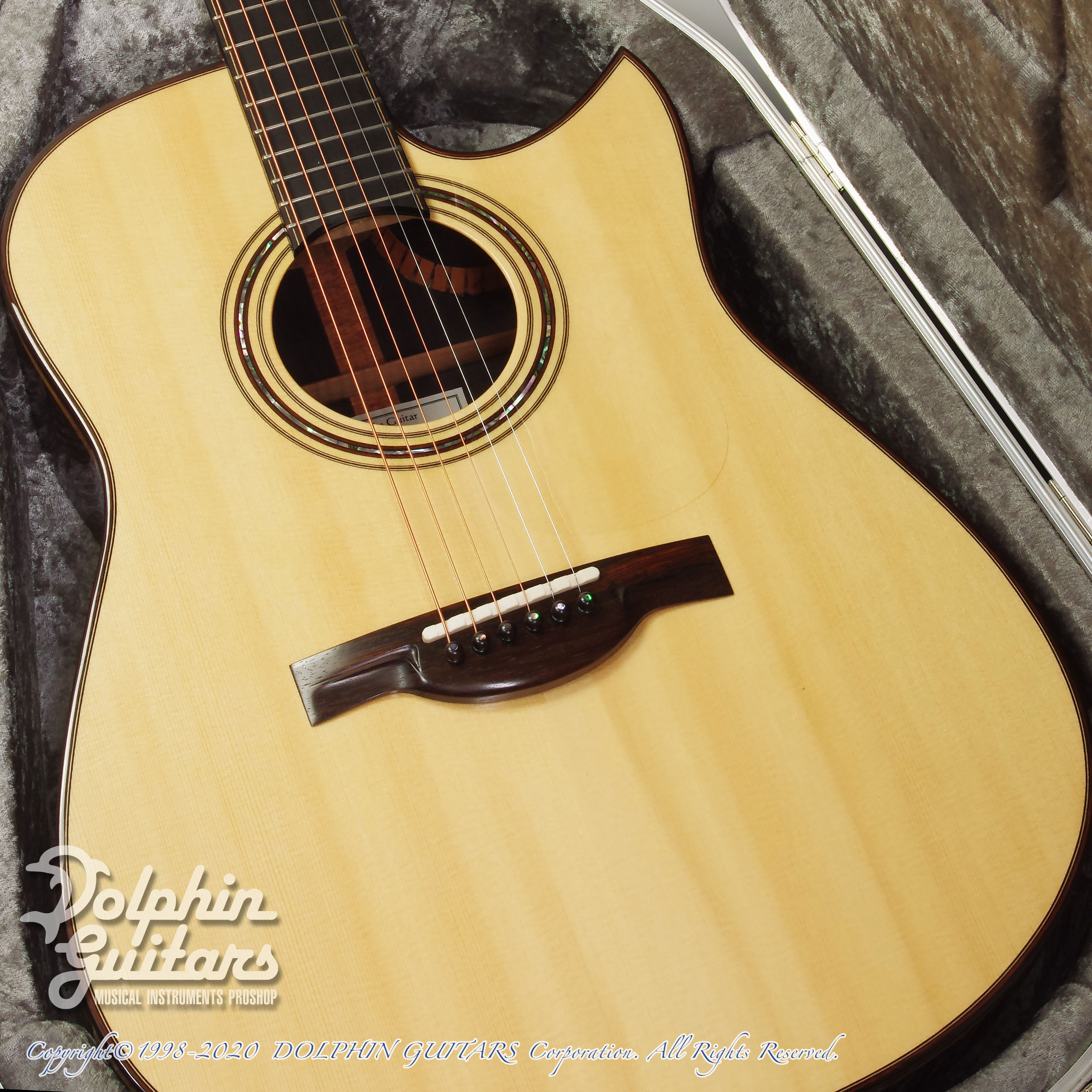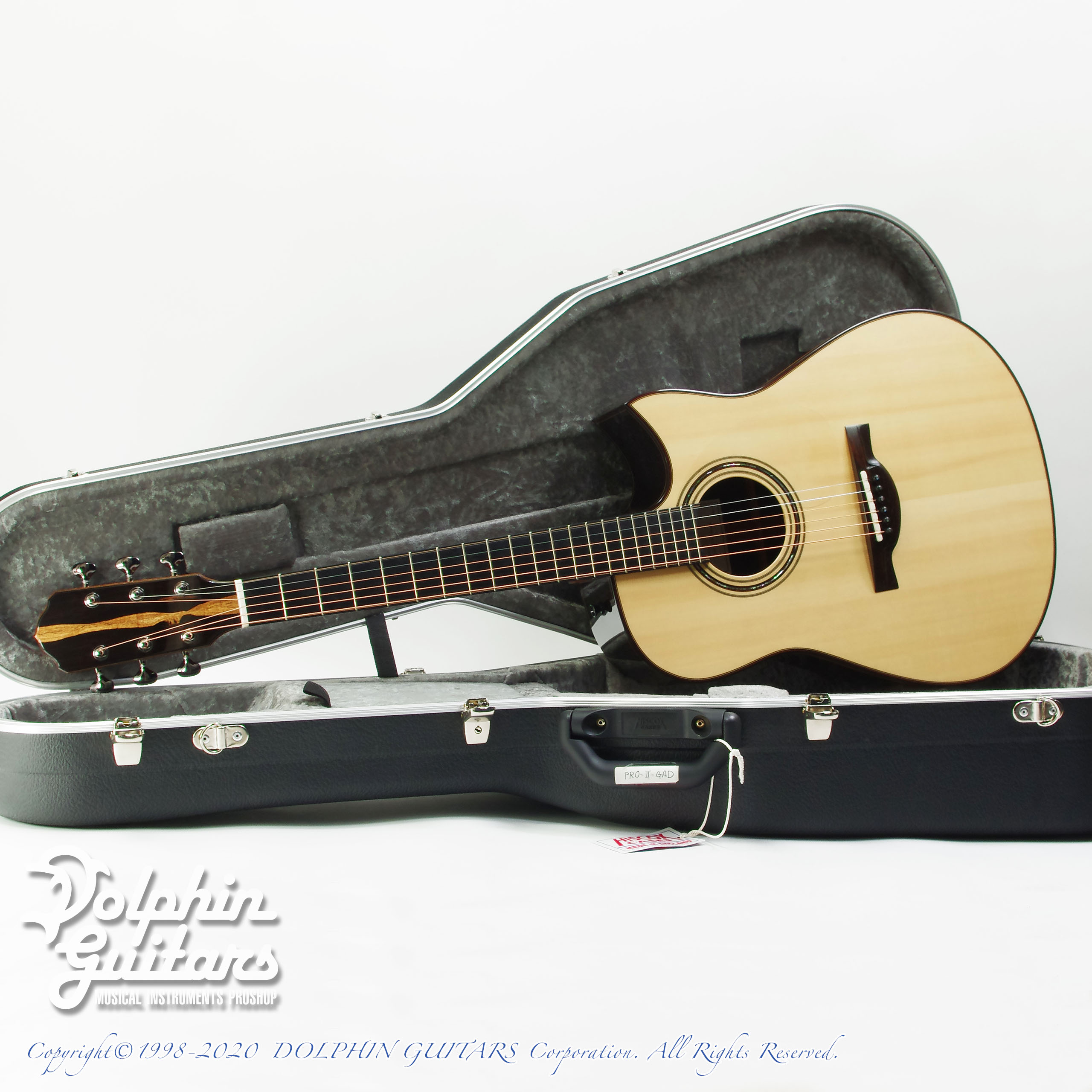 ジャーマン・スプルースTOP、アフリカン・ブラックウッドS&B、マホガニーネック、エボニー指板、ハカランダブリッジ、ブラックウッドバインディング、フローレンタイン・カッタウェイ、アバロンロゼッタ、Gotoh 510ペグ仕様。