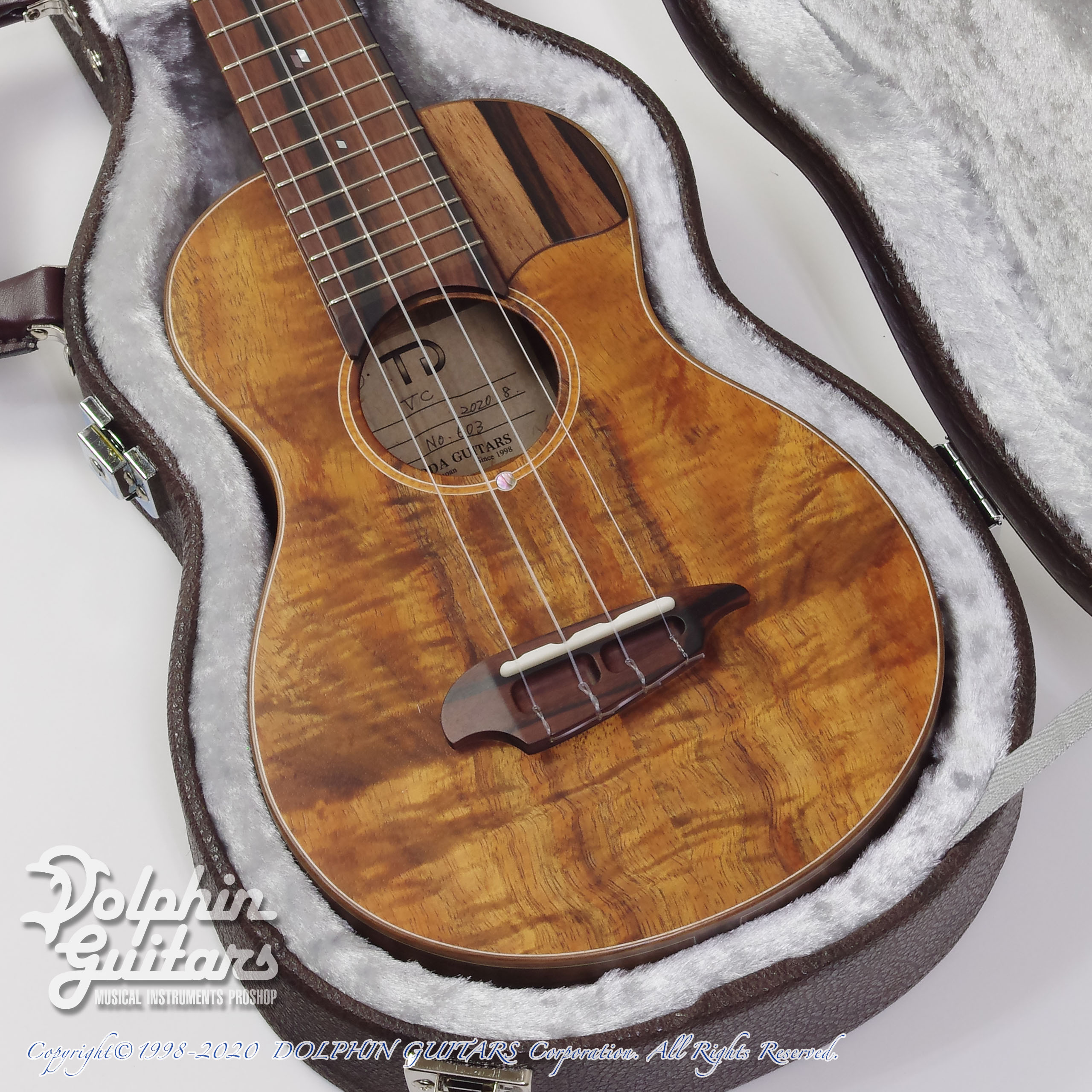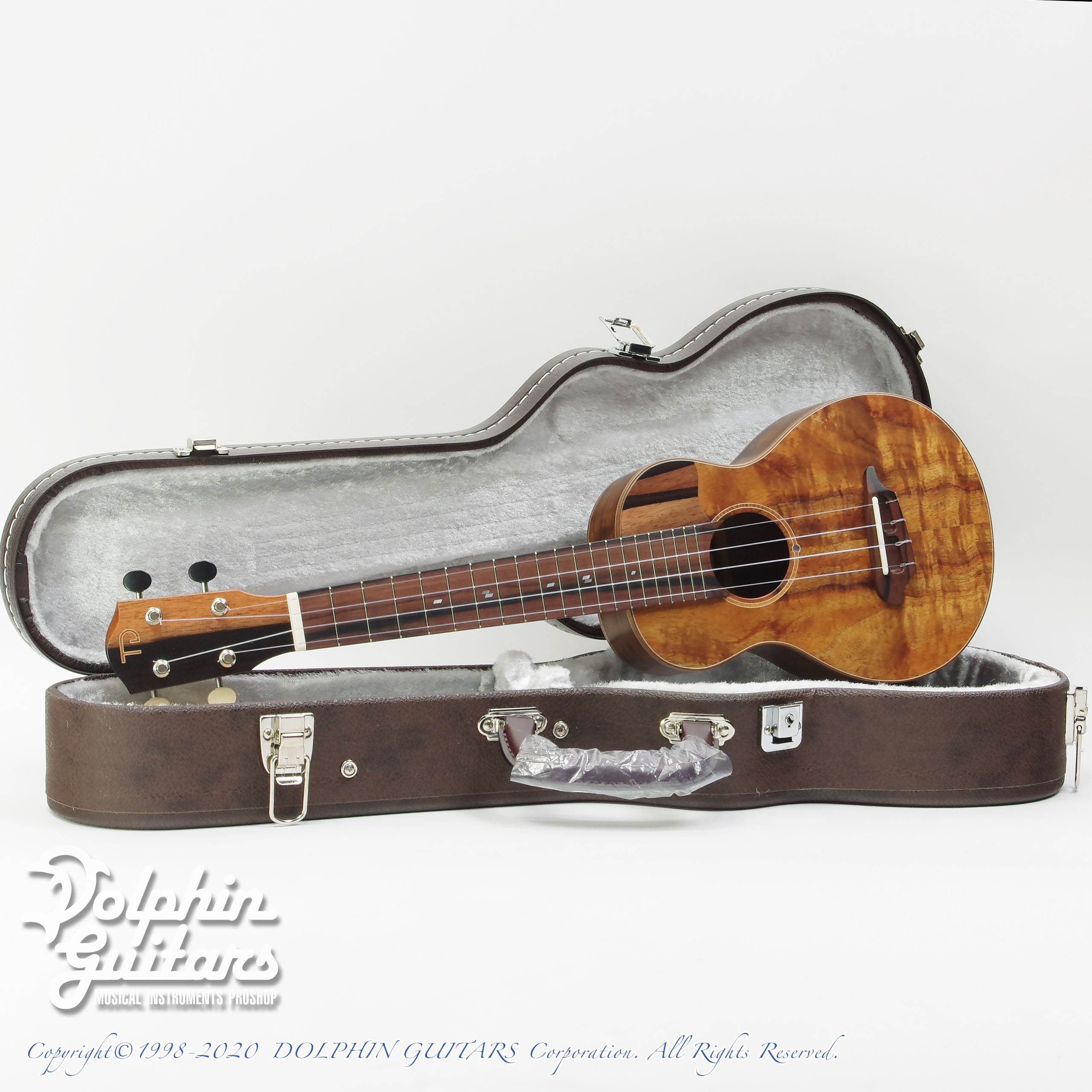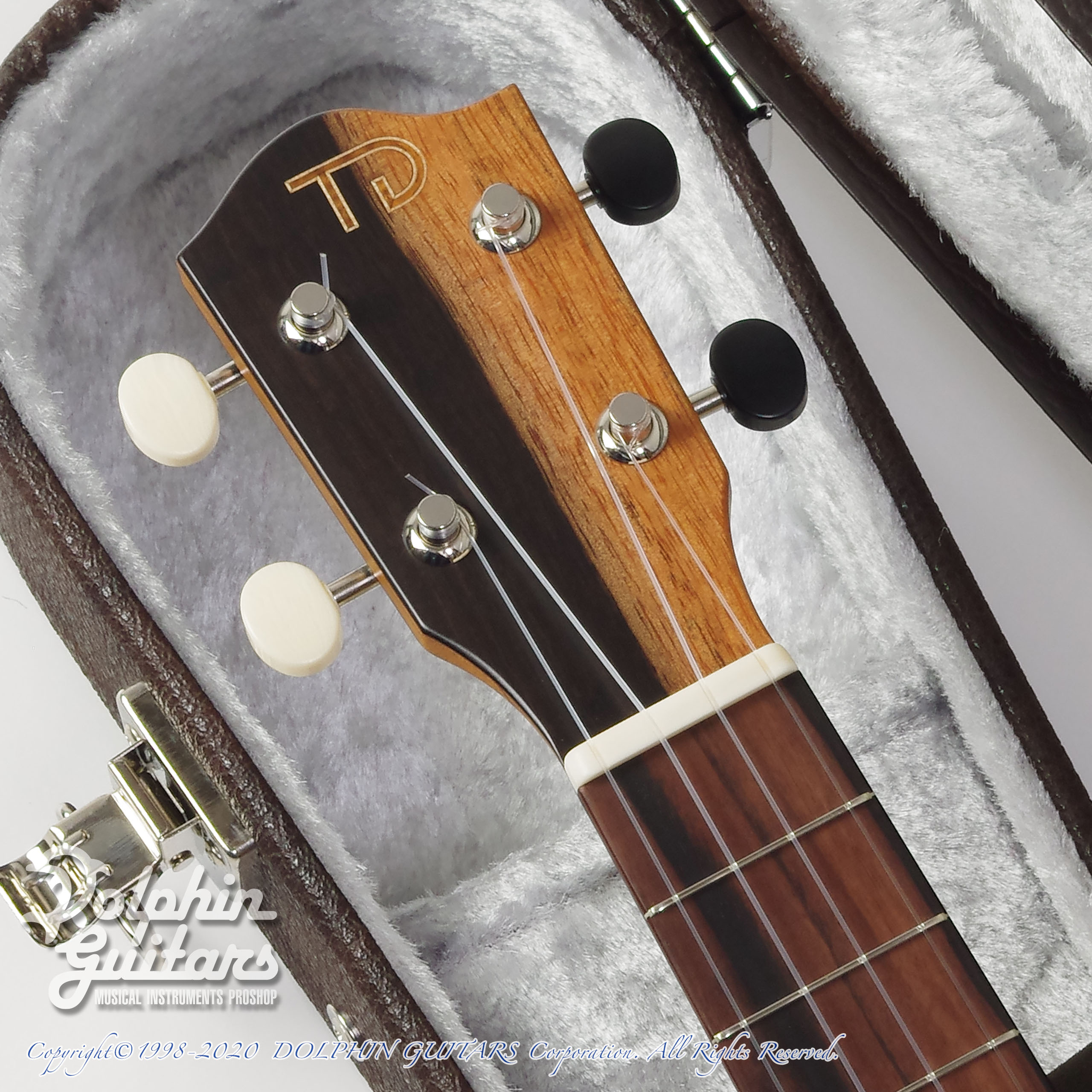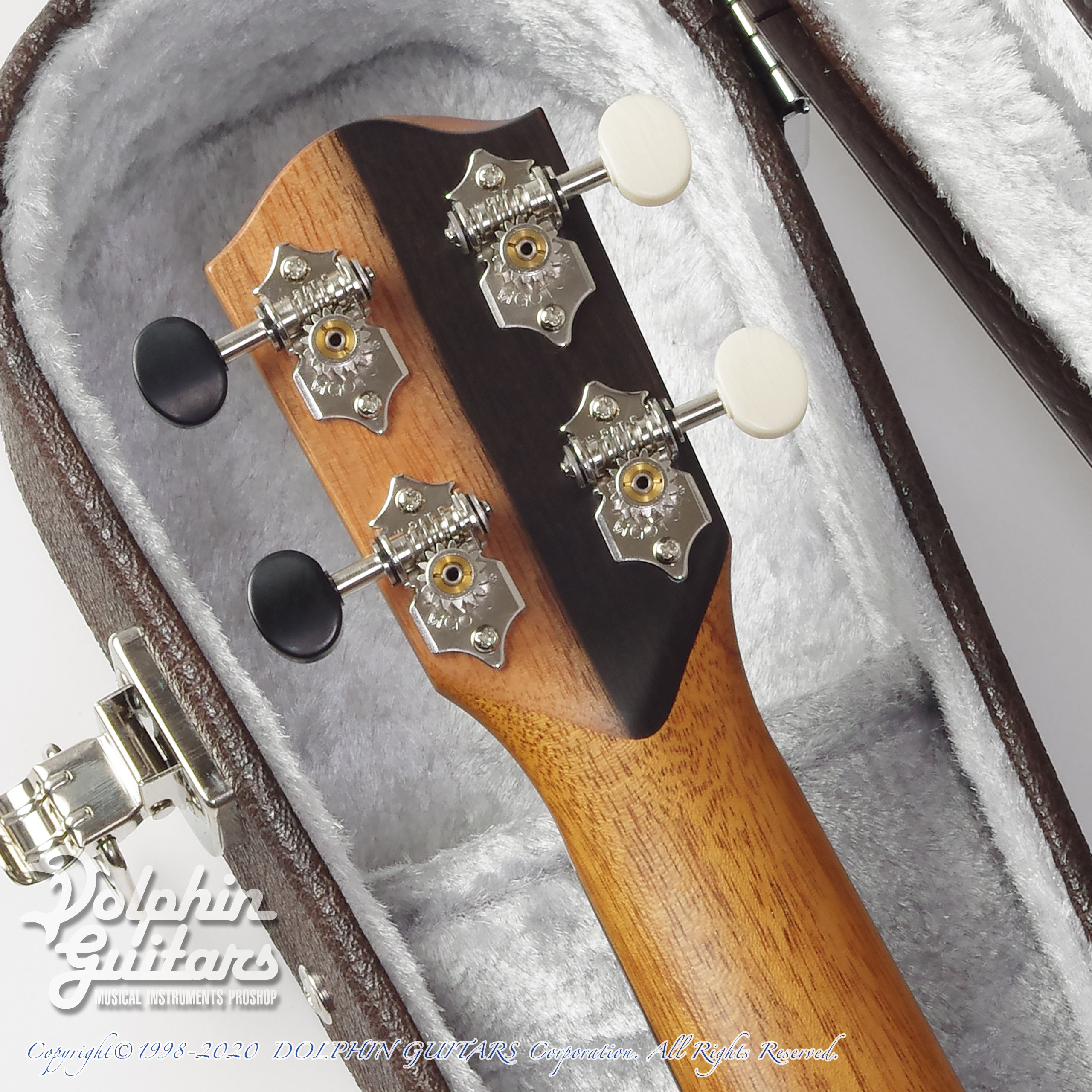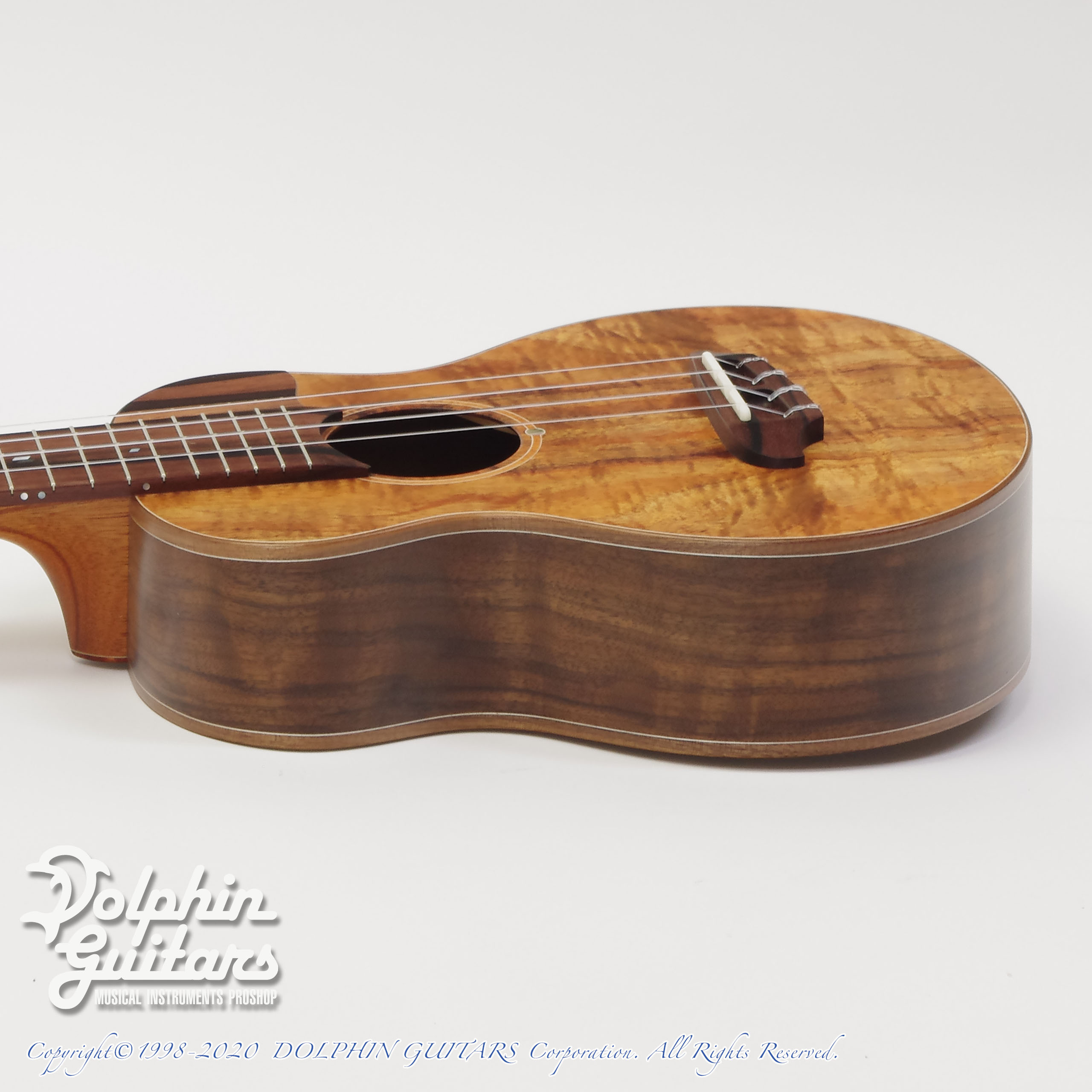 ふくよかで温かみがありつつも、サスティーンはスッキリと綺麗にまとまっており、絶妙なサウンドバランスに仕上がっています。ボディサイズは一般的なコンサートボディよりも僅かに小振りですが、音量やレスポンスの早さに驚かされます。ウクレレとしてはピッチの精度も高く、4弦すべて美しいハーモニーを奏でるハイエンドのウクレレであります。