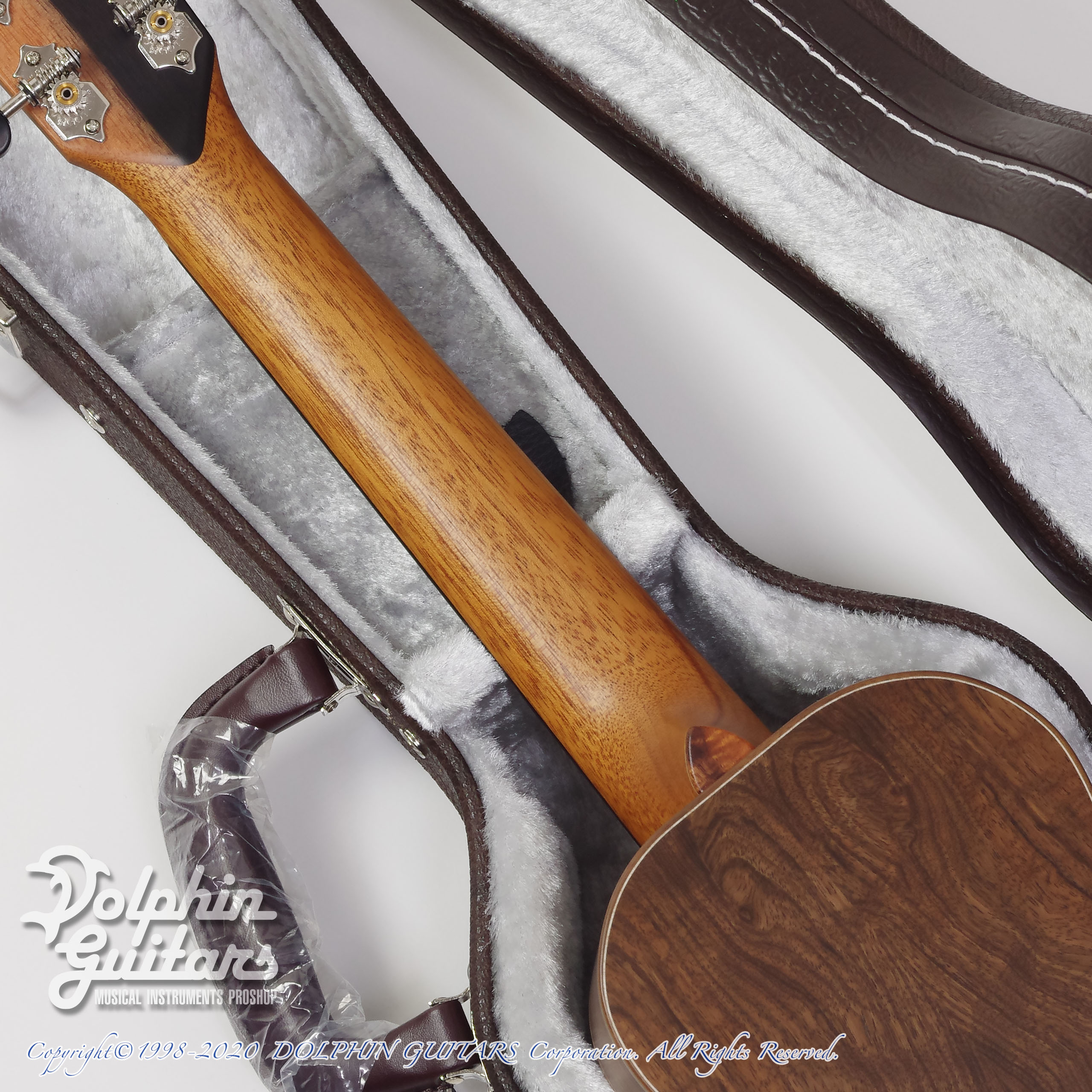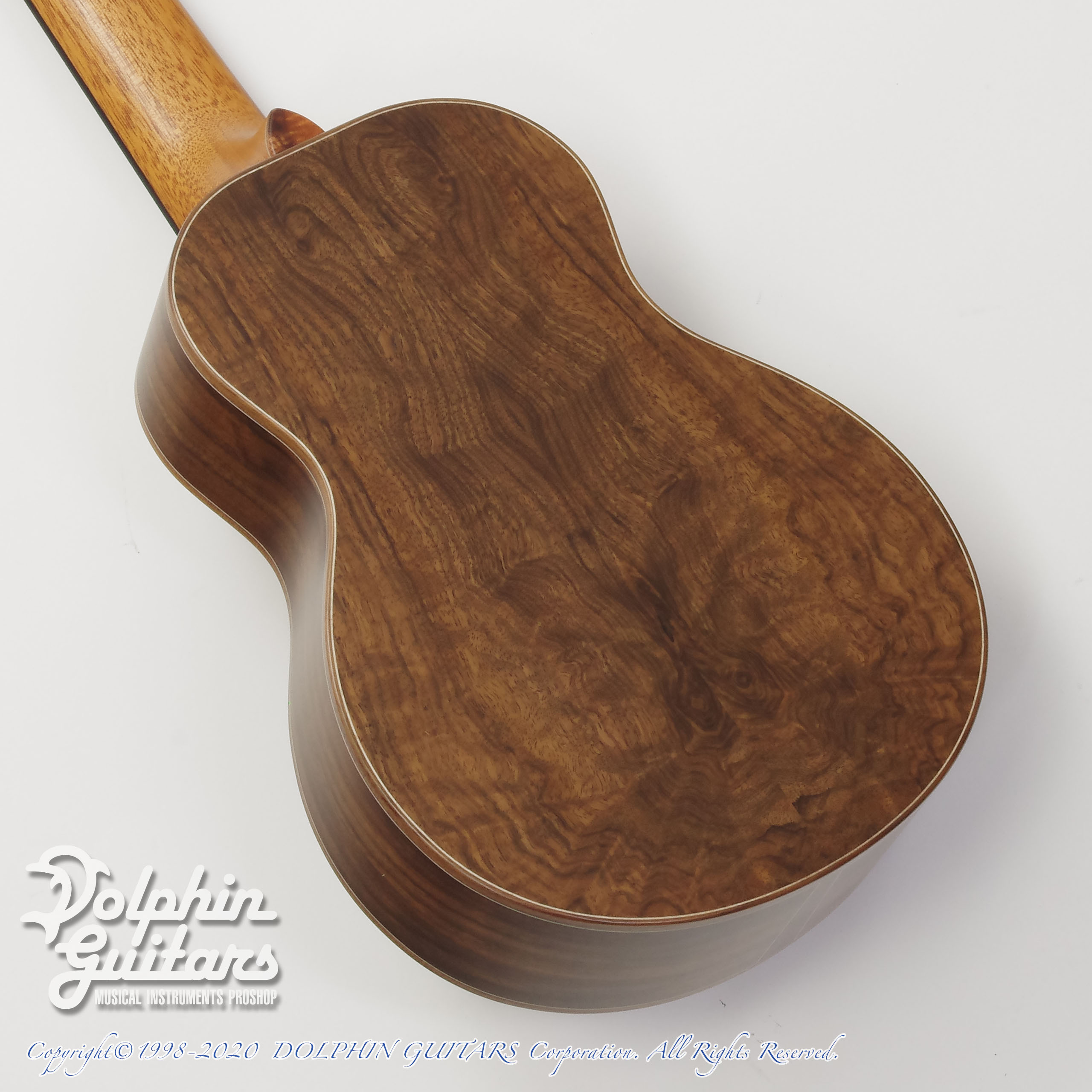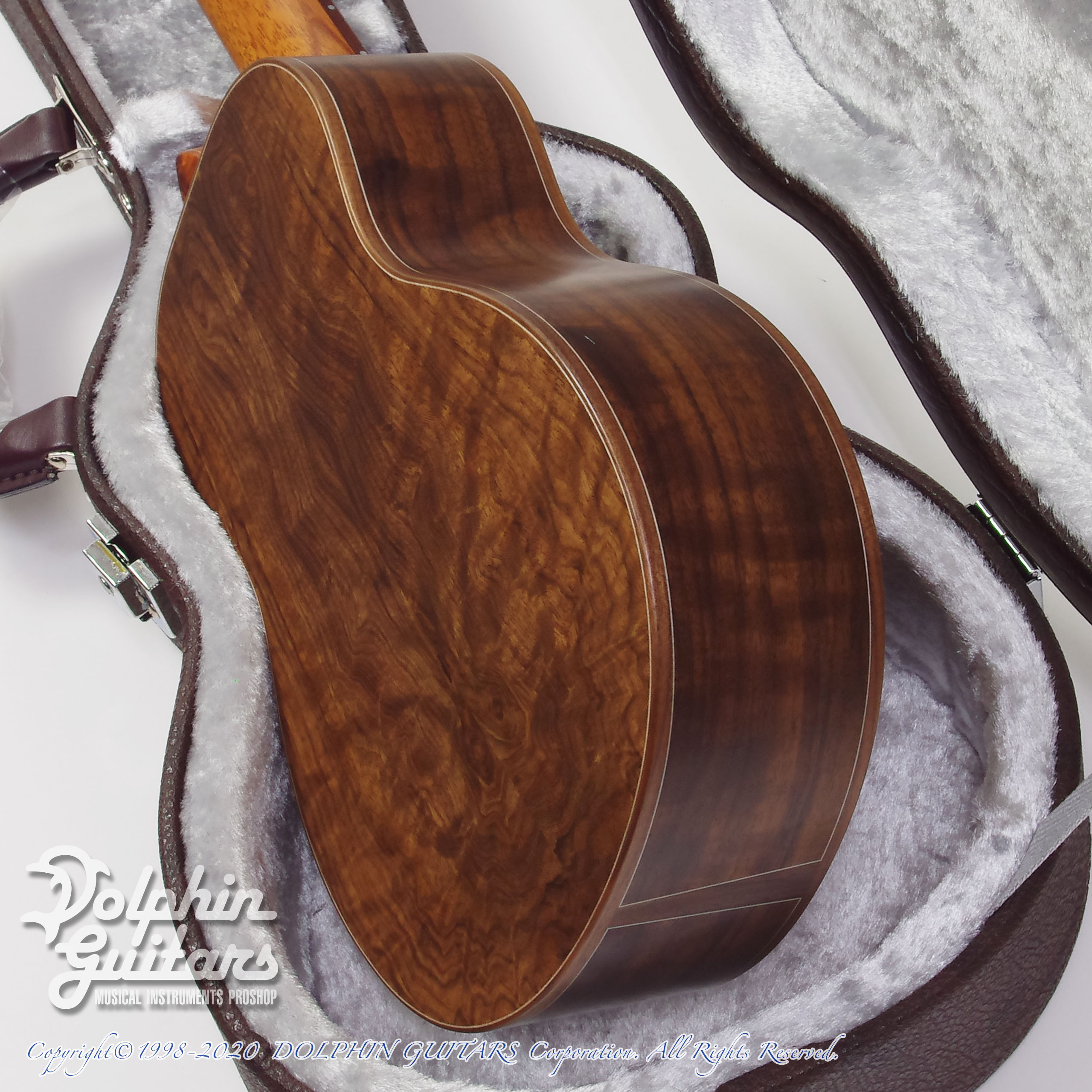 ハワイアンコアトップ、クラロウォルナットS&B、ホンジュラス・マホガ二ーネック、マッカーサーエボニー指板&ブリッジ、ウォルナットバインディング、385mmスケール、36mmナット、Gotohオープンバックペグ。