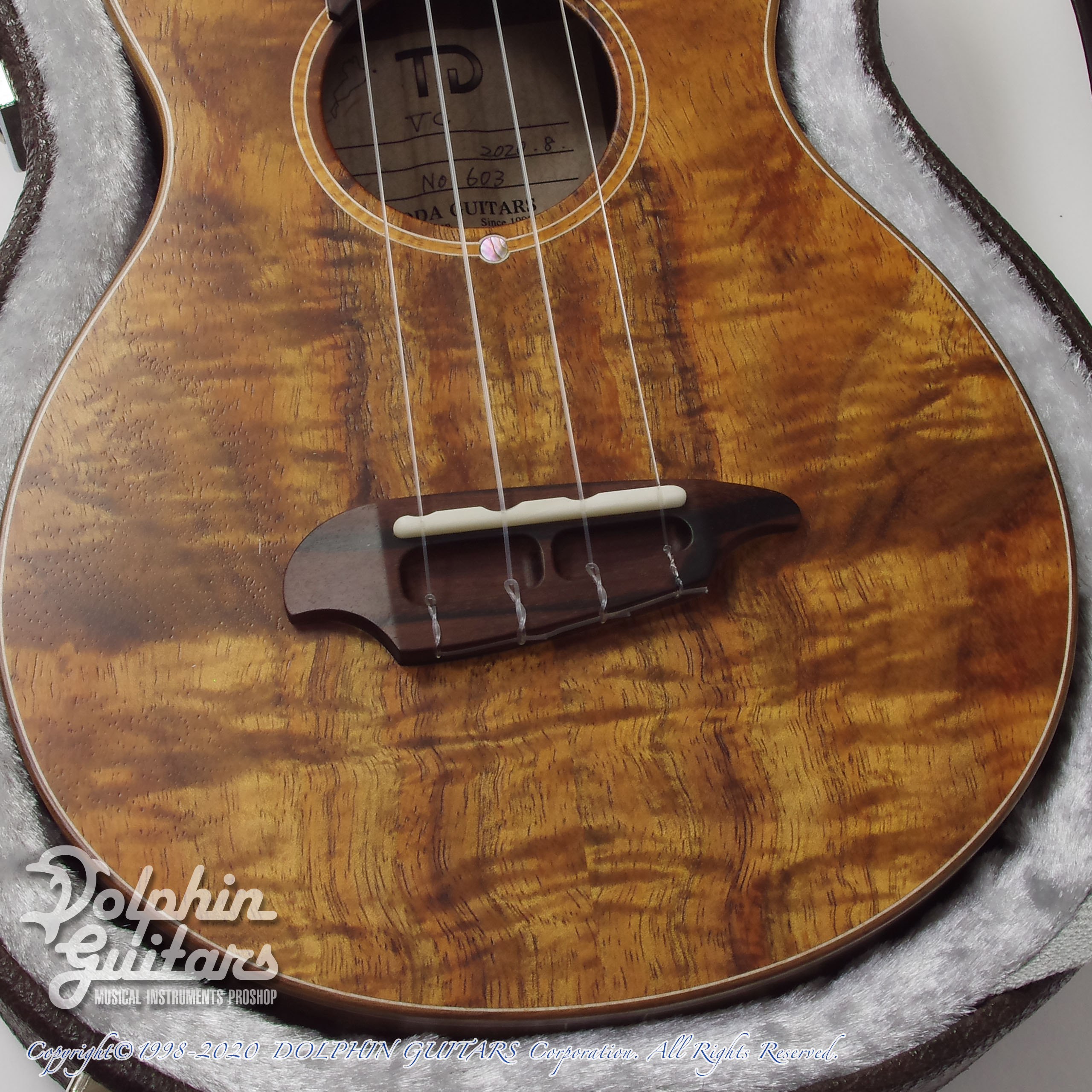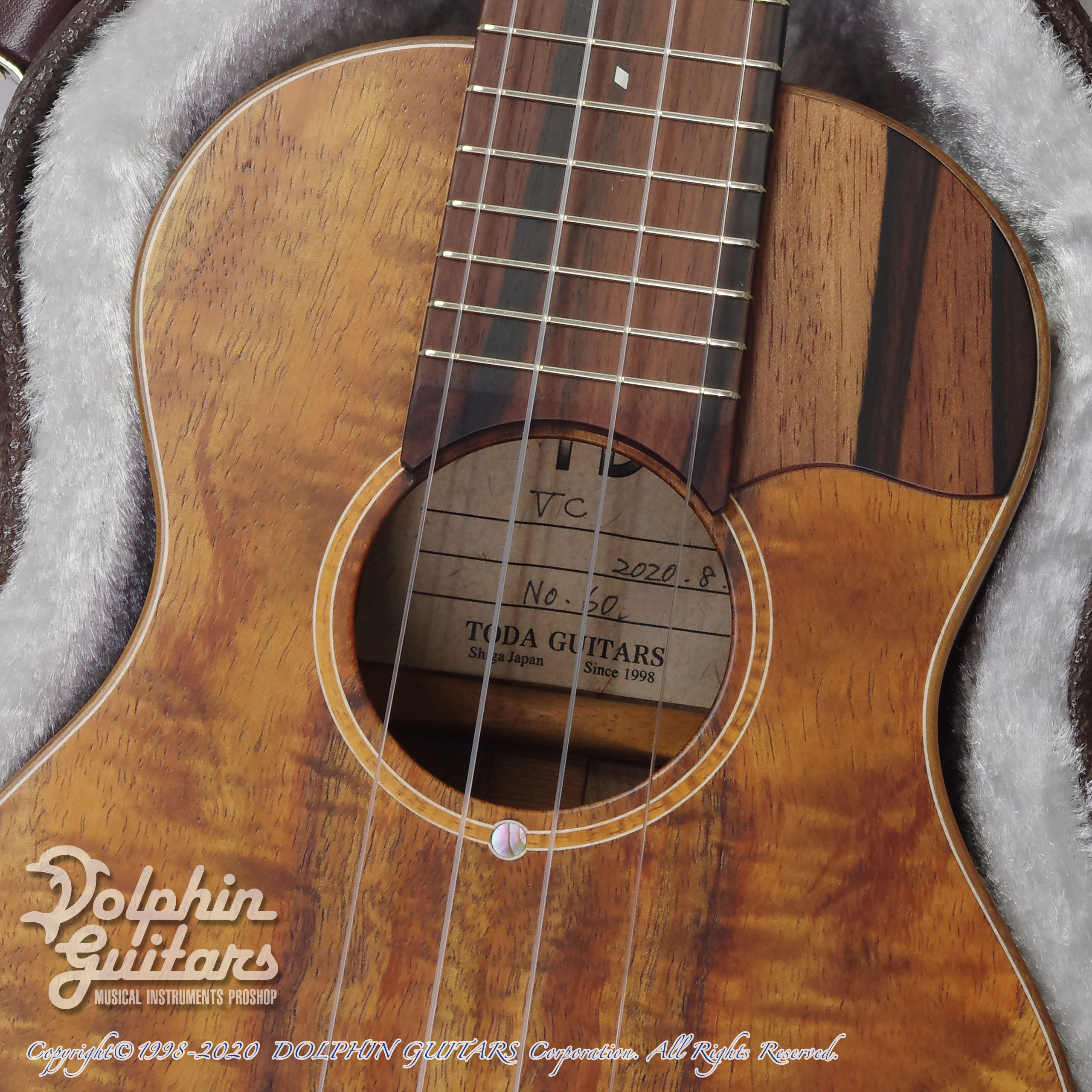 滋賀県のルシアー戸田真次。今や日本国内トップクラスの人気と実力者であります。戸田氏はエレクトリックやアコースティックギター製作は元より、ナイロンギターやハープギター、多弦楽器などなど独創的な楽器を生み出す奇才です。中でも製作本数が多いのがウクレレ。主にコンサートサイズ、テナーサイズを製作。本器はコンサートウクレレ VC。