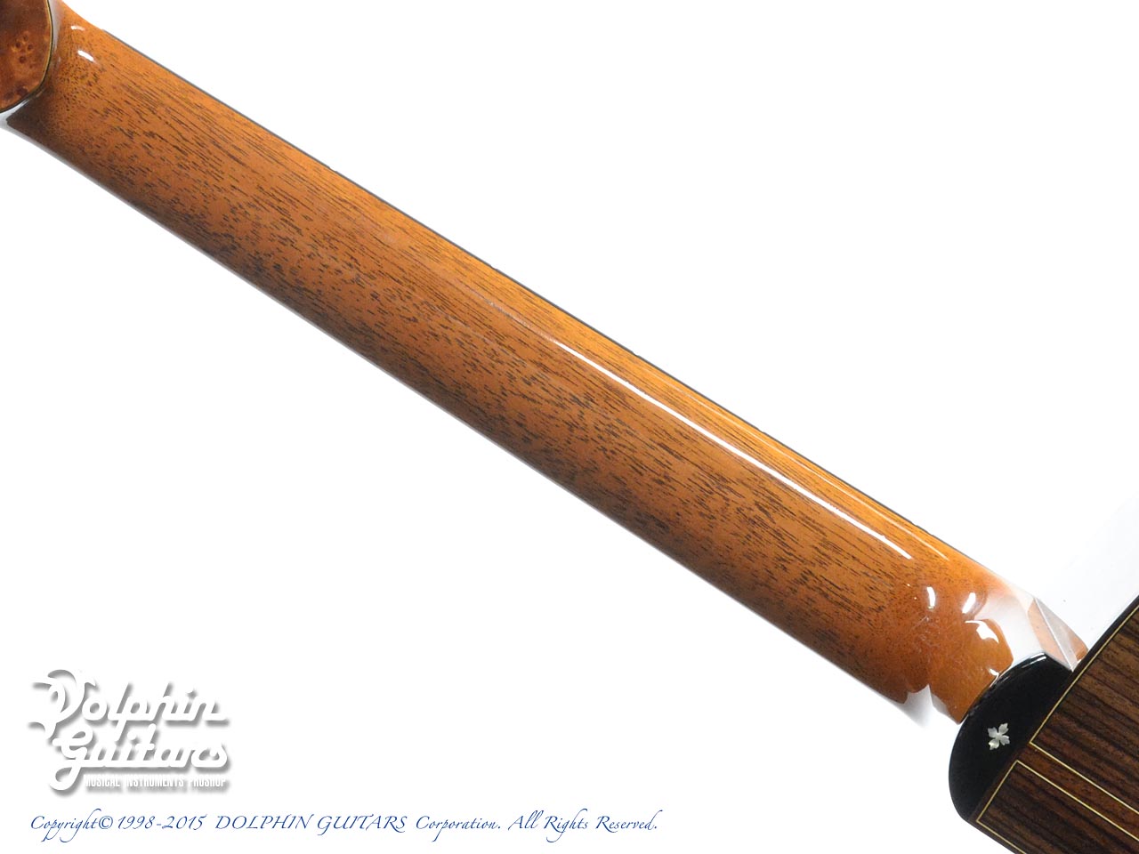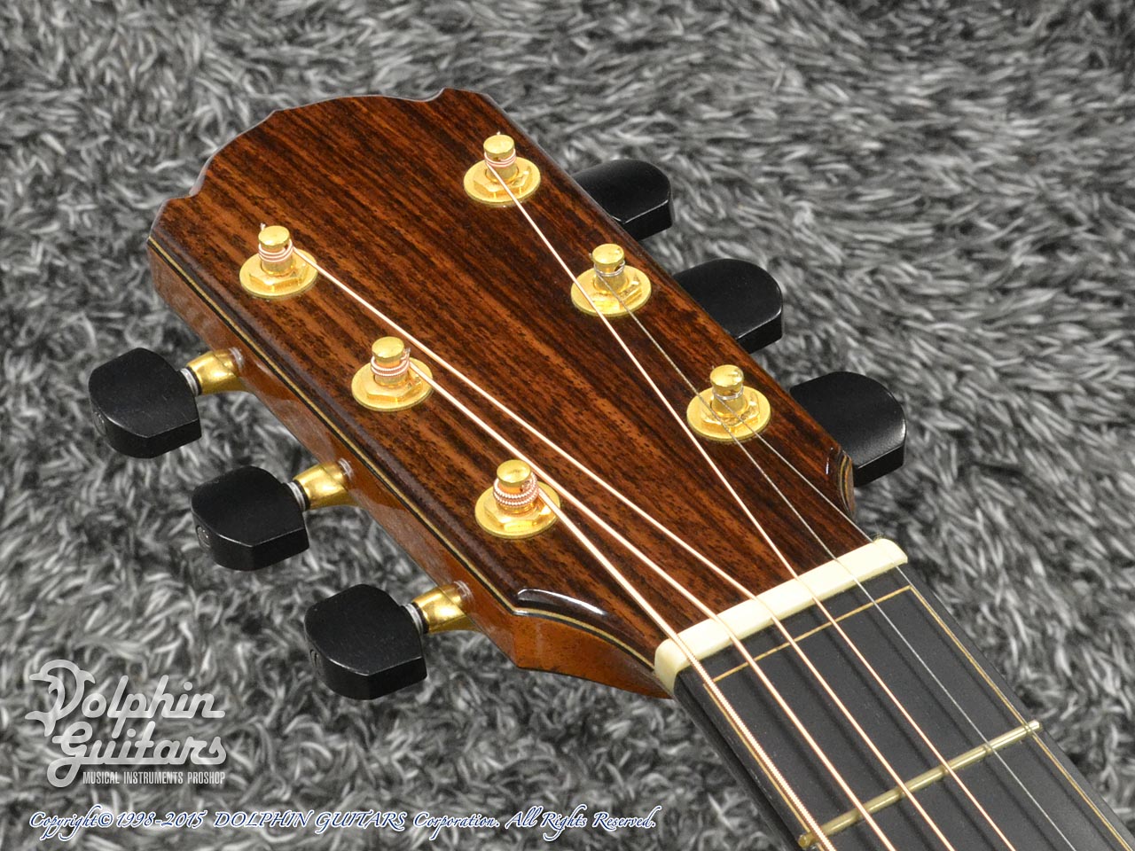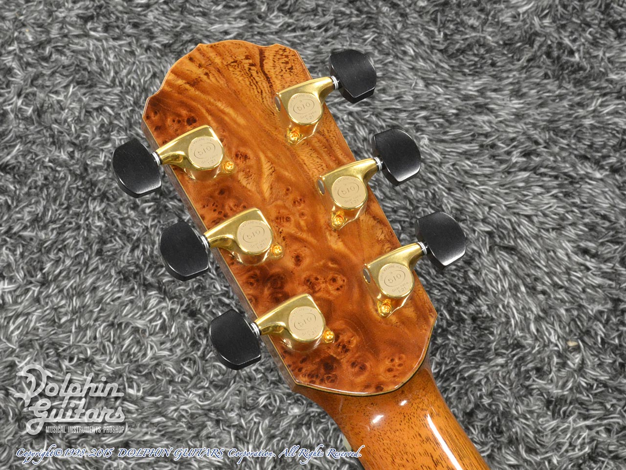 ヨーロピアンスプルース・トップ、インディアン・ローズウッド・サイド&バック、マホガニーネック、エボニー指板&駒、コア・ウッドバインディング、フローレンタインカッタウェイ、アバロン・ロゼッタ、ゴトー510糸巻き仕様。