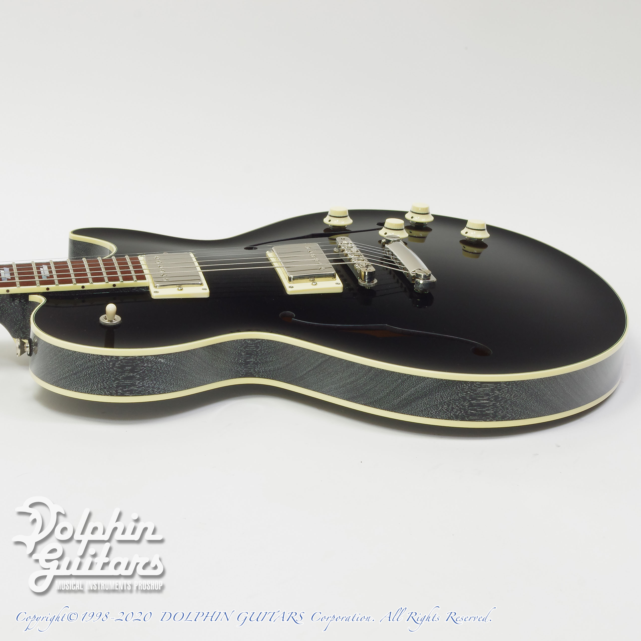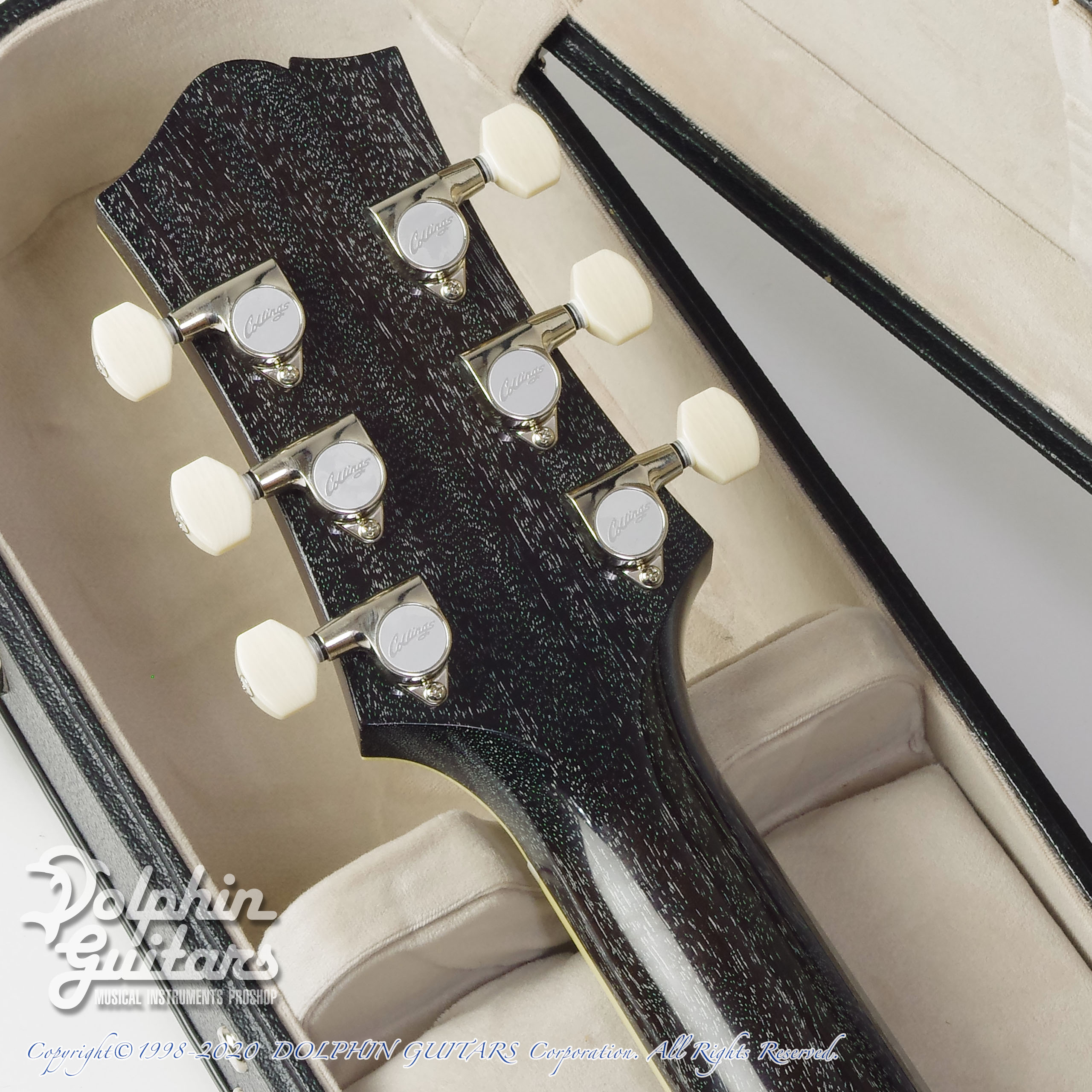 ヨーロピアン・スプルース、ホンジュラス・マホガニーボディ、マダガスカルローズウッド指板、トーンプロズ・ブリッジ&テールピース、指板インレイはダブルパラレログラム、Gotohロトマティックペグ、スローバックPU。