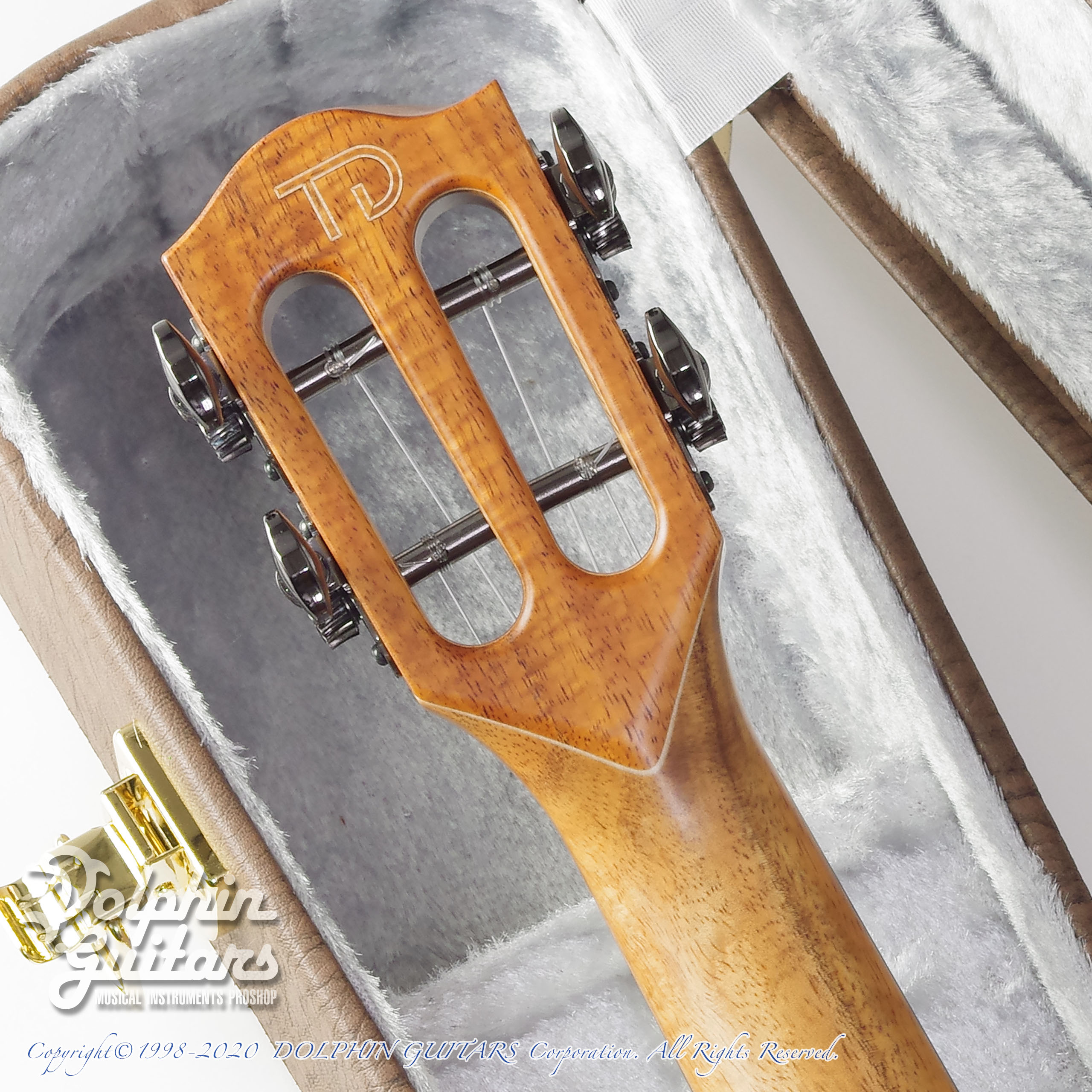 戸田氏はエレクトリックやアコースティックギター製作は元より、ナイロンギターやハープギター、多弦楽器などなど独創的な楽器を生み出す奇才です。中でも製作本数が多いのがウクレレ。主にコンサートサイズ、テナーサイズを製作。本器はテナーウクレレのカスタムモデル。