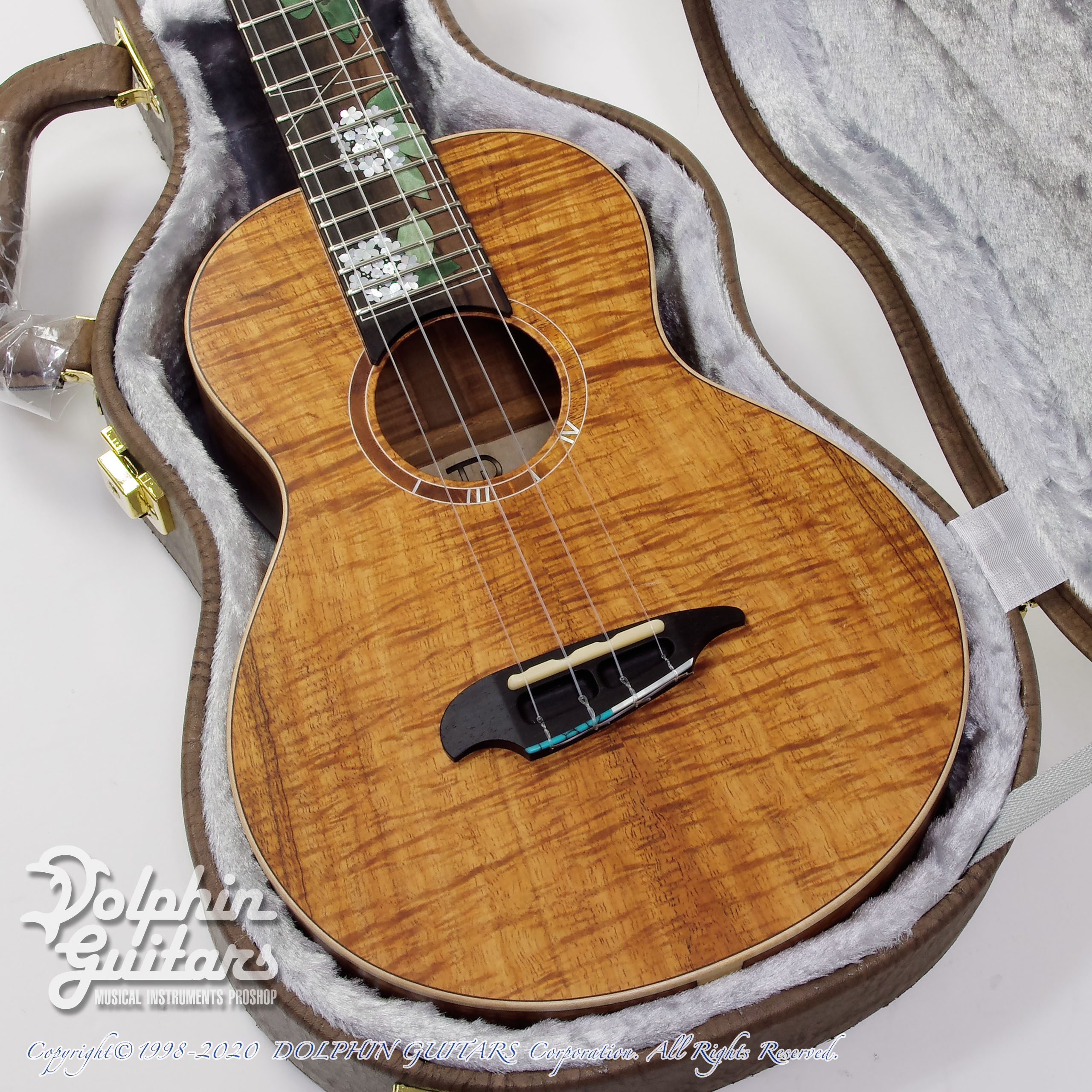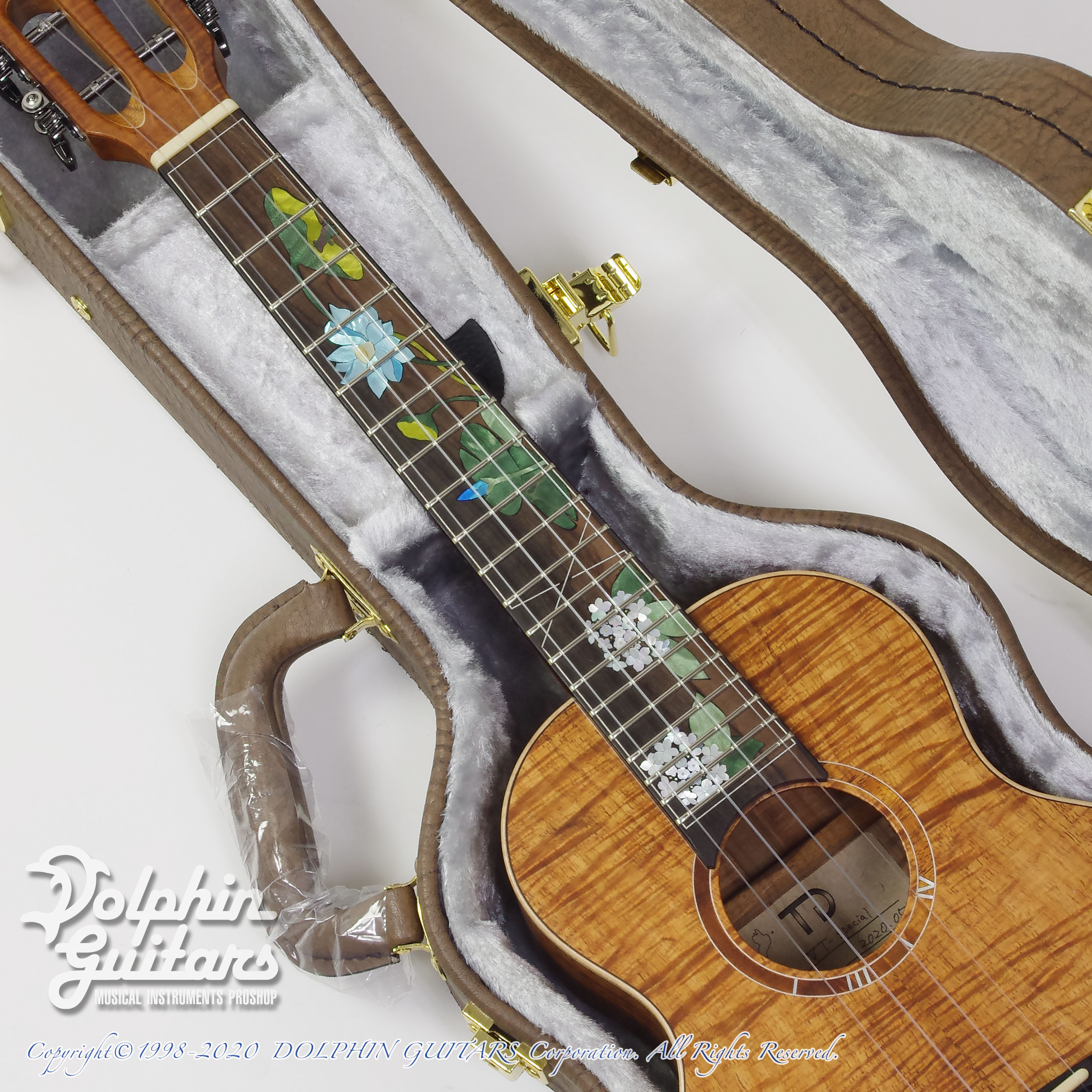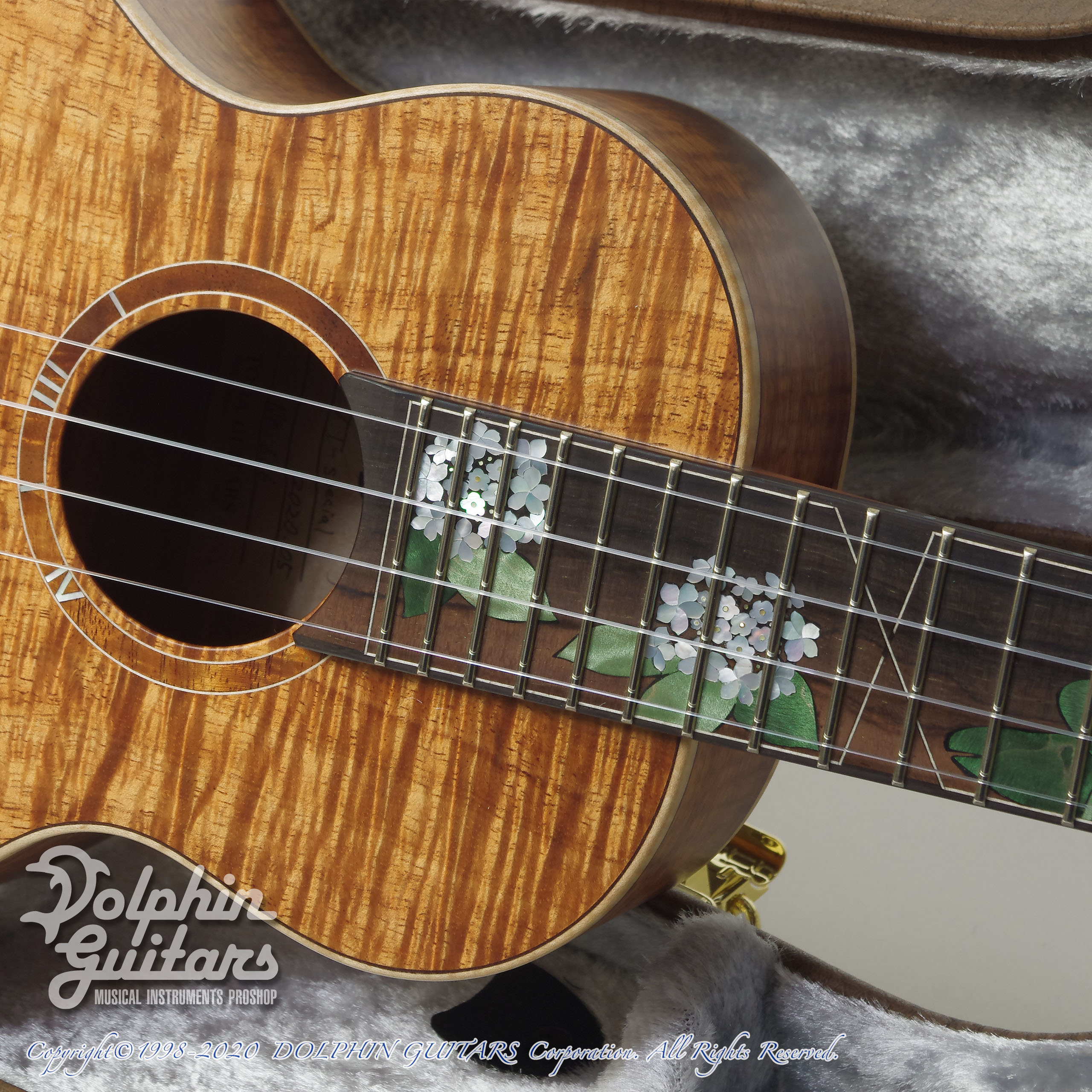 ハワイアンコアTOP、ハワイアンコアS&B、マホガ二ーネック、ローズウッド指板&ブリッジ、ウッドバインディング、432mmスケール、36mmナット、Gotohペグ、カスタムインレイ。*インレイワークは新潟のインレイ職人 OGAWA INLAY CRAFT