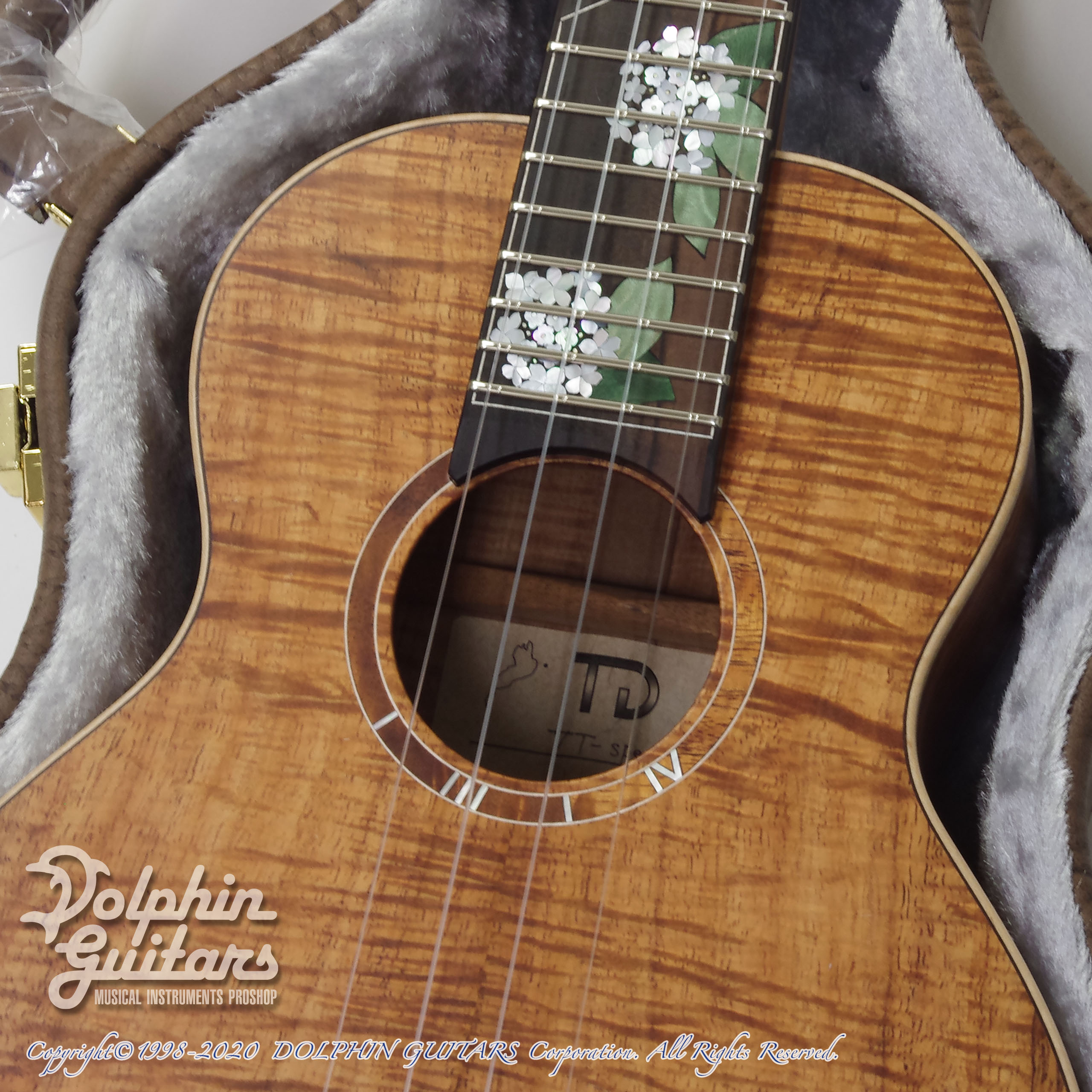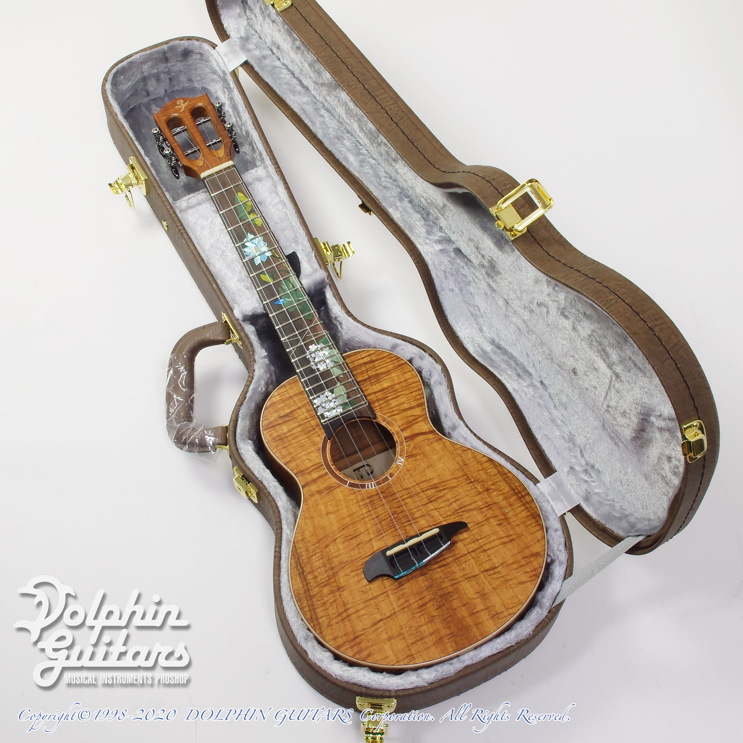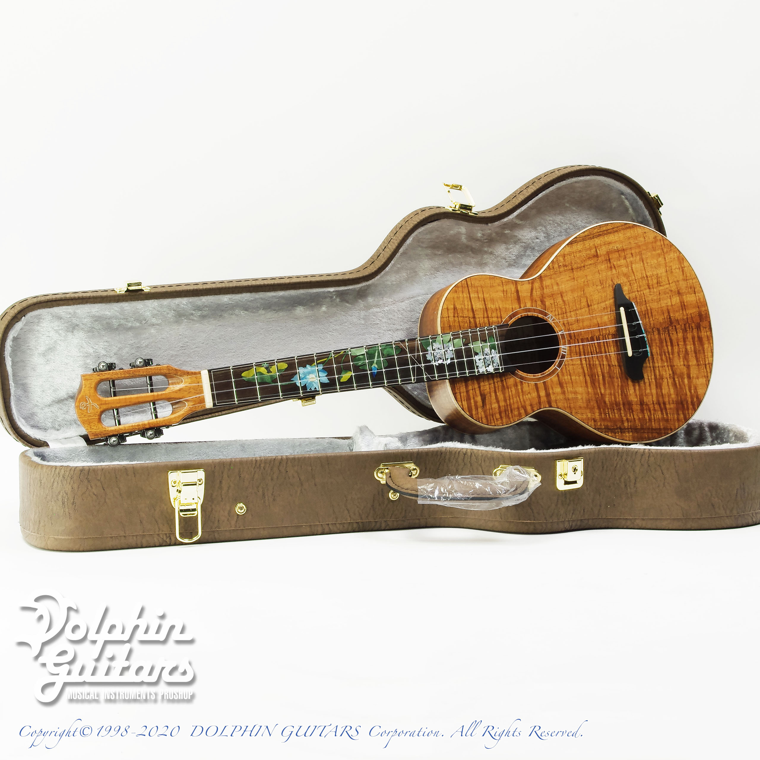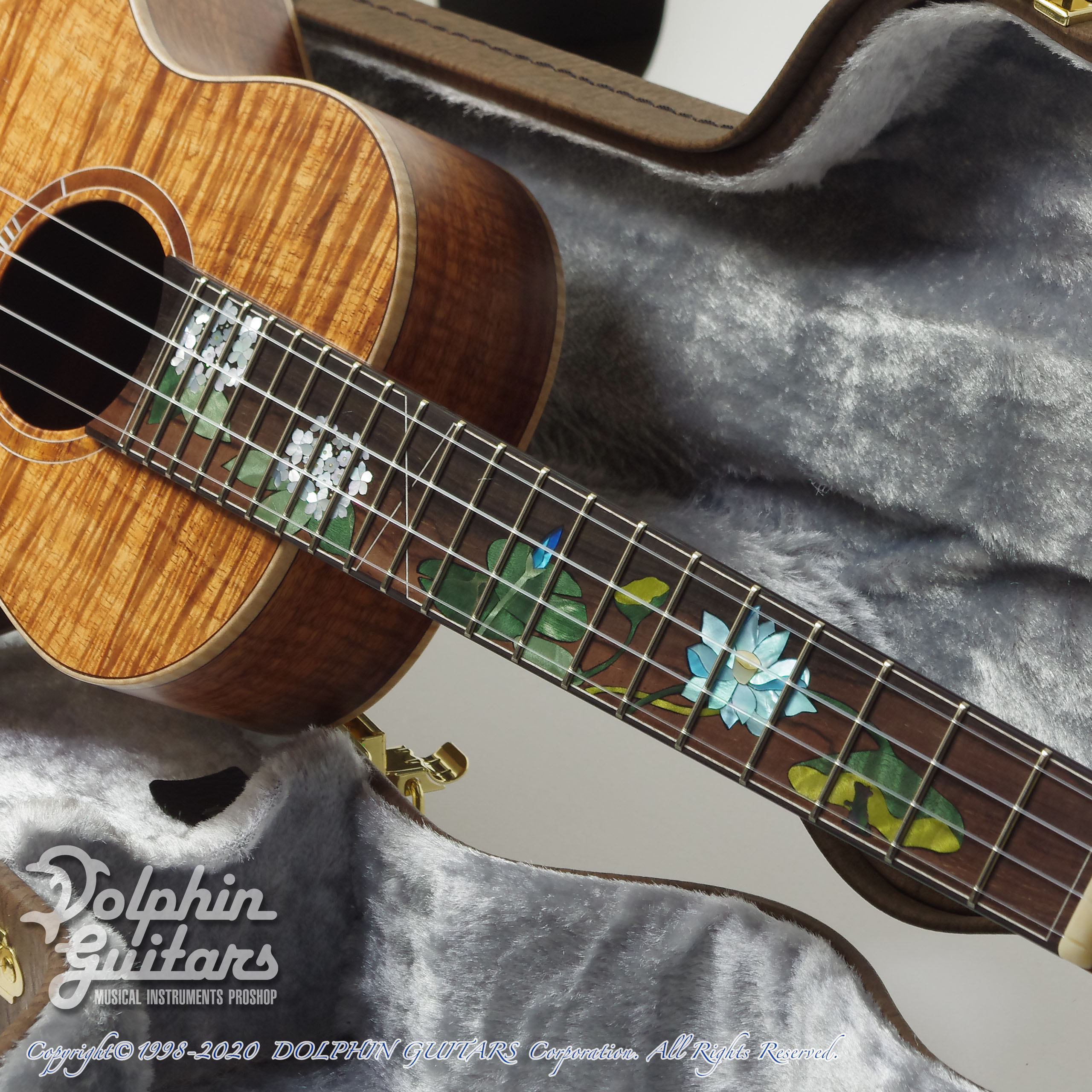 ハワイアンコアTOP、ハワイアンコアS&B、マホガ二ーネック、ローズウッド指板&ブリッジ、ウッドバインディング、432mmスケール、36mmナット、Gotohペグ、カスタムインレイ。*インレイワークは新潟のインレイ職人 OGAWA INLAY CRAFT