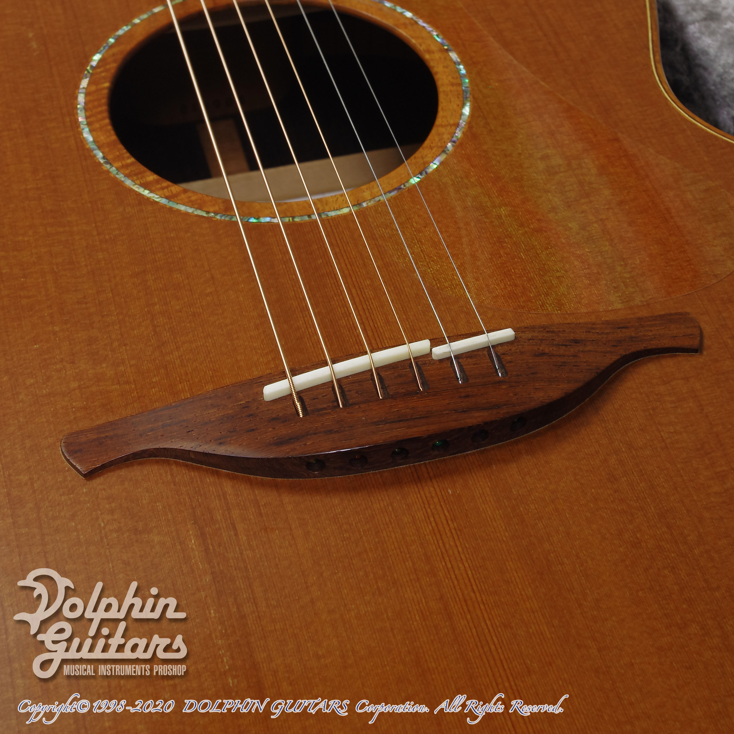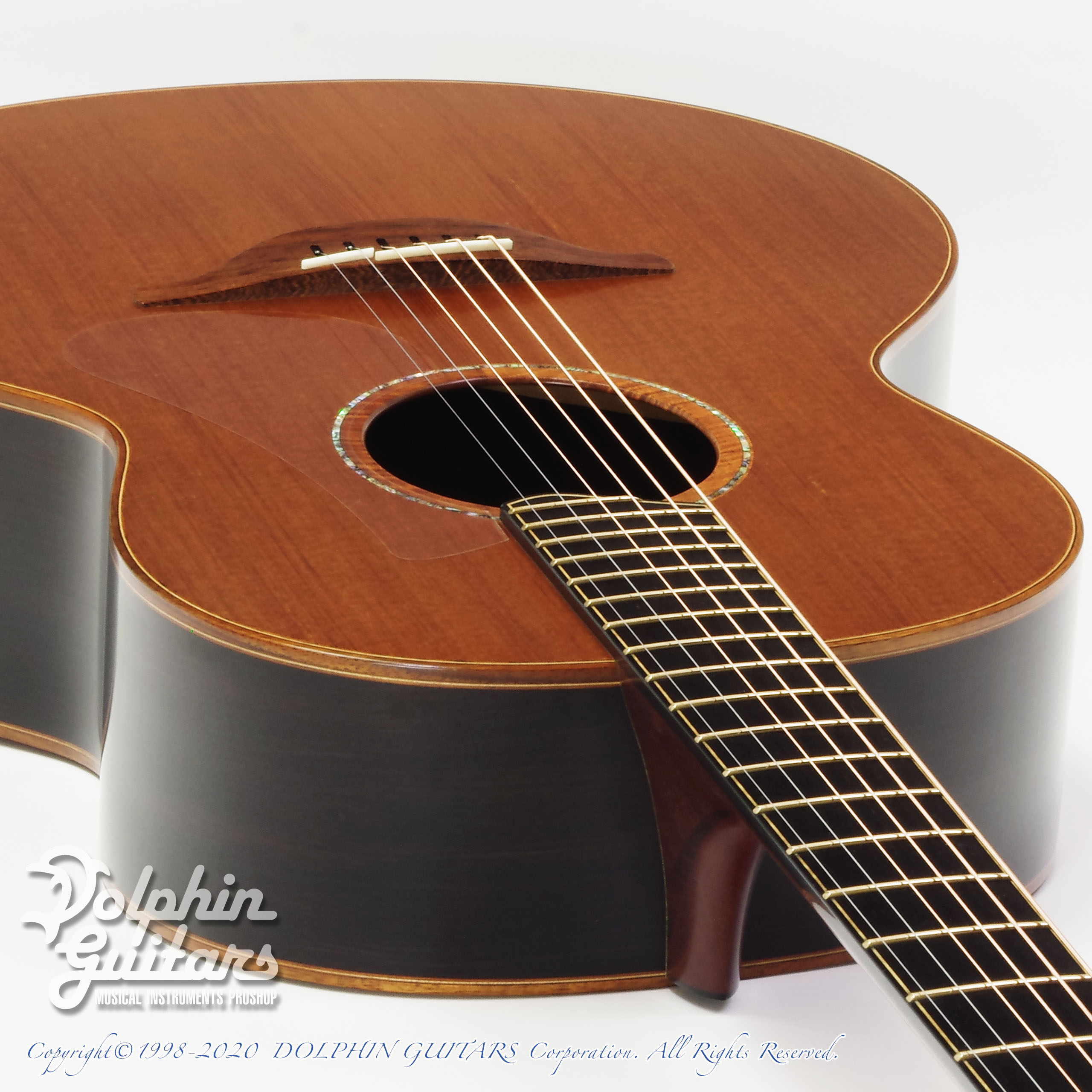 シンカーレッドウッドTOP、アフリカン・ブラックウッドS&B、マホガニー/ローズウッド5pネック、エボニー指板、ローズウッドブリッジ、牛骨ナット・サドル、ハワイアンコアバインディング、アバロンカスタムロゼッタ、Gotoh510ペグ。