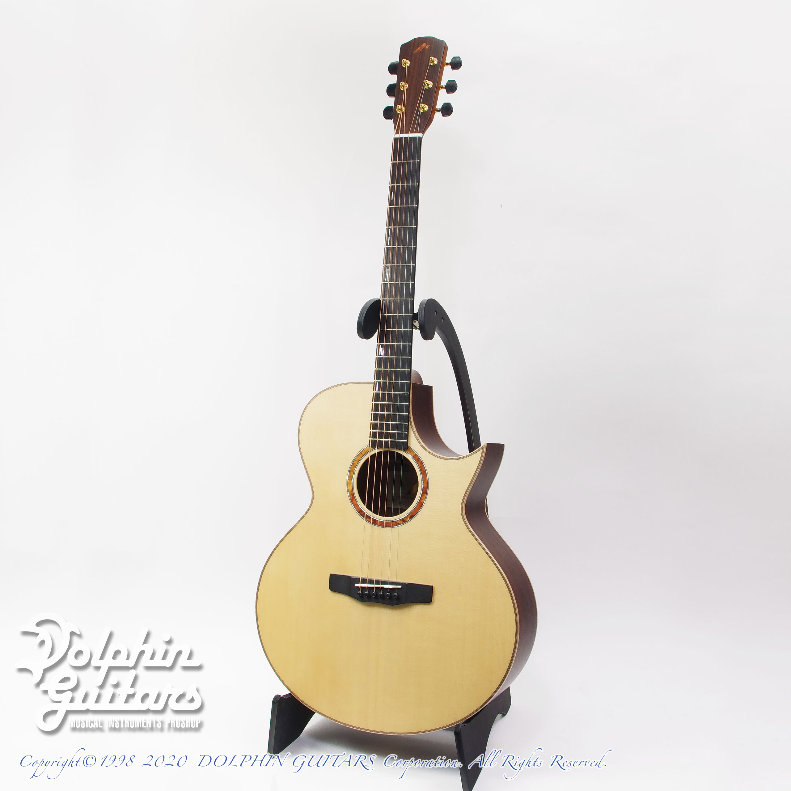 本器はそのバリエーションで生まれたSJスタイルをベースに、Hand Made Premiumラインにて当店が特注した【MORRIS x Dolphin Guitars】REVOシリーズ第2弾。フィンガースタイルを追求した、SJ-101 REVO、【限定6本生産】。