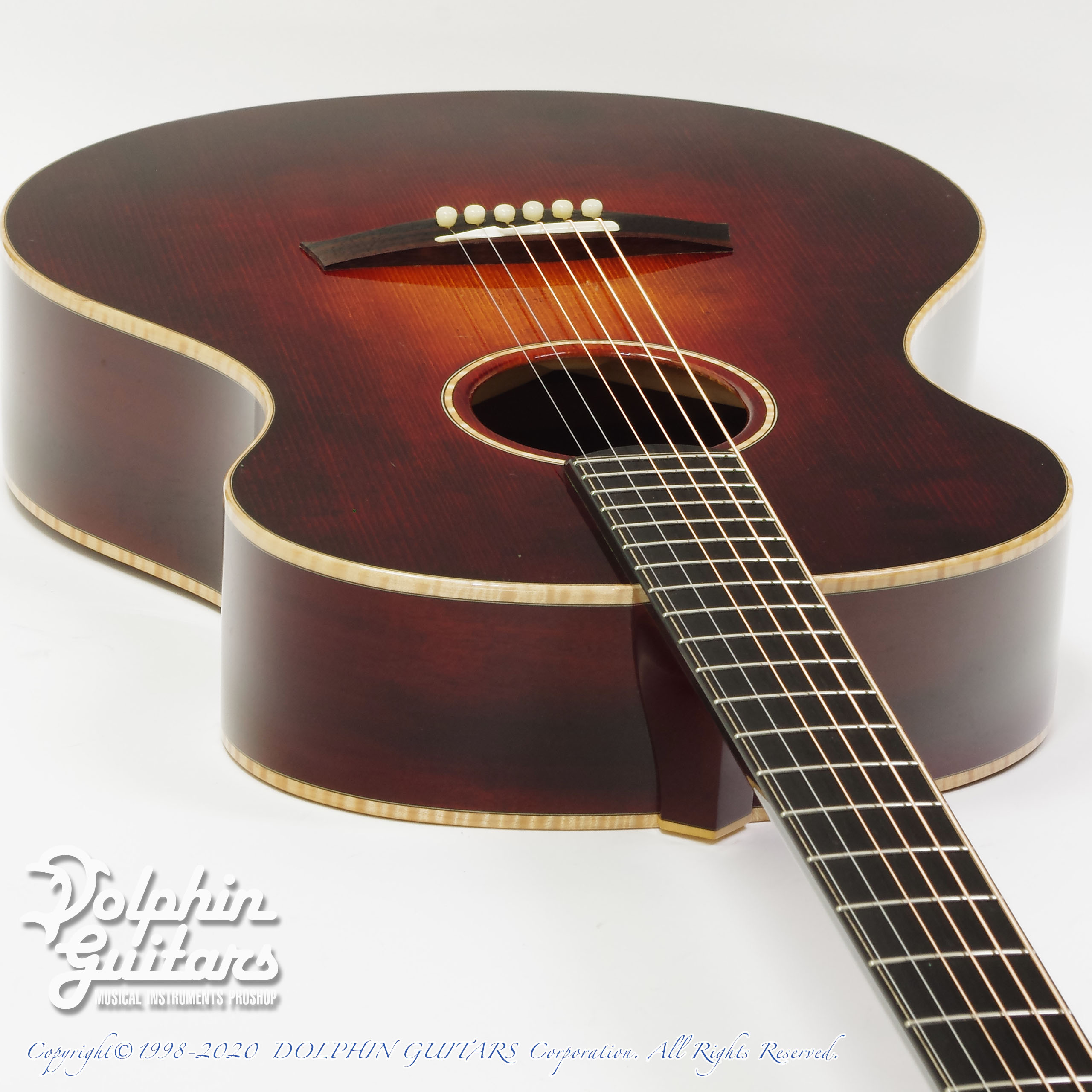 アディロンダック スプルースTOP、キューバンマホガニーS&B、スキャロップドXブレイス、ホンデュラスマホガニー1pネック、エボニー指板、ハカランダブリッジ、メイプルバインディング、ウェバリーペグ、オールラッカーフィニッシュ、サンバーストカラー。