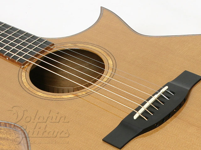 フィンガーピッカーに人気のスモール・ジャンボボディーをベースに、トップにはシダー、サイド&バックにはマホガニーを採用しカーリ・コアウッドのバインディングで巻き、ラッカーフィニッシュで仕上げました。