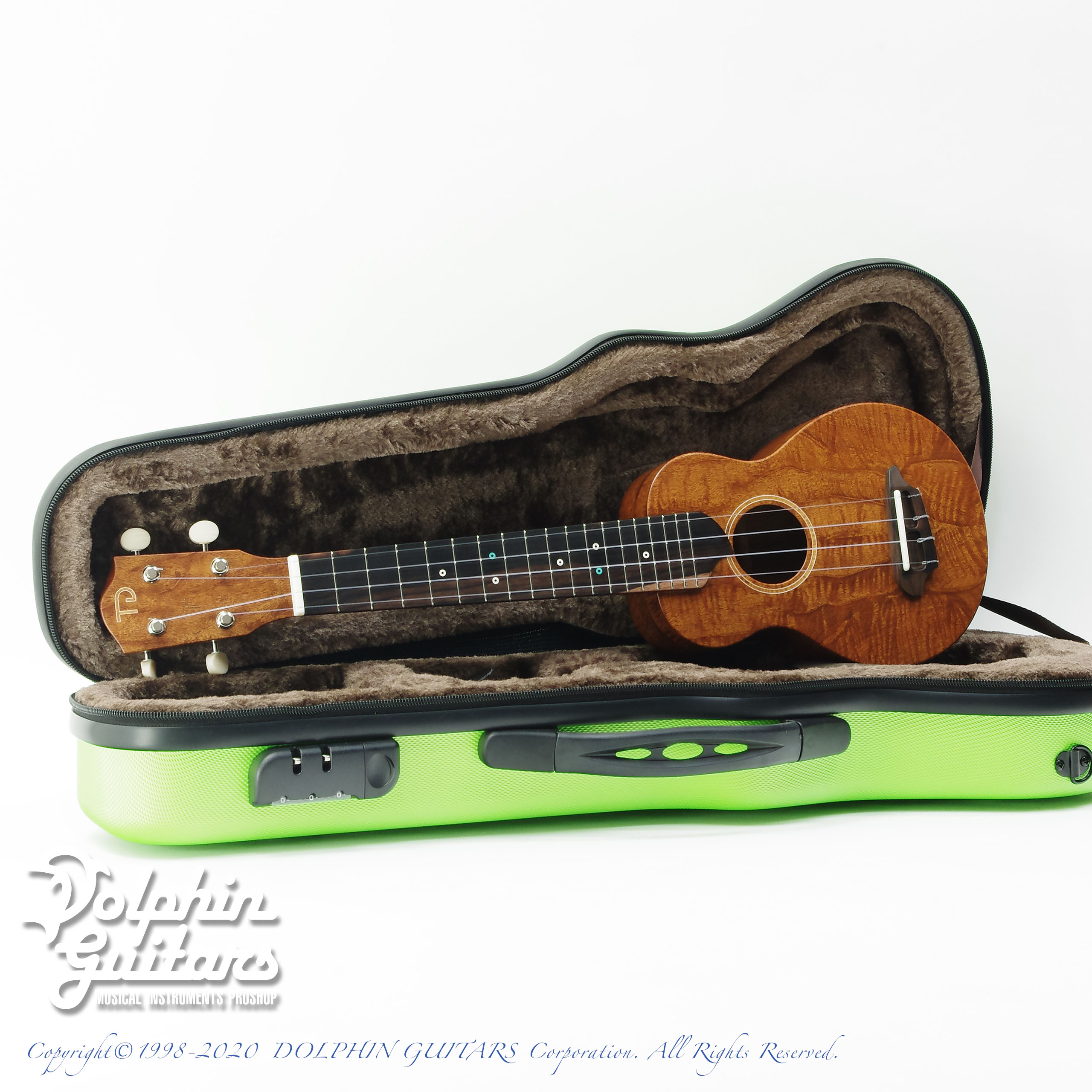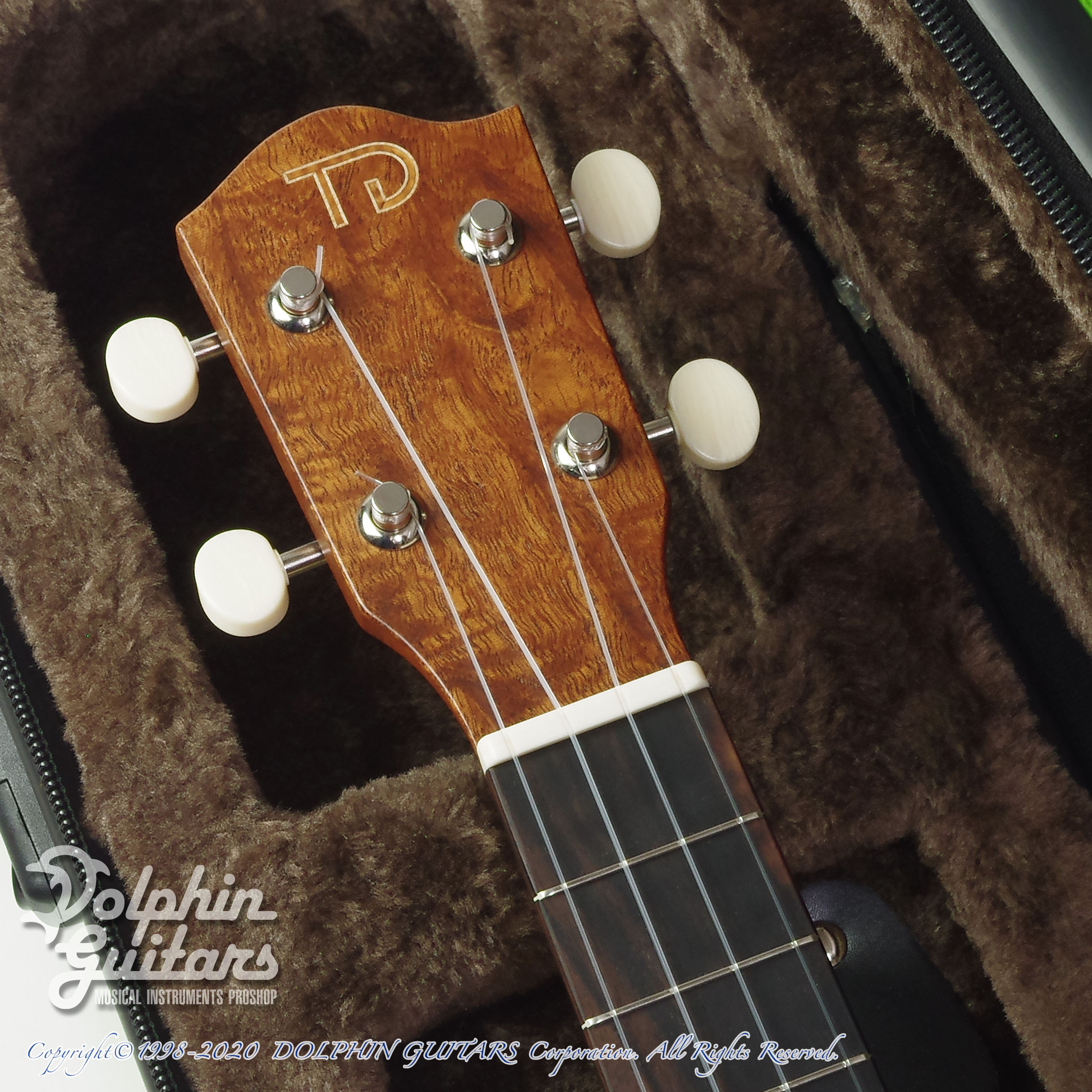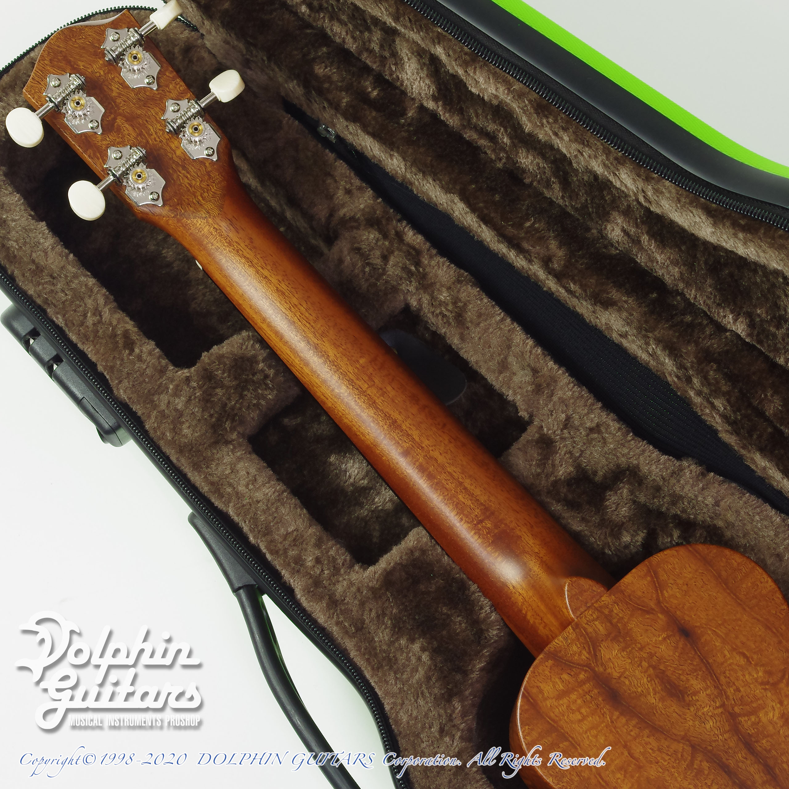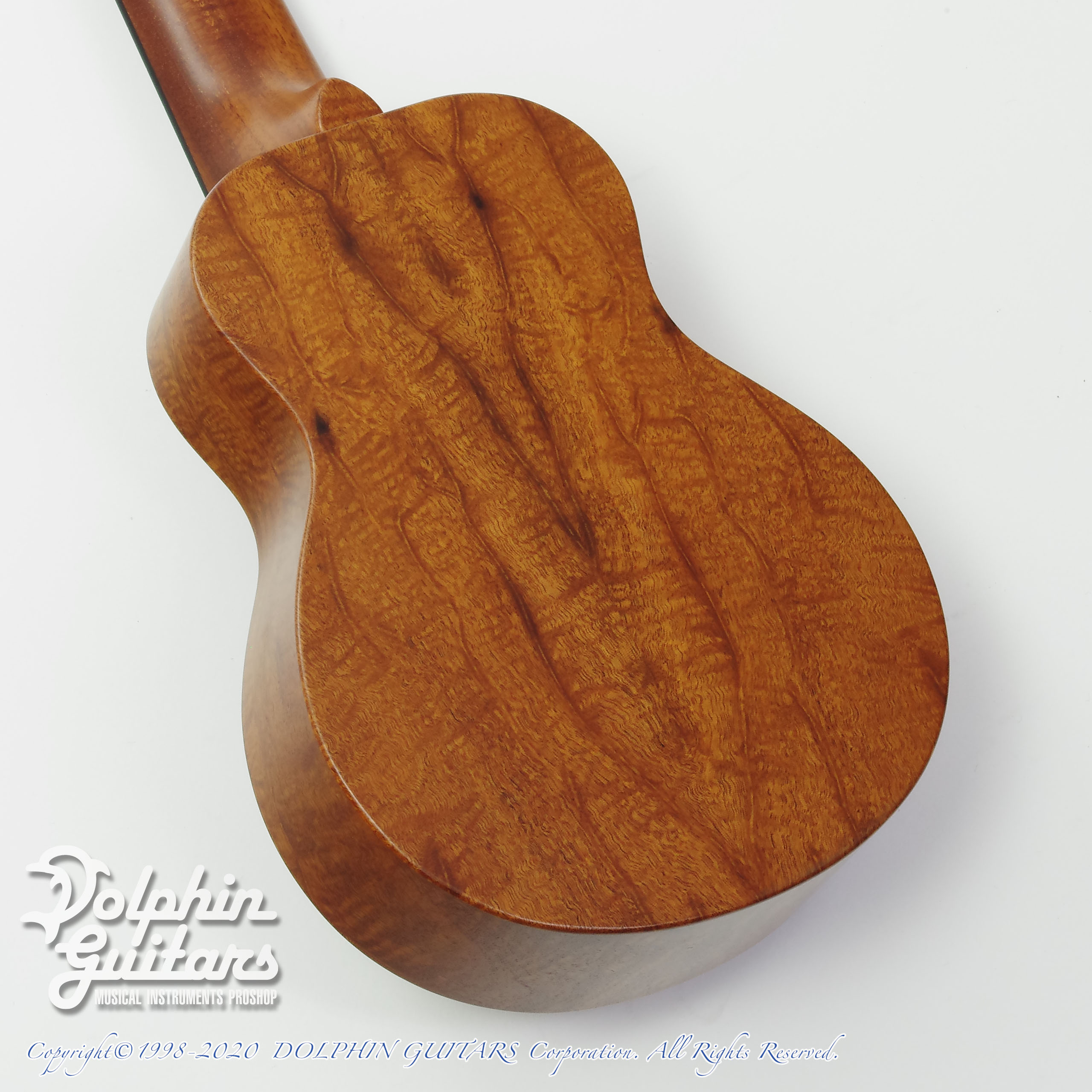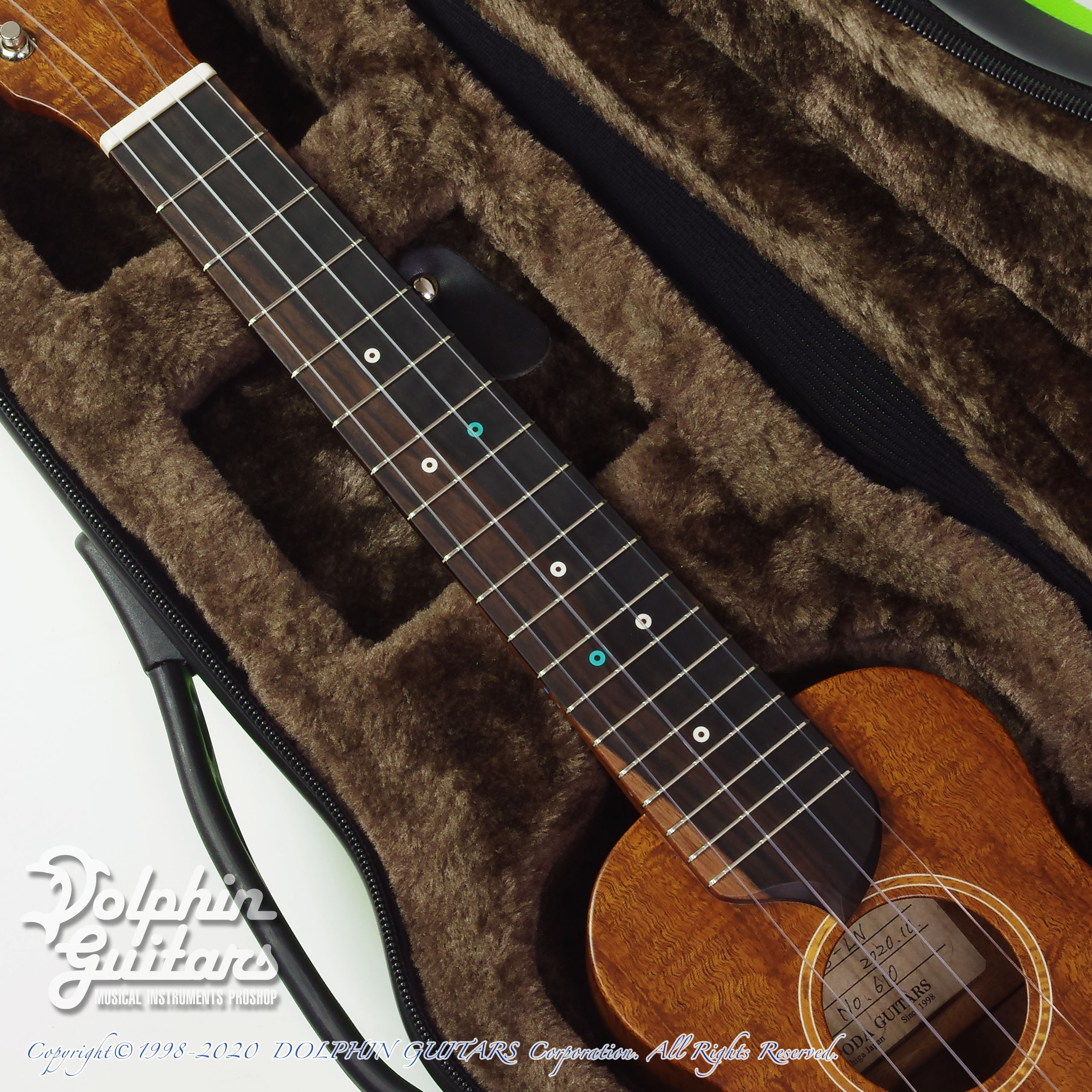 戸田氏はエレクトリックやアコースティックギター製作は元より、ナイロンギターやハープギター、多弦楽器などなど独創的な楽器を生み出す奇才です。中でも製作本数が多いのがウクレレ。本器は美しいフィギャードマホガニーを使用したソプラノウクレレ ロングネック仕様の VS。*画像は前作の物で、現在製作中の本作は#2となります。