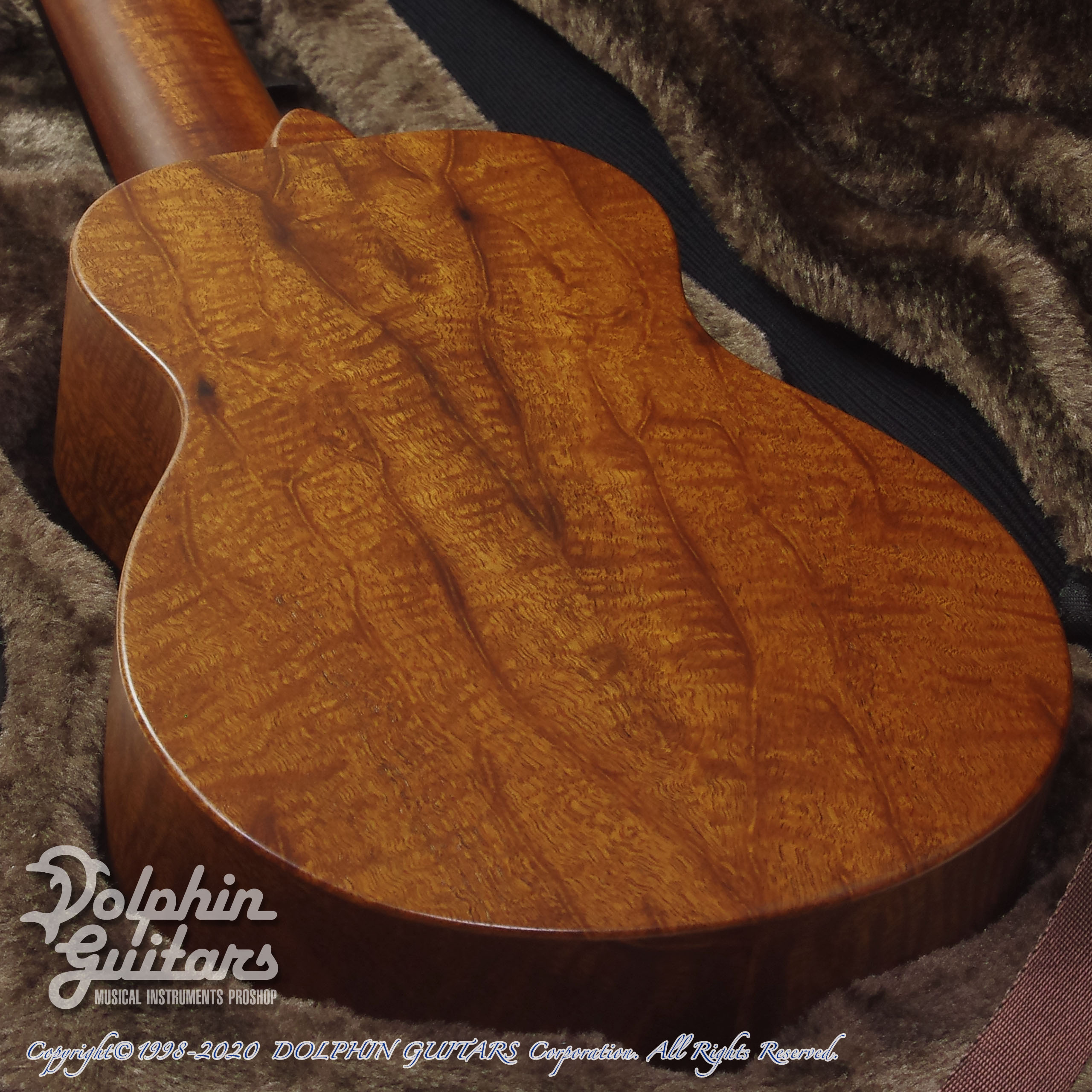 フィギャード マホガニーボディ、マホガニーネック、マッカーサーエボニー指板&ブリッジ、ハワイアンコア ロゼッタ、牛骨ナット・サドル、Gotoh ペグ。
