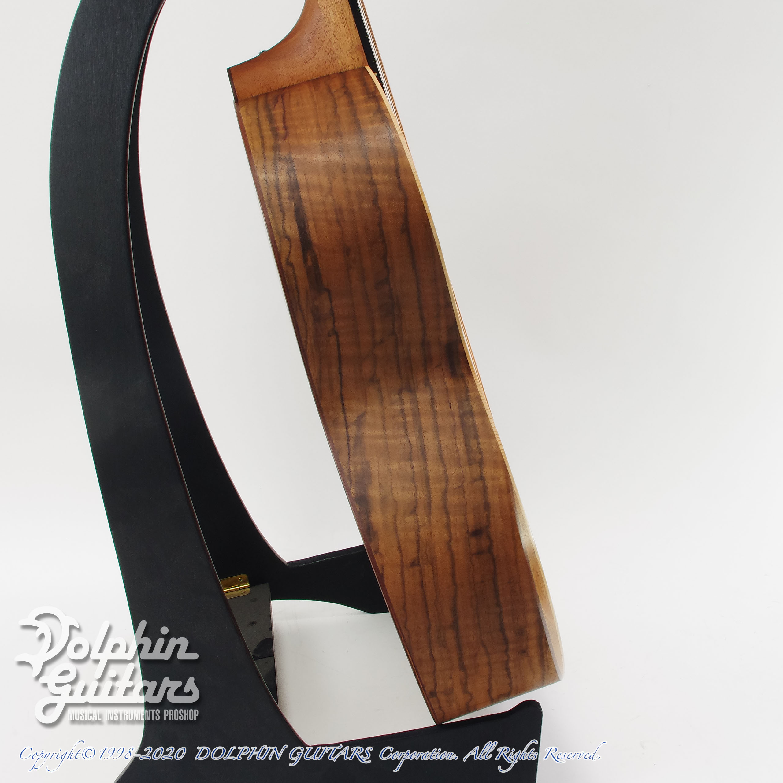 シトカ スプルースTOP、フィギャード ウォルナットS&B、マホガニーネック、エボニー指板&ブリッジ、ウォルナット ヘッドプレート、630mmスケール、ロトマティック クロームペグ、サテンフィニッシュ、専用ギグバッグ付属。
