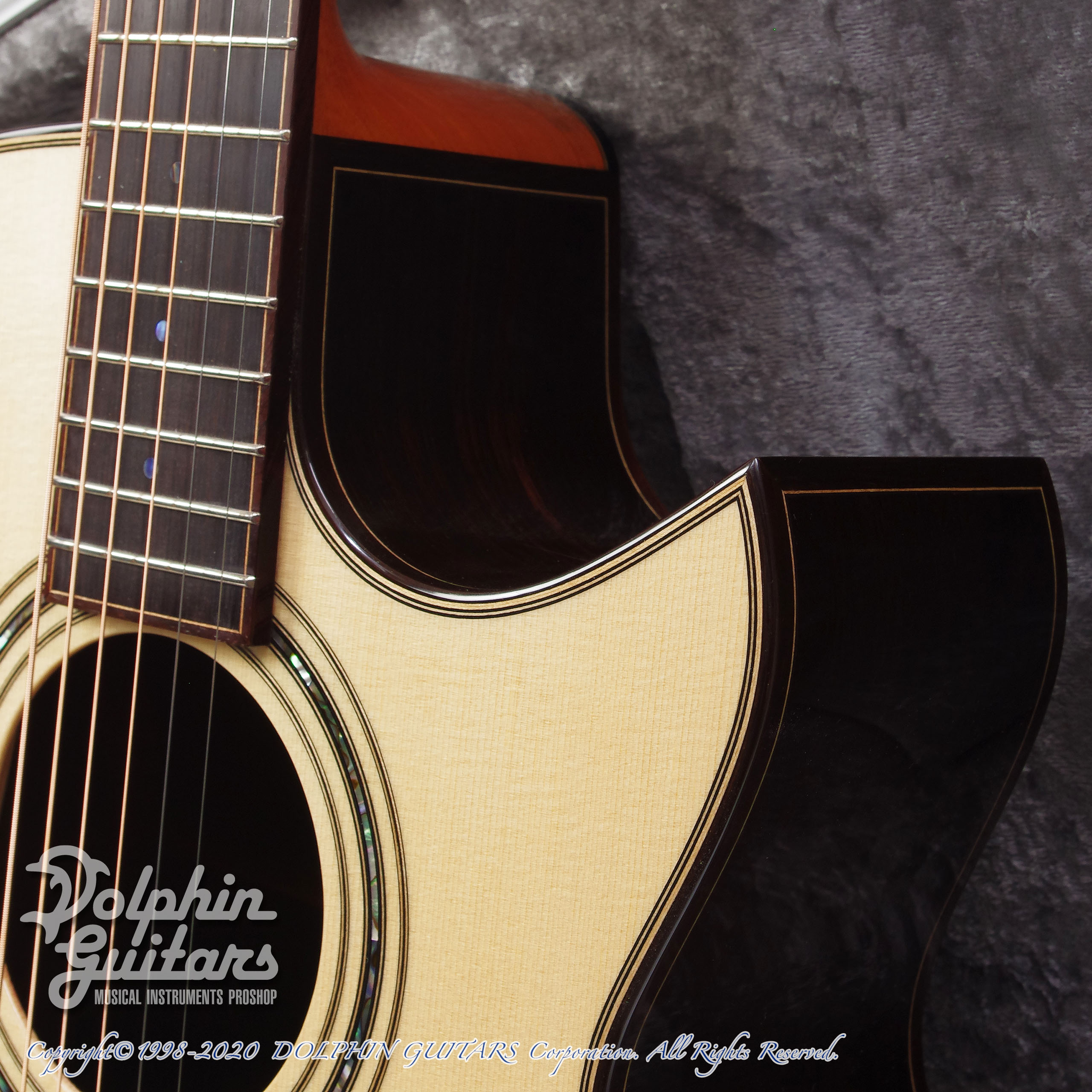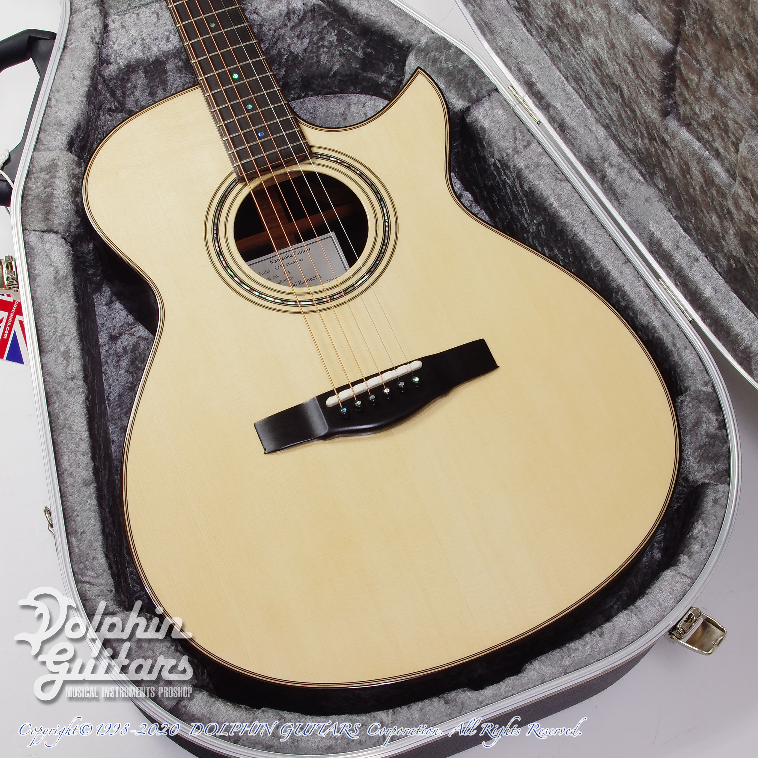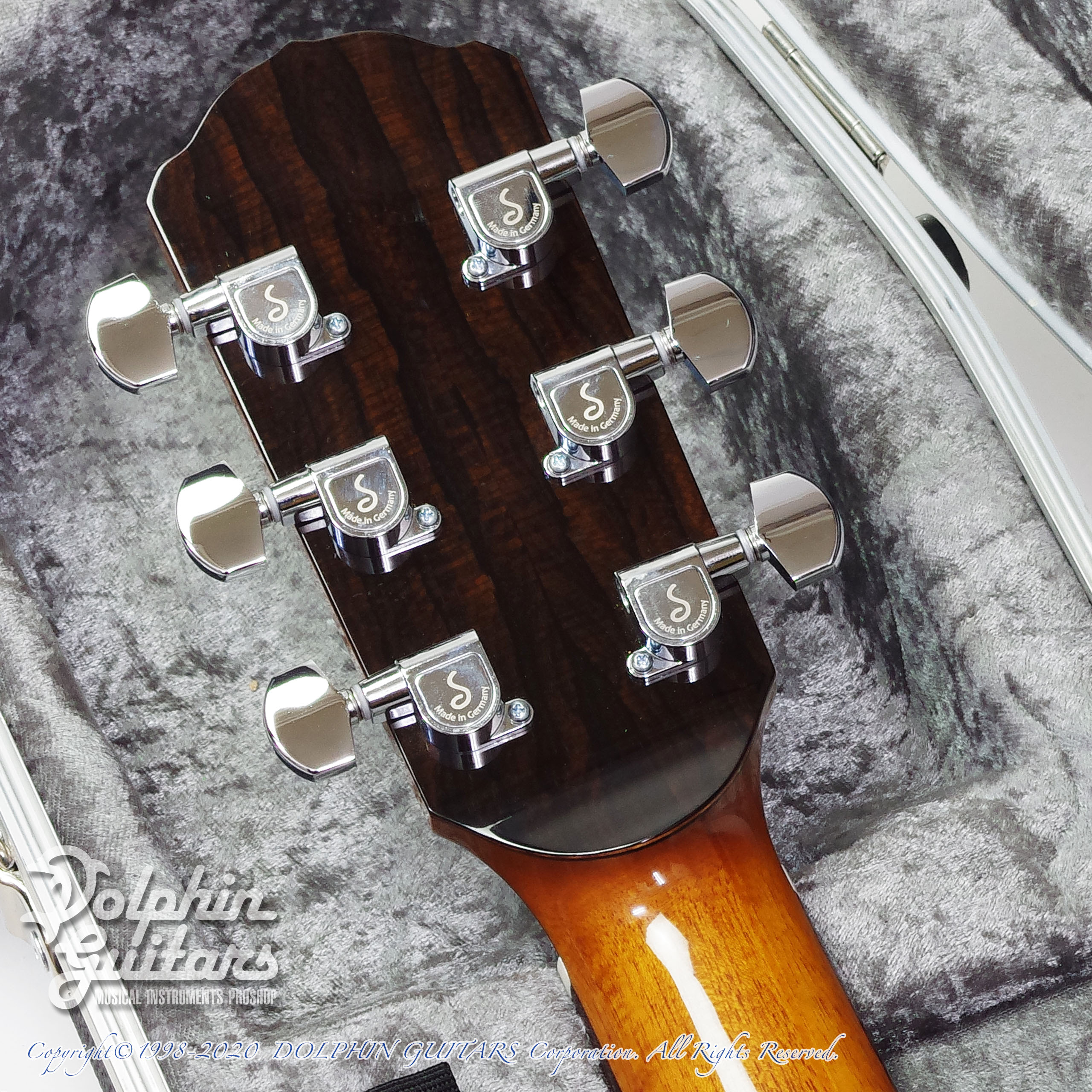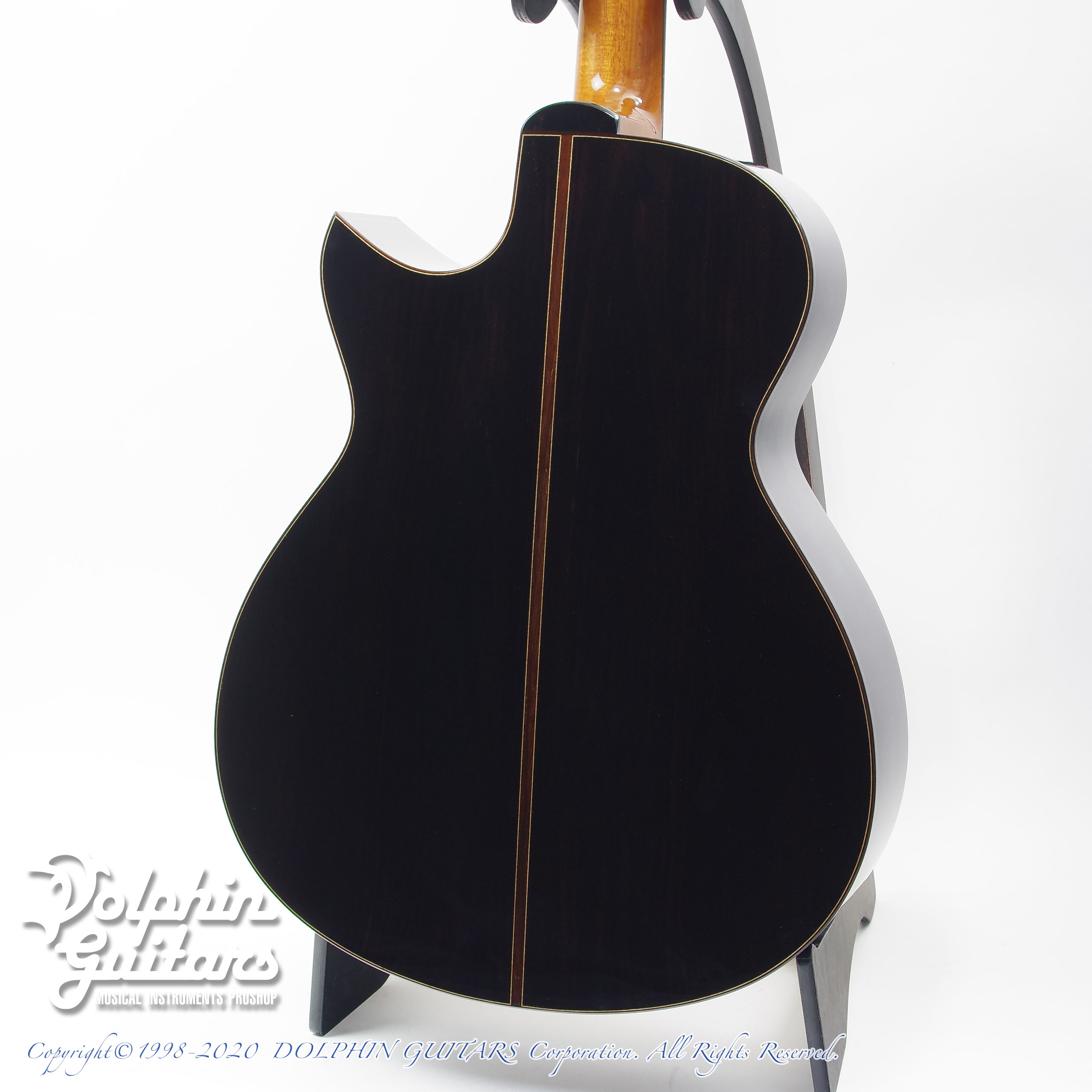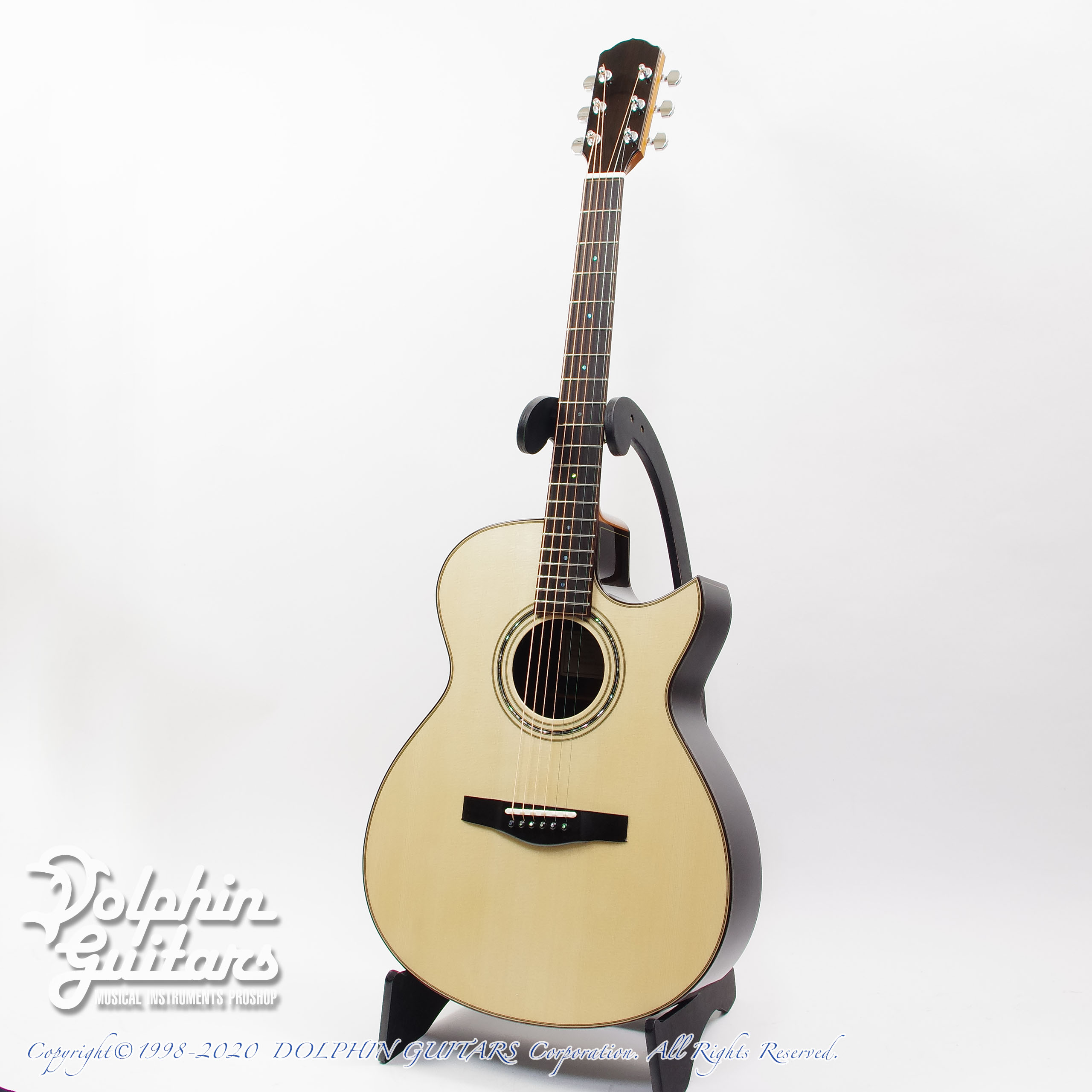 ジャーマンスプルースTOP、アフリカンブラックウッドS&B、ホンジュラスマホガニーネック、エボニー指板&ブリッジ、3リング・アバロンロゼッタ、フローレンタイン・カッタウェイ、シャーラーペグ。