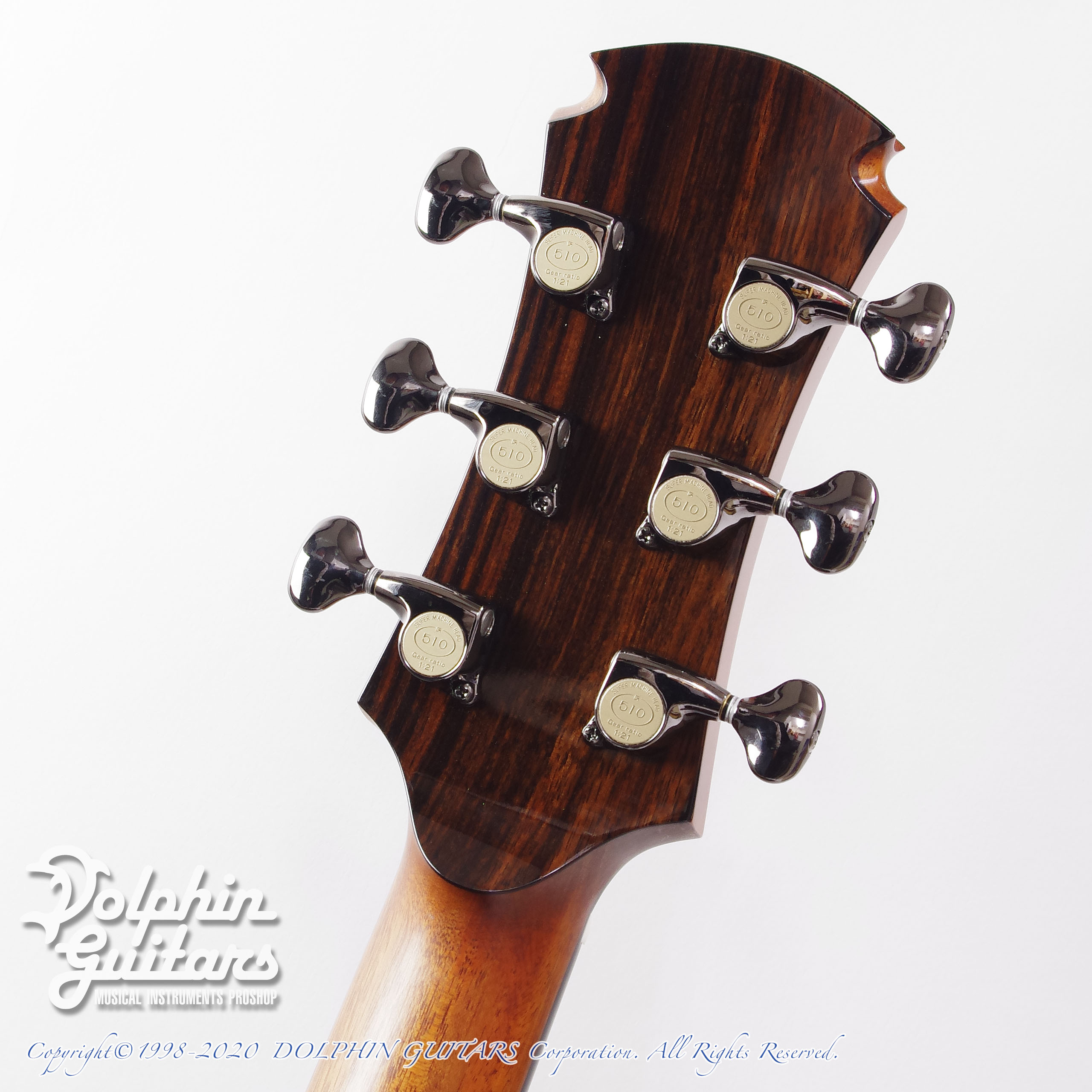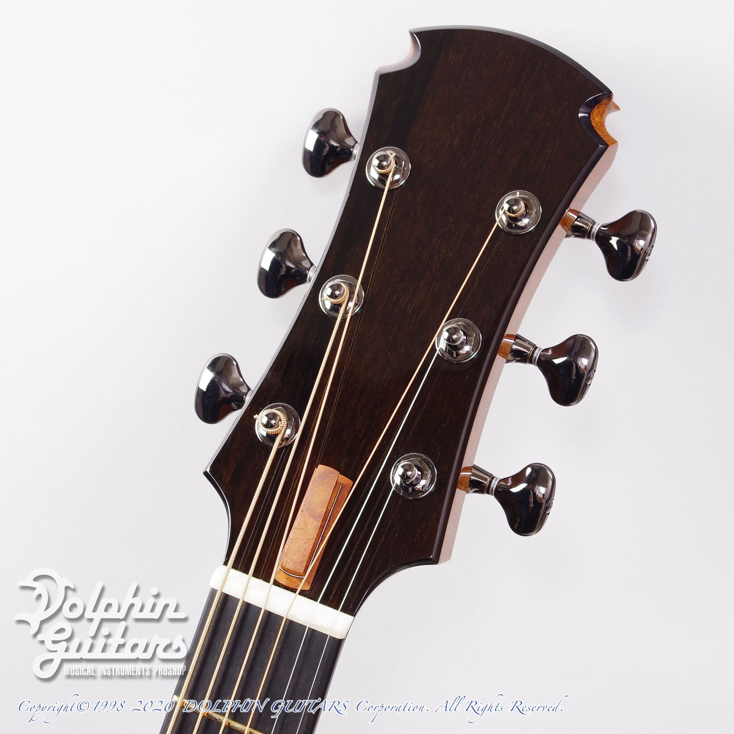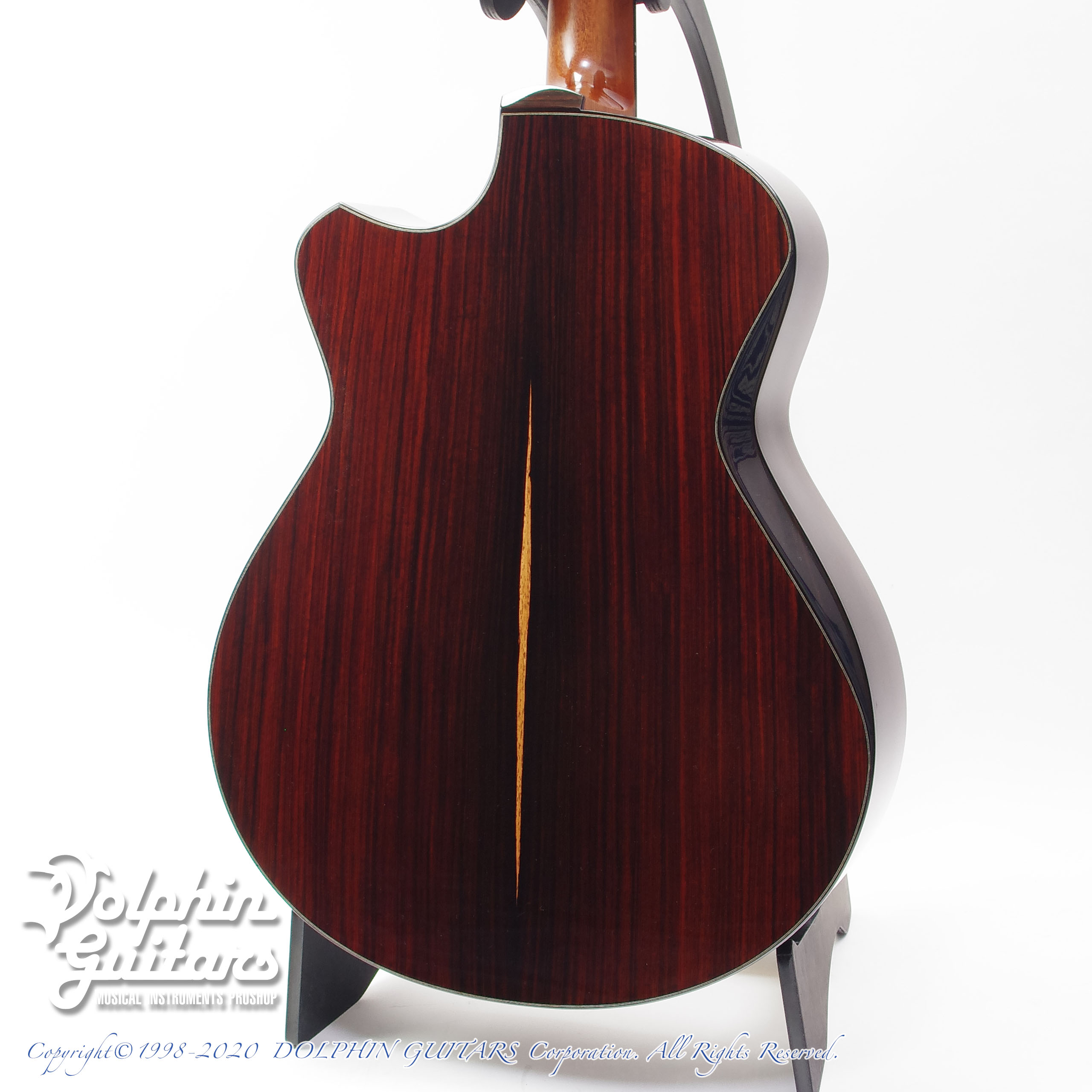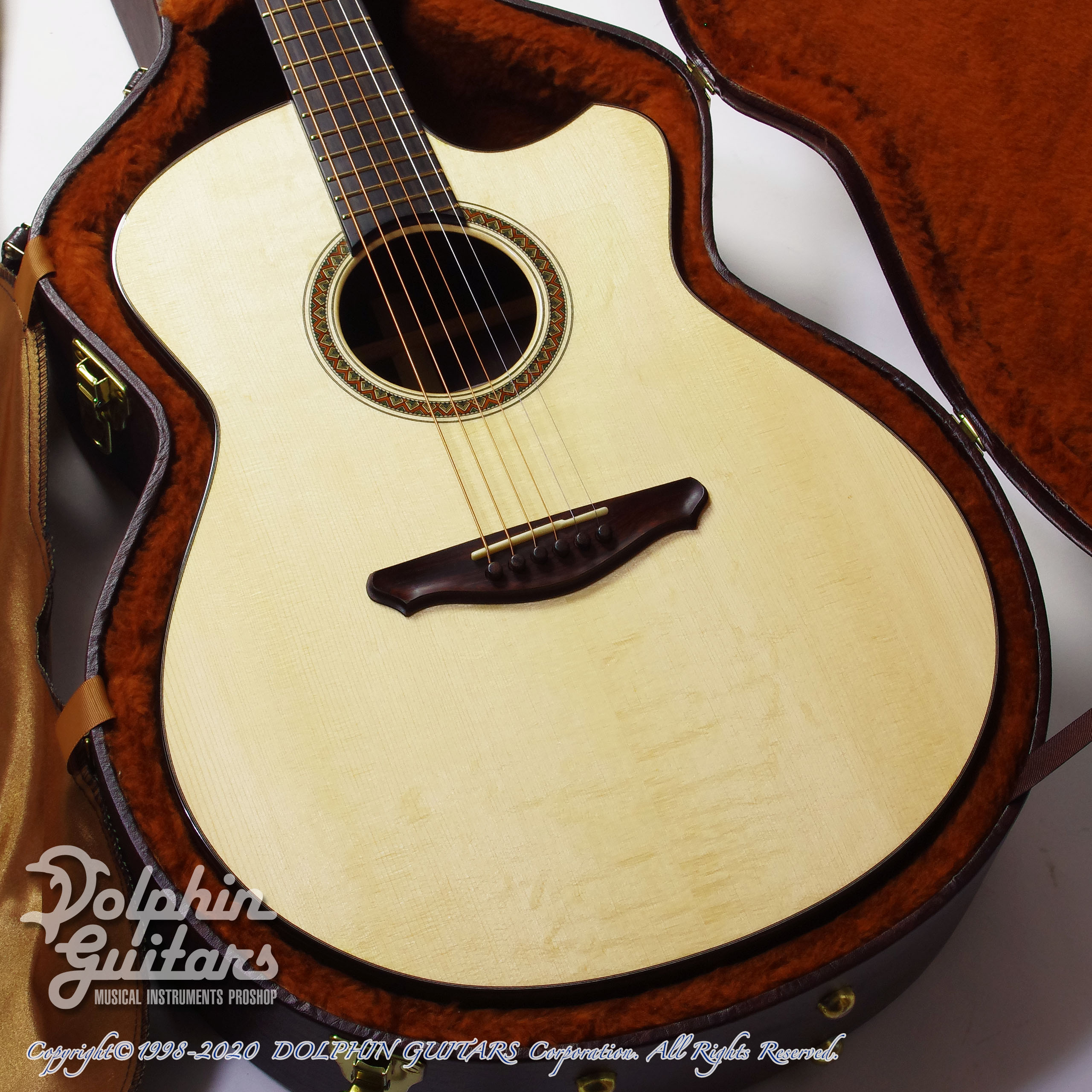 ジャーマンスプルースTOP、ココボロS&B、ホンデュラスマホガニーネック、エボニー指板、アマゾンローズブリッジ、リブレスト(バックコンター)、ウッドロゼッタ(オリジナルデザイン)、Gotoh510ペグ、フローレンタインカッタウェイ仕様。