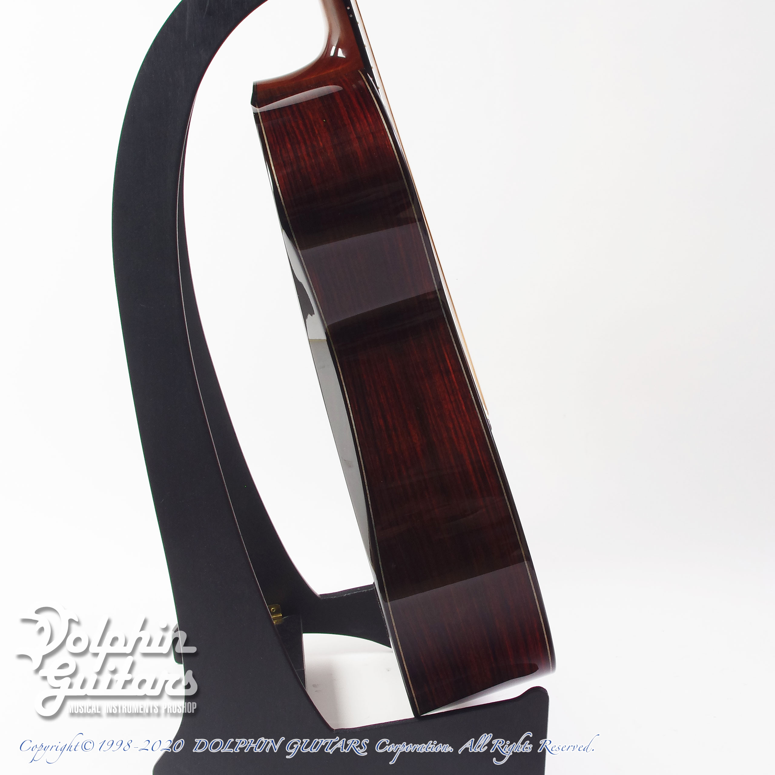フローレンタインカッタウェイを採用したSJ。外観としては全体的にシンプルに仕上げておりますが、各部木材のチョイスなど藤井氏のセンスが光り、細部まで精巧に作り上げ、間近でご覧になると全てにおいて凄みを感じさせるでしょう。S&Bのココボロ材はセンターサップのバランスも完璧で、これ以上ないほどのプレミアムグレードのココボロ材です。