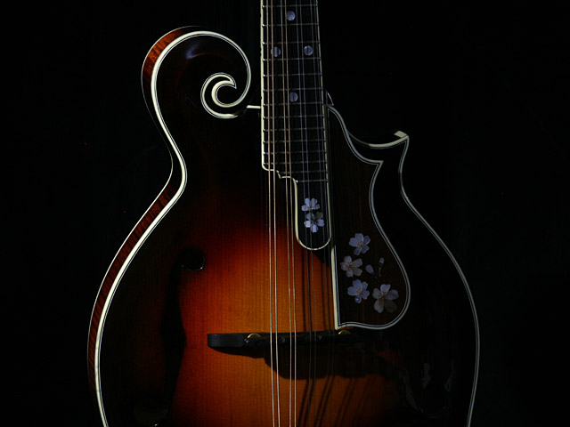 オーヴィル・ギブソンが考案したF5は、それまで主流であったボウルバック・マンドリンをベースに、バイオリンの構造やアール・ヌーヴォーデザインを取り入れた機種で、今やマンドリンの基本となっています。
