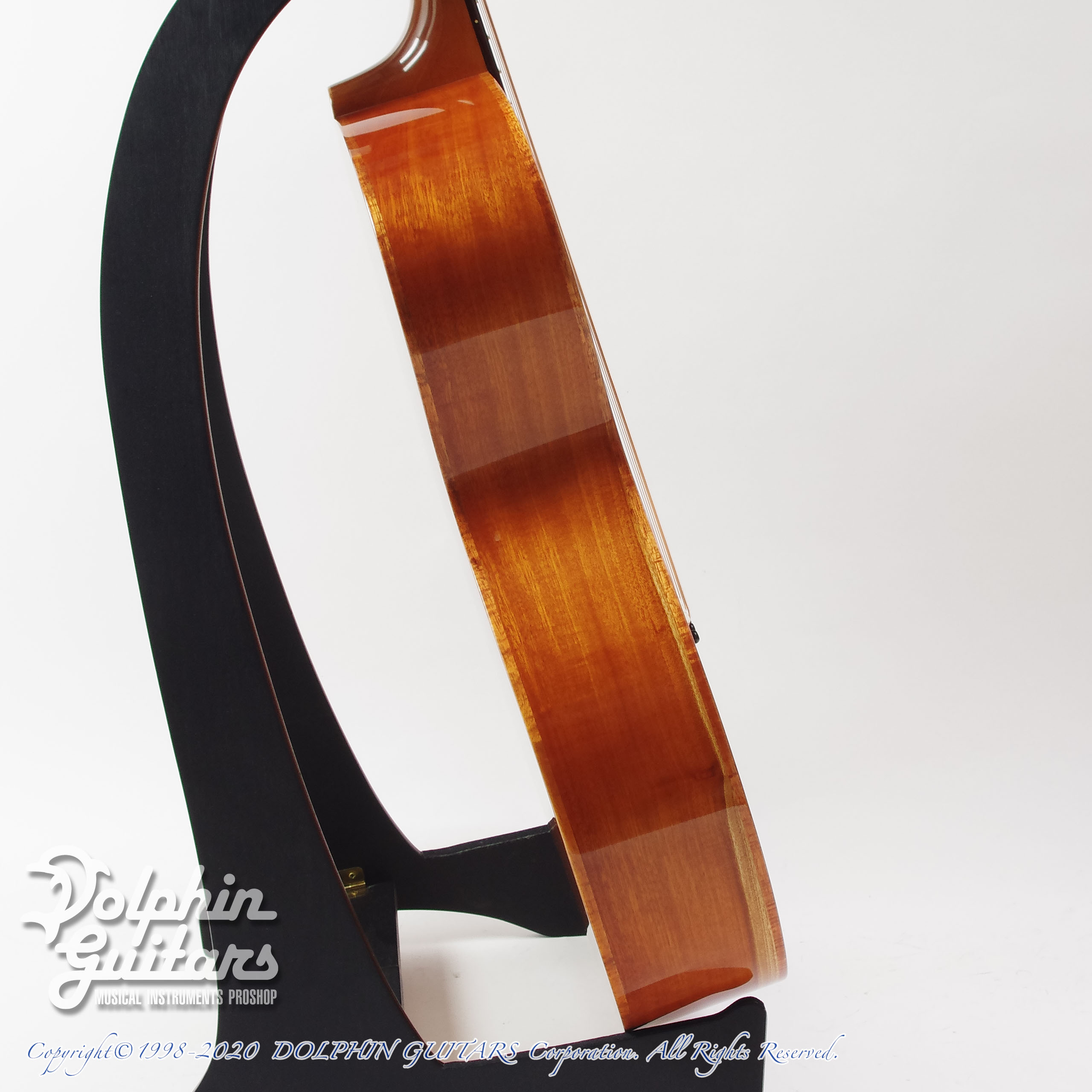 ジャーマンスプルース(ムーンウッド)TOP、キューバンマホガニーS&B、ホンジュラスマホガニー1Pネック、ハカランダ指板&ブリッジ、44,5mmナット幅、632mmスケール、ハワイアンコア・ボディバインディング、ハワイアンコアロゼッタ、Gotohオープンバックペグ、ラッカーフィニッシュ。