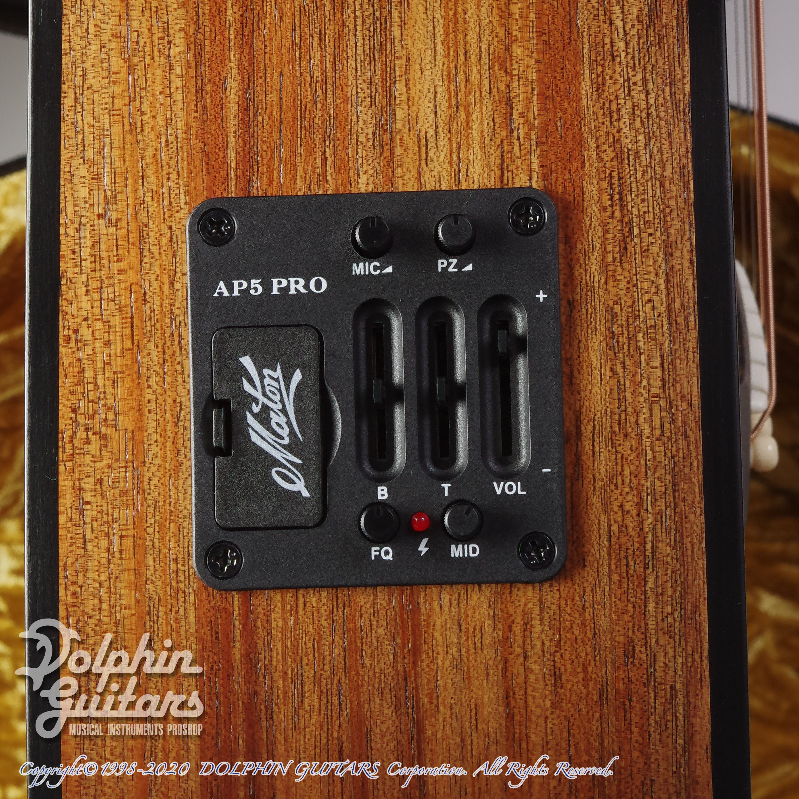 ボディ幅は000と00サイズの中間でありながら、ディープボディである為、抱え易い小柄でありながらも豊かなベース音を生み出し、極限まで高められたセットアップ、ローポジションからハイ・ポジションまで、指板に吸い付く様な弾き心地がテクニカルなプレイをサポートします。
