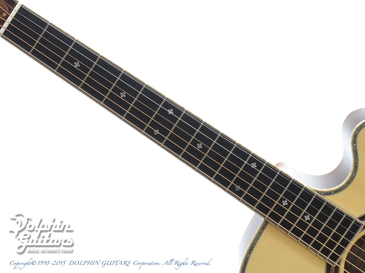 スプルース・トップ、ホンジュラスローズウッド・サイド&バック、マホガニー・ネック、エボニー指板&駒、ヴェネチアン・カッタウェイ、アバロンパーフリング。