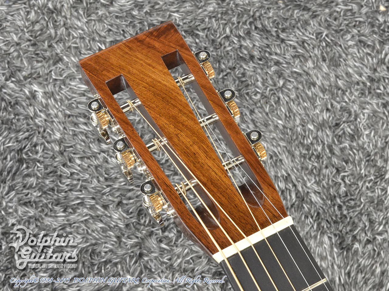 アディロンダック・スプルーストップ、ホンジュラス・マホガニー・サイド&バック&ネック、エボニー・フィンガーボード&ブリッジ、ウェイバリー糸巻き、T-Barロッド仕様。
