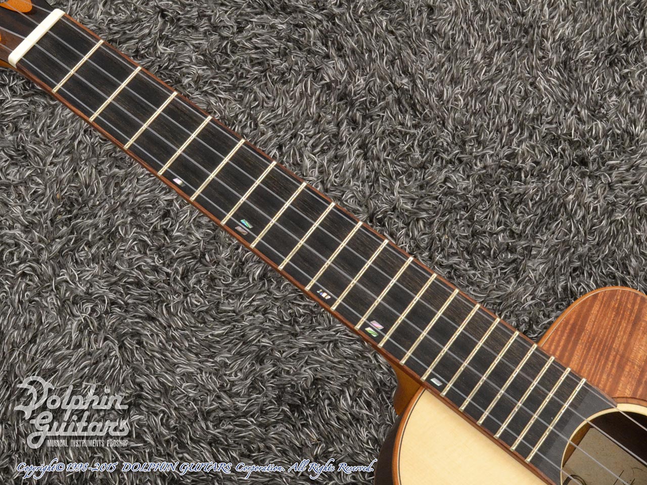 ジャーマン・スプルーストップ、マダガスカル・ローズウッドサイド&バック、マホガニー1ピースネック、エボニー指板&駒、ハワイアンコア・ウッドバインディング、ハワイアンコアロゼッタ、スロッテッドヘッド、ハワイアンコア・ピックガード、カリマンタン・エボニーヘッドプレート、ベネチアン・カッタウェイ、ゴトー製糸巻き仕様。