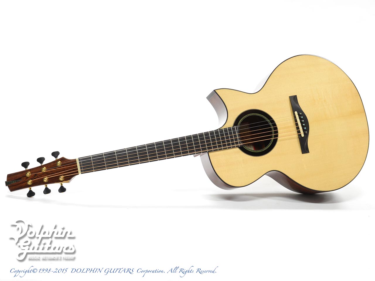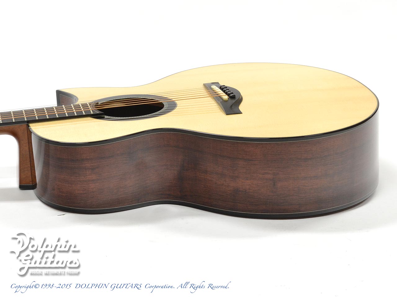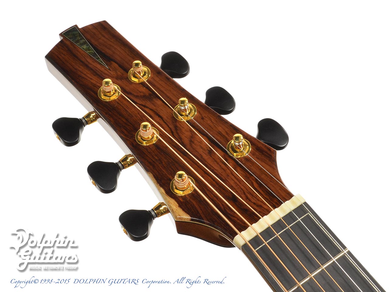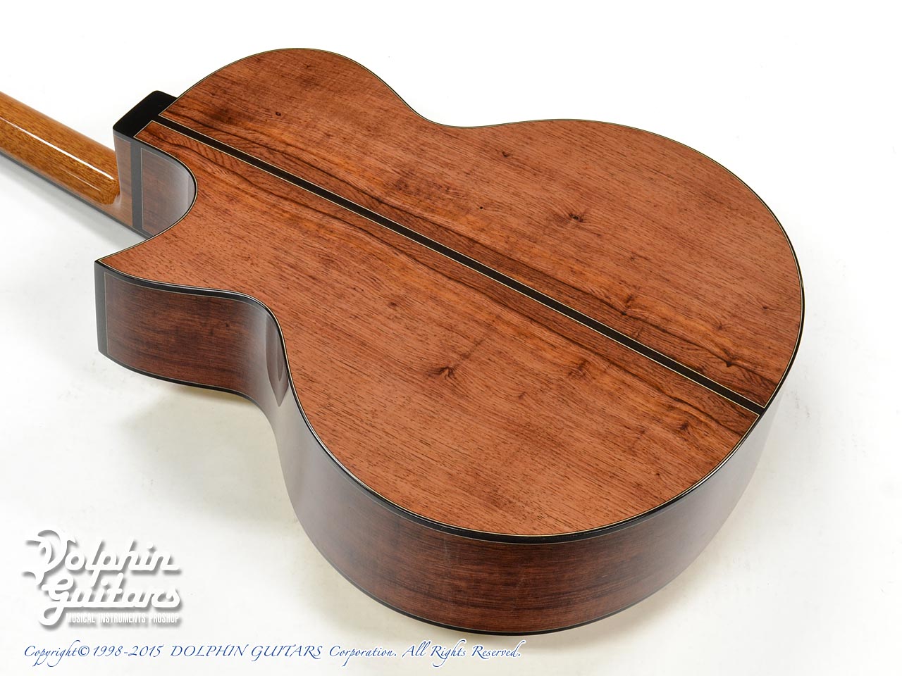 ジャーマン・スプルーストップ、パロ・エスクリト(メキシカン・ローズウッド)S&B、マホガニーネック、エボニー指板&ブリッジ、フローレンタイン・カッタウェイ、ゴトー510糸巻き。
