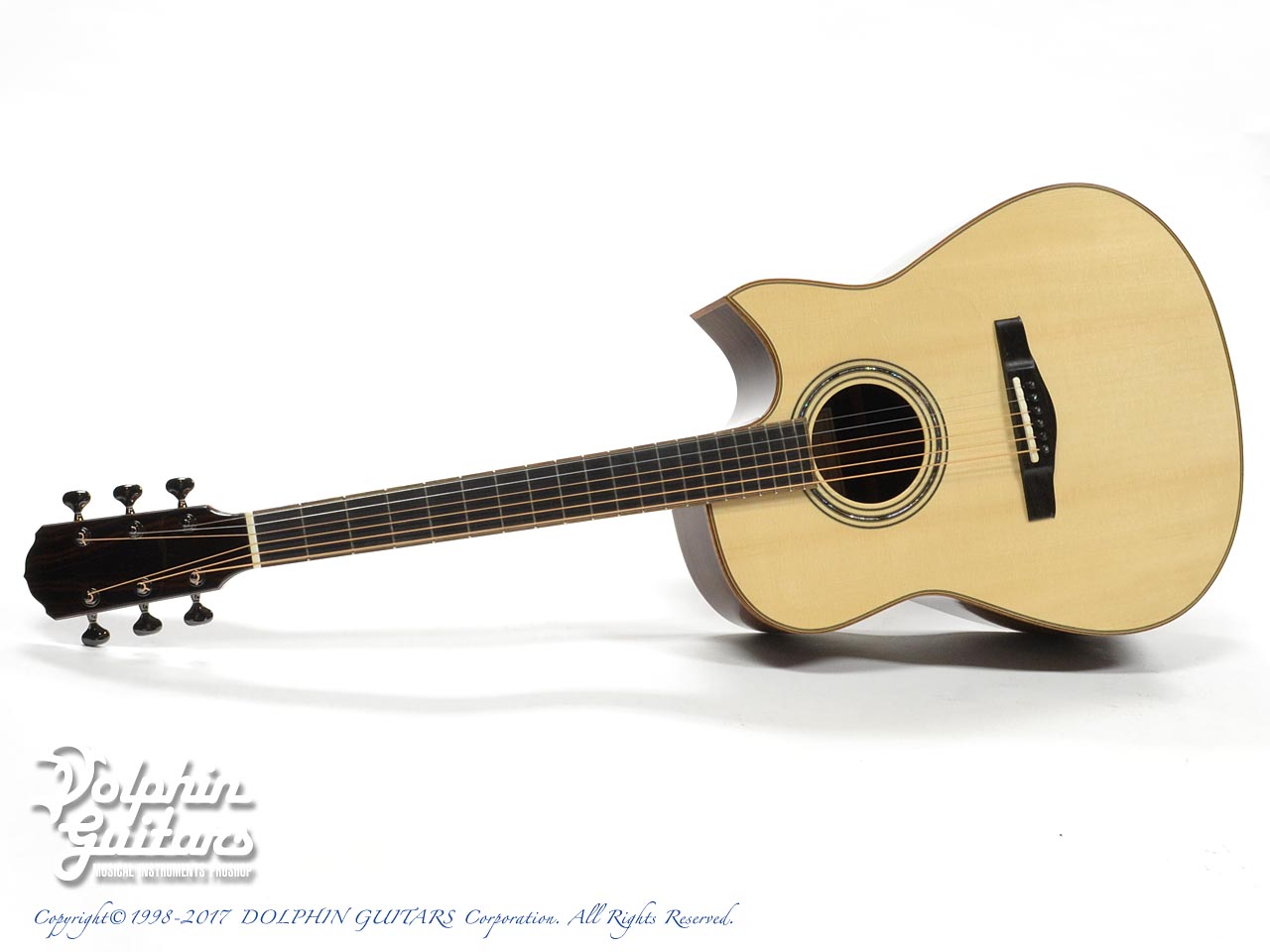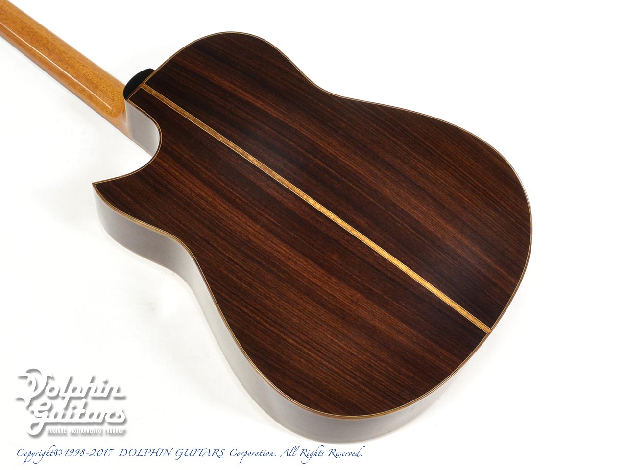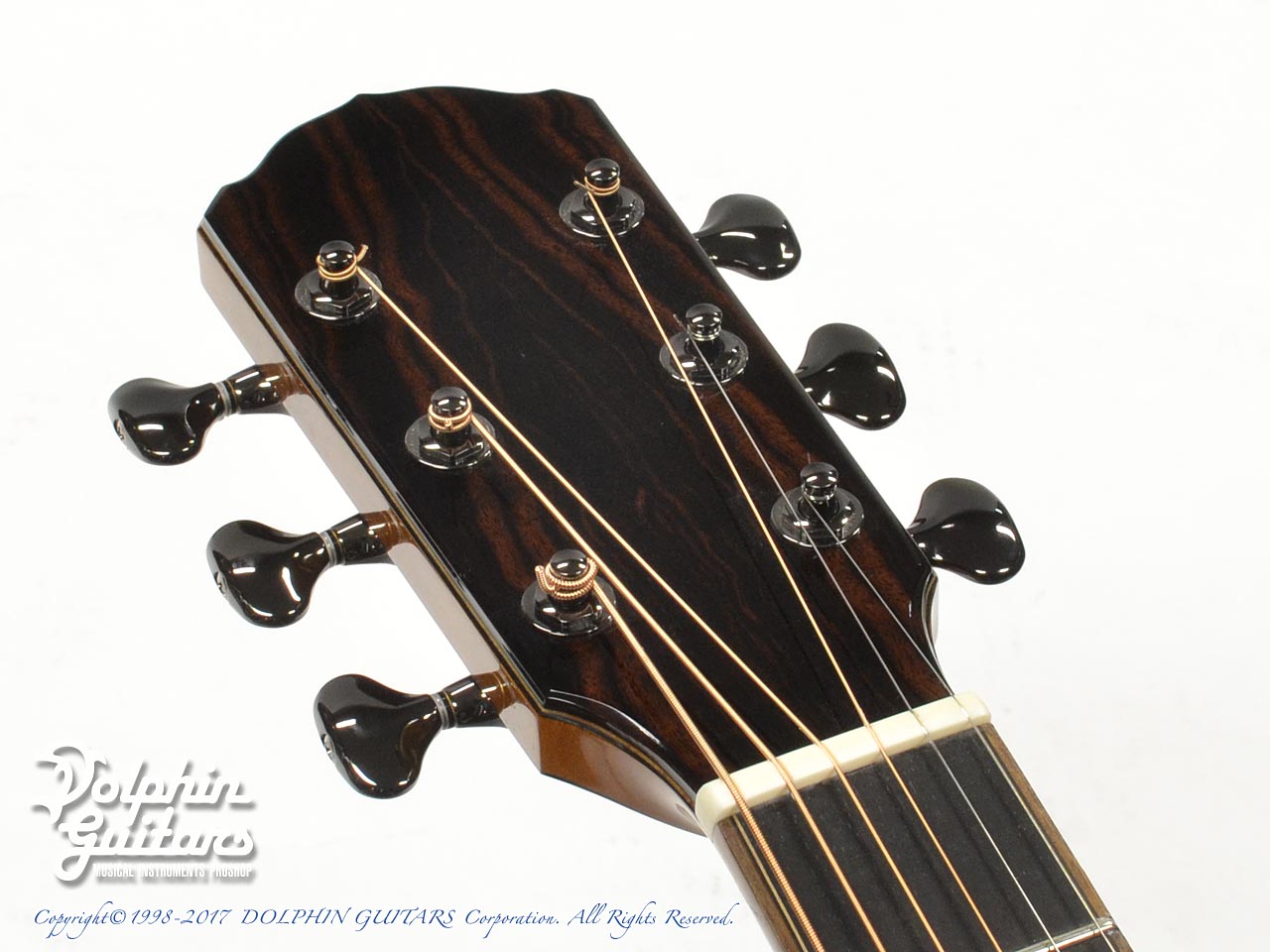 ジャーマン・スプルース・トップ、インディアン・ローズウッド・サイド&バック、ホンジュラス・マホガニー・ネック、エボニー指板&駒、コア・バインディング、フローレンタイン・カッタウェイ、アバロン・ロゼッタ、ゴトー510糸巻き仕様。
