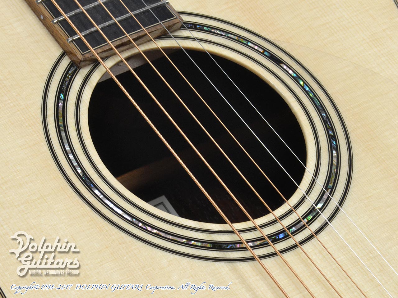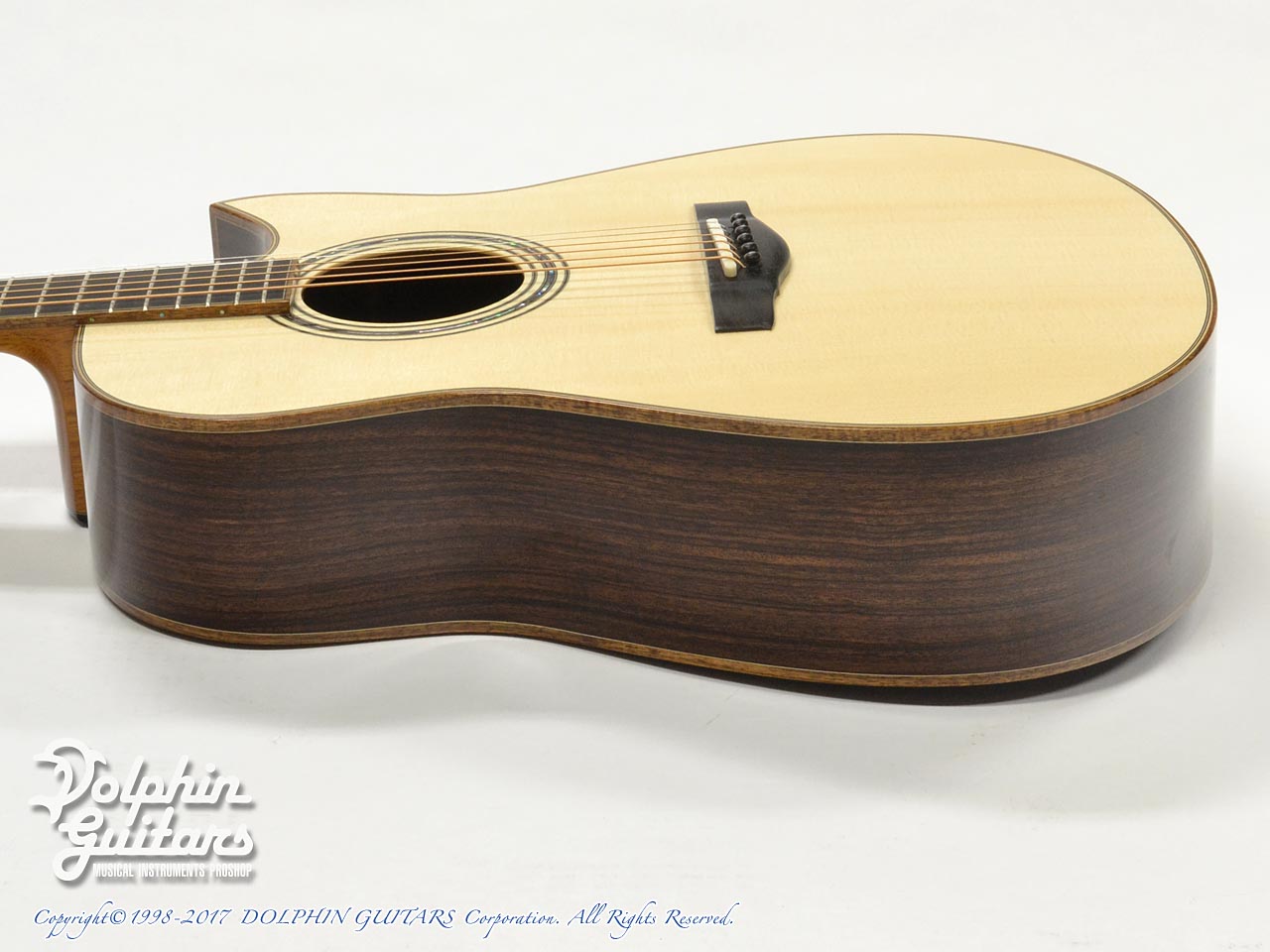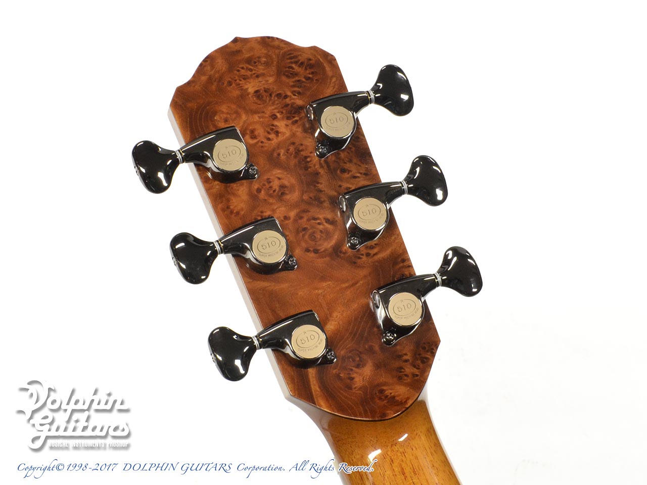 ジャーマン・スプルース・トップ、インディアン・ローズウッド・サイド&バック、ホンジュラス・マホガニー・ネック、エボニー指板&駒、コア・バインディング、フローレンタイン・カッタウェイ、アバロン・ロゼッタ、ゴトー510糸巻き仕様。
