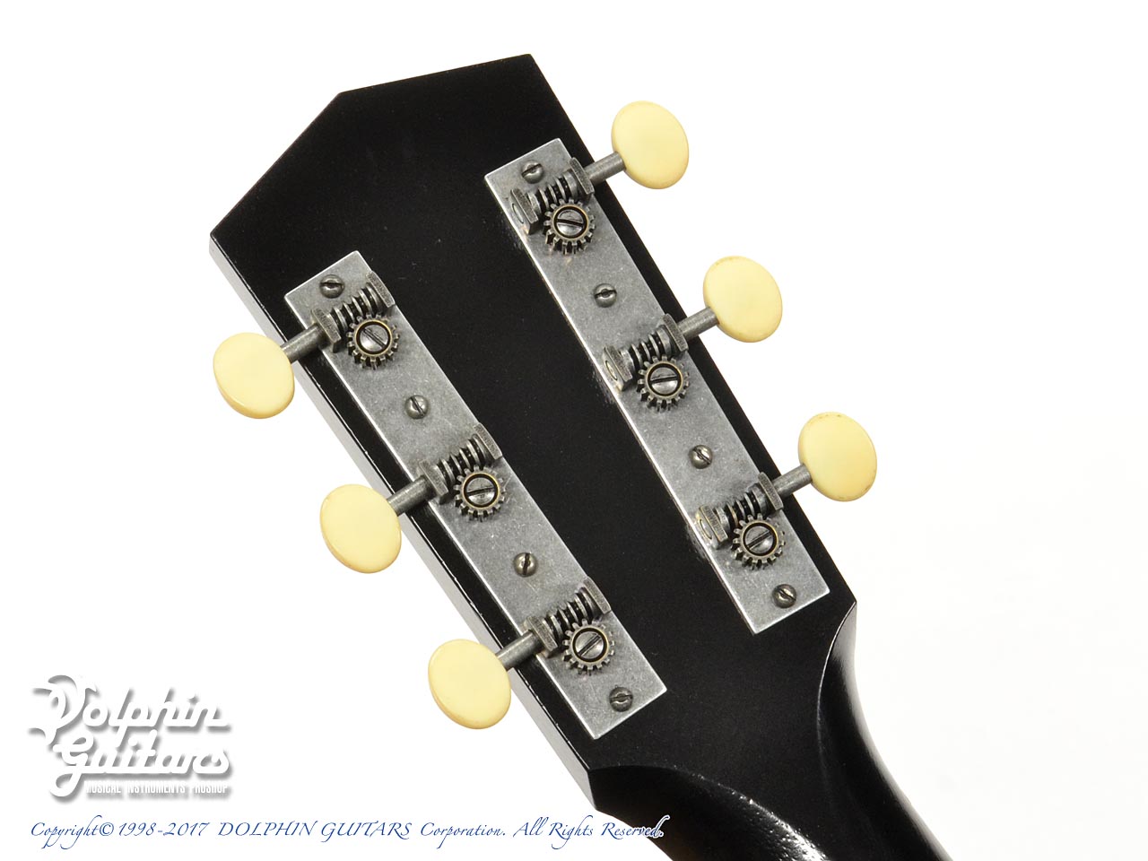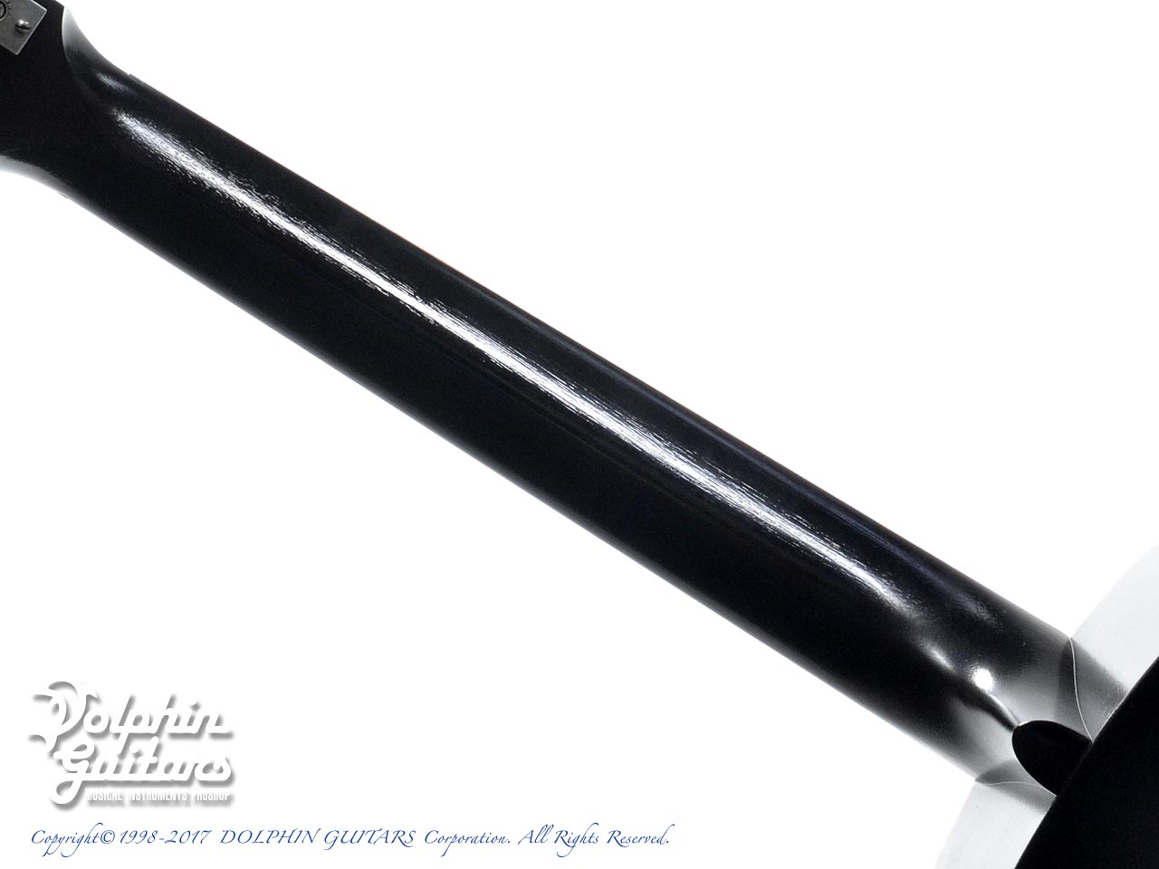 フィニッシュはサテン・ニトロセルロースラッカー・ジェット・ブラック、ホワイトPG、ヴィンテージVネックシェイプ、テーパー・ド・ヘッドシェイプを採用。