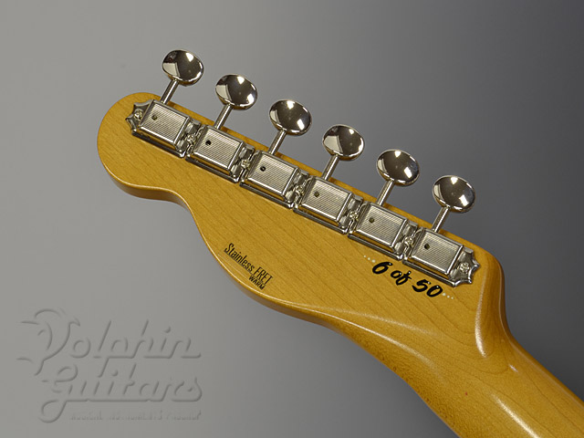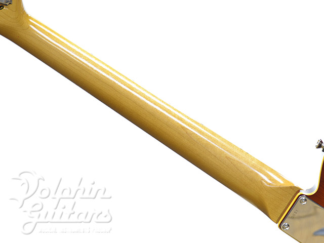 ネックはメイプルオンメイプルの貼りメイプル、ニトロセルロースラッカーフィニッシュ。サンプルに使ったネックは1966年製と1968年製のヴィンテージネック2本。50年代のような極端な太さではなく、エッジに肉付きのあるシェイプで指板Rが184、レギュラーな太さではあるが手の平全体にしっかり感触が伝わるヴィンテージシェイプとなっています。